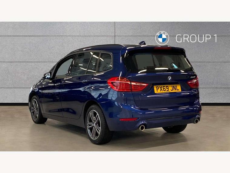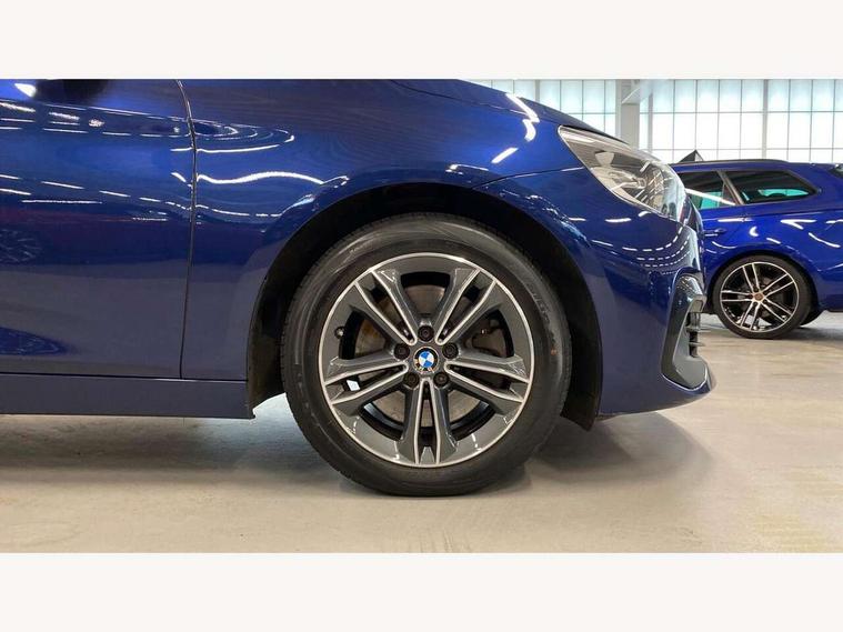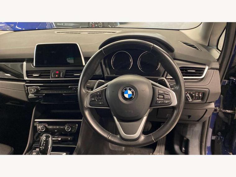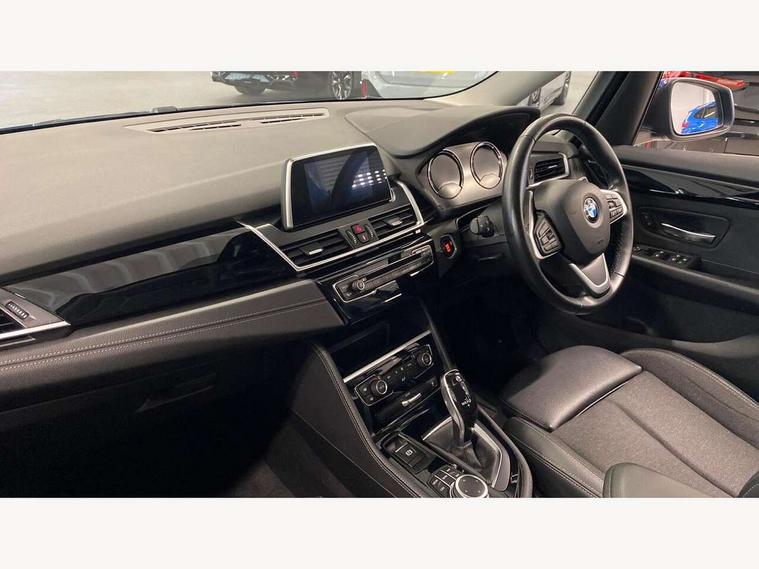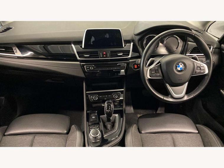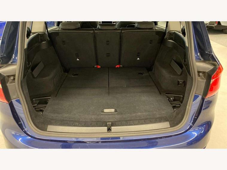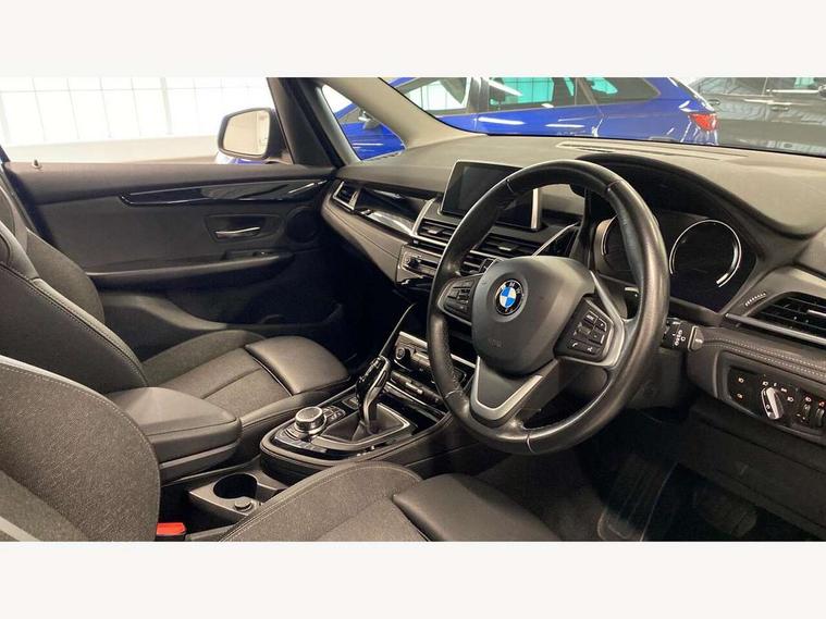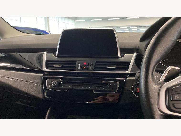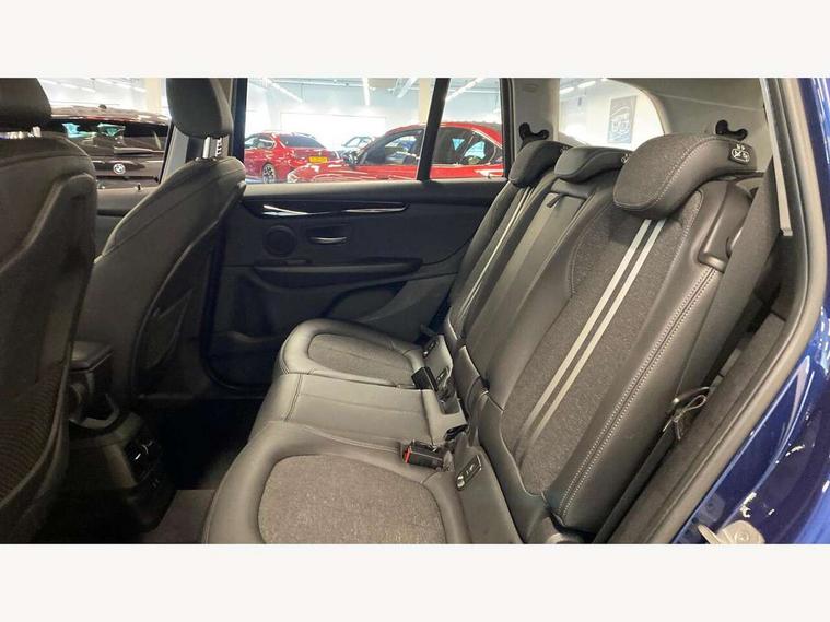Active Guard incl speed limiting and lane departure functions with auto steering, and front collision warning with brake intervention, Attentiveness assist, Automatic tailgate operation, BMW Online services, BMW remote services, BMW Teleservices, Check control system, Cruise control with brake assist, Door/boot open warning light, Eco pro mode, Forward collision warning, Front and rear Brake pad wear indicator, Instrument cluster with speedometer with miles per hour read out, tachometer and fuel gauge, Lights on warning, Oil temperature gauge, On board computer, Optimum shift indicator, Outside temperature display, Personal Profile, Real time traffic information, Service interval indicator, Speed limiter, Stop/start button, 12V compressor with integrated sealant injection bottle and hose, Drive Performance Control, Dual clutch sport automatic transmission, Electronic differential lock, Twin tube gas filled shock absorbers with degressive characteristic curve, Bluetooth audio streaming, BMW professional radio/CD/MP3, DAB Digital radio, Rear twin USB sockets in centre console, Aero curtain, Body colour bumpers, Body colour door handles, Body colour roof mouldings, Clear lenses direction indicator lights, Door mirror integrated indicators, Dynamic brake lights, Electric adjustable heated door mirrors, Electric front/rear windows with one touch/auto up/down, Exclusive door sill finishers, Follow me home headlights, Front air inlet with high gloss black finish, Front and rear bumper system, Green tinted heat protection glazing glass, Heated windscreen washer jets, High beam assistant, High level third brake light, Kidney grille with 10 extra wide high gloss black fronted vertical slats, LED daytime running lights, LED front fog lights, Lightweight engineering, Rain sensor including auto headlights activation, Rear bumper with high gloss black finish, Rear fog lights, Rear window aerial, Rear window wiper with wash/wipe function, Reverse light in rear light cluster, Shark fin antenna, Twin chrome exhaust tailpipes, Visible VIN plate, Welcome lighting, 3 spoke leather sports steering wheel, 4 grab handles, 40:20:40 split folding rear bench seat, Anthracite Velour floor mats, Child seat ISOFIX attachment for two outer rear seats and front passenger seat with anchorage points, Front armrest, Front head restraints, Front sports seats with electric side bolster adjustment, Front/rear armrests within door panels, Glovebox with light, Interior lighting, front centre over interior mirror and rear centre automatic interior light activation when door is opened, LED ambient lighting in door trim, Luggage compartment lighting, Luggage compartment underfloor storage, Multi-function controls for steering wheel, Reach + rake adjustable steering column, Rear centre armrest, Rear seat headrests, three (second row), two (third row), Sliding rear seat bench, Sunvisors with vanity mirrors and ticket pocket, Third-row seating, Two zone automatic air conditioning, Extended lights package - 2 Series Gran Tourer, Extended storage pack - 2 Series Active/Gran Tourer, 3 point seatbelts on all seats, ABS, Battery safety cut-off, BMW emergency call, Brake assist function, Brake drying, Brake energy regeneration, Braking readiness, Childproof rear door locks, Collision mitigation braking system, Crash Sensor - activates hazard/interior lighting + unlocks doors, Driver/Front Passenger airbags, Dynamic stability control + (DSC+), Dynamic Traction Control - DTC, Electrically operated parking brake with automatic drive release, Front and rear curtain airbags, Front passenger airbag deactivation, Front seatbelt force limiters, Front seatbelt pretensioner, Front side airbags, Front ventilated brake disc, Hill start assist, Rear brake discs, Seatbelt warning, Side impact protection, Twin horns, Tyre pressure monitoring system, Warning triangle and first aid kit, Electronic immobiliser, Locking wheel bolts, Remote control Thatcham category 1 alarm, Remote control with integrated key with silver highlight, Contrast stitching on instrument panel, Low rolling resistance tyres,