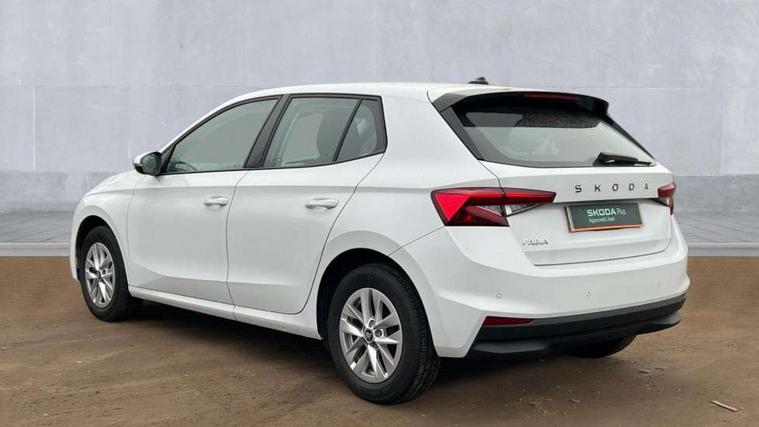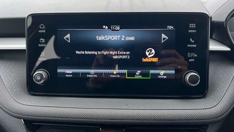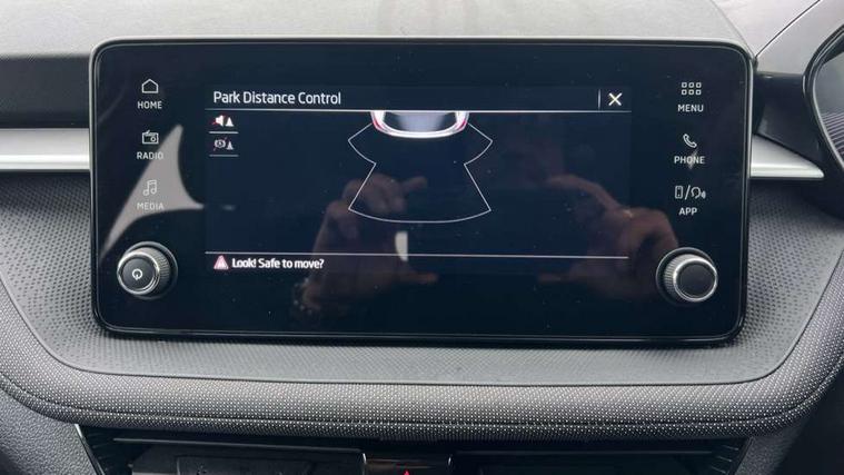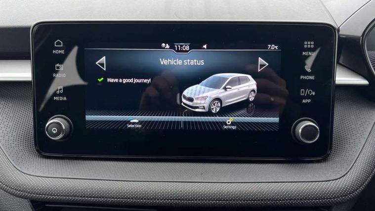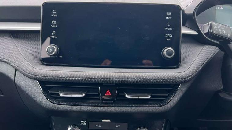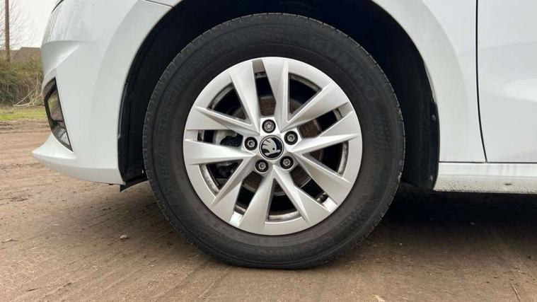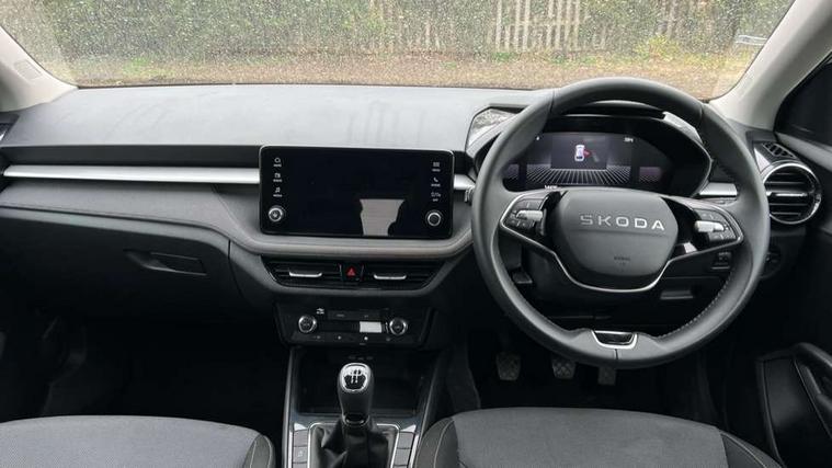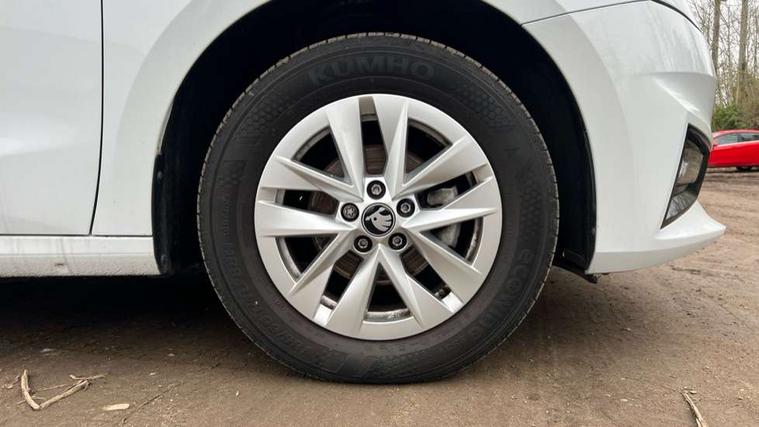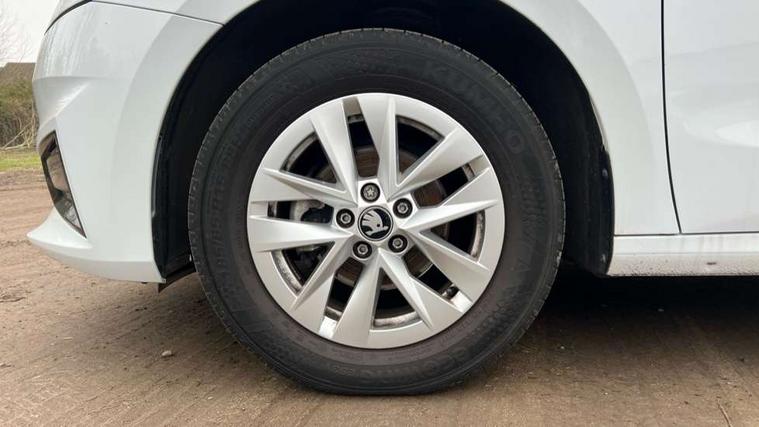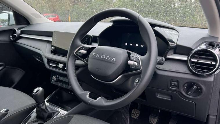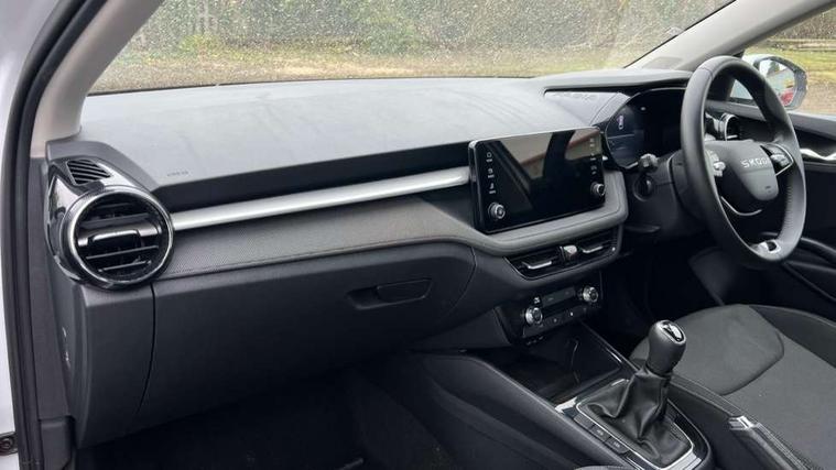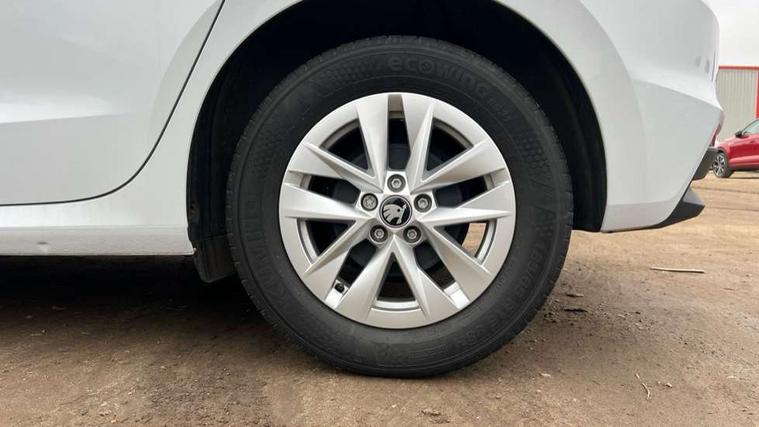 8" Digital instrument display, Advanced driver attention and drowsiness monitor, Bluetooth connection, Electromechanical power steering, Exterior temperature gauge, Service interval indicator, Traffic sign recognition, Wireless SmartLink for Apple CarPlay and Android Auto, 6 Speakers (4 in front and 2 in rear), 8.25" Skoda infotainment touchscreen display, Auxiliary socket for external MP3 player, DAB digital radio reception, Auto dimming rear view mirror, Body colour door mirrors, Body coloured bumpers, Door mirror integrated indicators, Front and rear electric windows, Front window wiper intermittent control, Headlight range control - Automatic, Ice scraper in fuel cap, LED 3rd brake light, LED daytime running lights with coming and leaving home feature, LED rear lights, Rear LED fog light, Rear side wing doors, Rear window wiper with washing nozzles, Roof mounted spoiler, SKODA tailgate lettering in chrome, Unique dark chrome design logo on alloy wheels, 2 reading lights in front and 2 reading lights in rear, 3 rear headrests, Backrest split and folding, Central console with removable cup holder and storage box, Chrome handbrake release button, Dual zone air conditioning with climatronic electronic control, Fabric upholstery, Front centre armrest, Gearshift knob/handle in leather, Grain satin black interior door handles, Hand brake lever handle in leather, Height adjustable front headrests, Height adjustable front seats, Height adjustable steering wheel, ISOFIX and TopTether anchorage points to the outer rear seats, ISOFIX and TopTether on the front passenger seat, Luggage compartment lighting, Manually adjustable lumbar support in front seats, Pollen filter, Rear seat bench unsplit, Single front passenger seat, Skoda lettering on steering wheel, Storm grey headlining, Sun visors with mirror and airbag label on passenger side, Textile floor mats, Ticket holder, Umbrella in drivers door, 3-point height adjustable front seats belts with pretensioner and force limiter, Automatic warning lights in case of crash, Driver and passengers airbag with switch off function, e-Call+, ESC including ABS, MSR, ASR, EDS, HBA and XDS, Front and rear seat belt warning, FRONT ASSIST (AEB City and AEB Inter Urban), Front side airbags, Head airbags, One tone horn, Pedestrian protection, Three rear 3-points safety seat belts with pretensioner and force limiter including stop function for outer rear seat belts, Tyre pressure monitoring system, Anti-theft alarm system including immobiliser, interior monitoring, backup horn, and towing protection, Central locking with radio remote control, interior controls, SAFE function and 2 foldable keys, Black painted air vents, Grain satin black central console cover, Metallic grey upper decorative trim, Satin black door and side trim panel in front, Textile Kota grey lower decorative inserts, Anti-theft wheel bolts protection, Super-low rolling resistance tyres,