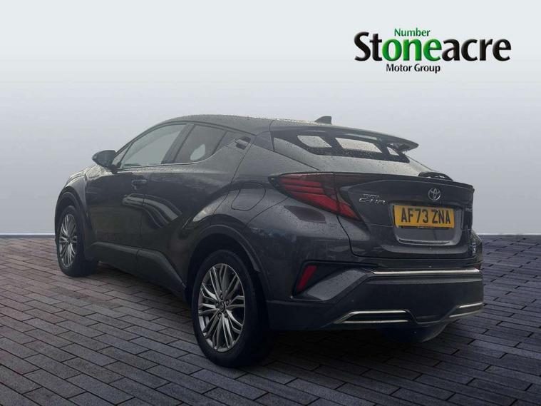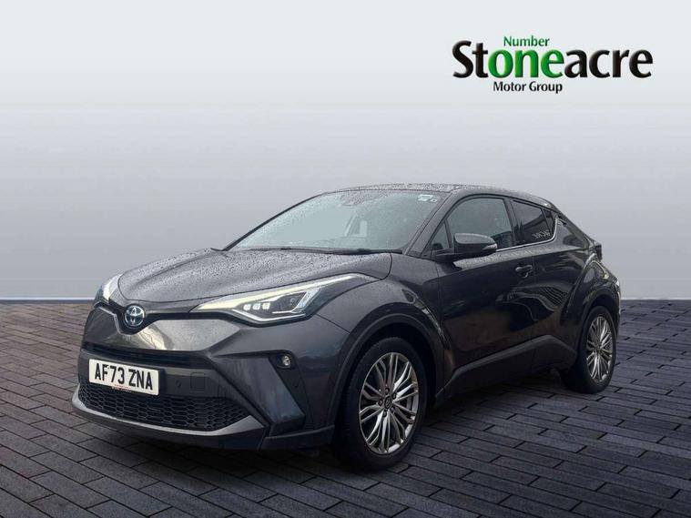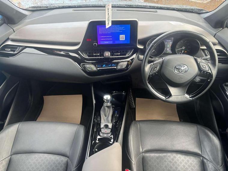 4.2" coloured TFT screen for multi-information display, Adaptive cruise control, Apple car play and Android auto, Bluetooth connectivity, E-call, Electric power steering, Hybrid system indicator, Lane departure alert with steering control, Lane trace assist, Push button tailgate release, Remote boot door release in cabin, Remote boot door release in key, Reversing camera, Road sign assist - RSA, Simple Intelligent parking assist, Smart voice assist, Touch 2 Go navigation system, Trip computer, Voice recognition, Wireless smartphone integration, Vehicle Stability Control (VSC), 6 speakers, AM/FM radio, DAB Radio (Digital Audio Broadcasting), Toyota touch 2 multimedia system with 8" display, USB connector, Wi-fi connectivity, Adaptive front light system, Adaptive LED Headlights, Anti-jam protection on power windows, Auto high beam, Auto up and down function on all power windows, Automatic headlight levelling, Automatic headlights, Automatic headlights cut-off, Black and body coloured rear bumper, Black lower front grille, Black upper front grille, Body colour door handles, Body colour door mirrors, Body colour front spoiler lip, Body coloured front bumper, Boot door release with push button, Electric heated door mirrors, Follow me home headlights, Front and rear power windows, Headlight cut off reminder, Honeycomb lower front grille, LED daytime running lights, LED fog lights, LED front light guide, LED High mounted stop light, LED rear brake lights, LED rear combination lights, Noise reduction layer on front windows and windscreen, Power adjustable door mirrors, Privacy glass, Rain sensor, Rear sequential indicators, Rear side wing doors, Rear spoiler, Rear tailgate, Rear window defogger, Rear window wiper, Shark fin antenna, UV-filter on driver and passenger windows, UV-filter on rear windows, Variable front intermittent wipers, 12v power outlet - front, 3 rear headrests, 3 seat bench in 2nd row, 3 spoke leather steering wheel, 60/40 split folding 2nd row rear seats, Adjustable rear headrests, Adjustable speed limiter switch on steering wheel, Assist grips front and centre pillar, Audio and telephone switches on steering wheel, Black front door assist grips, Blue ambient lighting on front cup holders, Blue ambient lighting on front doors, Boot light, Chrome interior door handles, Driver and front passenger personal light, Driver and front passenger Whiplash Injury Lessening seats, Driver and passenger seatback pockets, Dual zone automatic air conditioning, Floor mats, Front cupholders, Front head restraints, Front sports seats, Glovebox with internal light, Hard tonneau cover, Heated driver and front passenger seats, Heated steering wheel, Hooks for luggage holding net, Humidifying Nanoe air purifier, Illuminated entry system, Isofix attachments on outer rear seats, Leather gearshift, Leather wrapped steering wheel, Light on driver sun visor, Light on passenger sun visor, Manual telescopic steering wheel, Manual tilt steering wheel, Microphone on front personal light, Mirror on driver sun visor, Mirror on passenger sun visor, Multimedia switches on steering wheel, Pollen filter, Power adjustable lumbar support on driver seat, Power tilting cushion on driver seat, Shopping bag hooks, Single front passenger seat, Slow opening on lower glovebox, Voice recognition switch on steering wheel, Leather pack - C-HR, Tech with parking sensor pack - C-HR, 16 Disk front wheel brake, 3x3 point rear seatbelts, ABS+EBD+Brake assist, Electronic parking brake, Front and rear seatbelt reminder, Front passenger airbag on/off switch, Hill start assist control (HAC), Pre collision system with pedestrian detection, Pre-tensioners and force limiters, Rear door child safety locks, SRS Airbags - Driver + Front passenger, front side, front and rear curtain and driver's knee airbags, Toyota safety sense, Tyre pressure monitoring system, Tyre pressure warning system, Acoustic vehicle alert system (AVAS), Glass-breaking alarm sensors, Immobiliser, Intrusion alarm, Intrusion sensor, Motion sensor alarm, Power door locks, Power passenger window lock, Remote central locking, Black lower dashboard, Dark brown upper dashboard, Piano black console, Silver deco line on upper dashboard, Tyre repair kit,