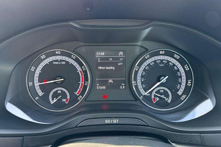 Driver alert system, Driver fatigue sensor, Driver profile selection, Electro-mechanical PAS, Outside temperature gauge, Service interval indicator, Start/stop system with regenerative braking, DAB radio with Bluetooth, SD card slot, USB connection, Acoustic glass, Aero front windscreen wipers with intermittent function, Automatic headlight control system, Body colour door mirrors and handles, Body coloured bumpers, Electric front and rear windows with child proof lock, Electrically adjustable heated folding and auto dimming door mirrors with boarding spots, Heated rear windscreen, LED rear lights with high functionality, Light assistant (coming/leaving home/tunnel light), Privacy glass, Safety reflectors on front doors, Third brake light, 1.5 litre bottle holders in driver and front passenger door panels, 12V socket in boot, 12v socket in front centre armrest with storage compartment and rear air vents, 2 Folding hooks and nets in boot, 2 Front readings lights for driver and passenger, 3 rear height adjustable headrests, 4 foldable roof handles with rear coat hooks, 4 lashing points on luggage floor, Backrest release, Cargo elements in boot, Chrome inner door handles, Driver and passenger seats height adjust, Dual zone climate control, Folding tables on the front seat backrests, Front seat and rear pockets, Height adjustable front three point seats belts with tensioners, Height/reach adjust steering wheel, Ice scraper, Illuminated and cooled glovebox, Illuminated luggage compartment, Isofix child seat preparation outer rear, Manual lumbar support for front seats, Net programme in boot, Pen holder, Pollen filter, Rear boot cover, Rear reading lights, Rear seats fixed folding and divided 60:40, Removable LED torch in the boot, Safety vest holder, Storage box in upper central dashboard closed, Storage net on centre console passenger side, Sunglasses storage compartment, Sunvisors with illuminated vanity mirrors, Umbrella under passenger seat, Airbags - Front side, head, knee and curtain, Automatic door unlocking in case of crash, Automatic fuel cut off in case of crash, Driver airbag, Electronic parking brake with auto hold function, Emergency rear braking signal, ESC including ABS, MSR, ASR, EDS, HBA, DSR, RBS, MKB and traction control, Front assist radar scanning of the space in front of the car with automatic braking, Hill hold control, Passenger airbag with switch-off function, Pedestrian monitor, Seatbelt reminder signalisation and pretensioner for all seats, Three point seatbelts rear, Two tone horn, Tyre pressure display, Tyre pressure monitor, Alarm with interior monitoring, back up horn and tilt sensor with safe function, Electronic engine immobiliser, Remote central locking with 2 remote folding keys, Chrome framed air vents, Storage on wheel cover,