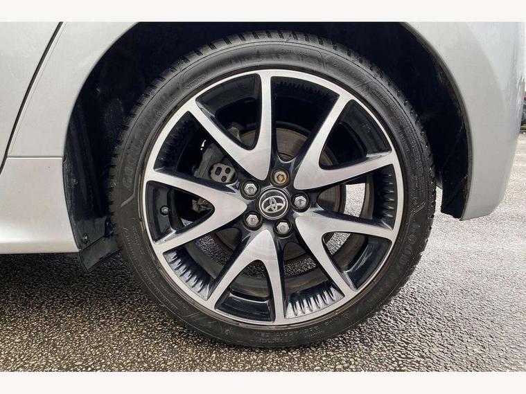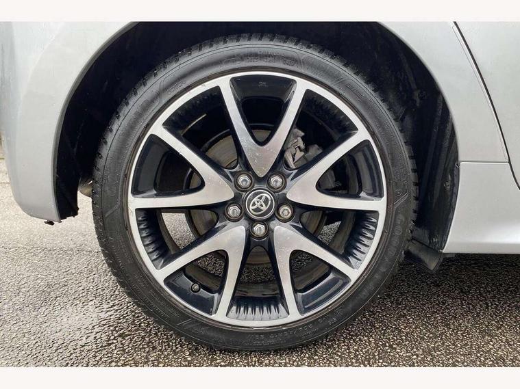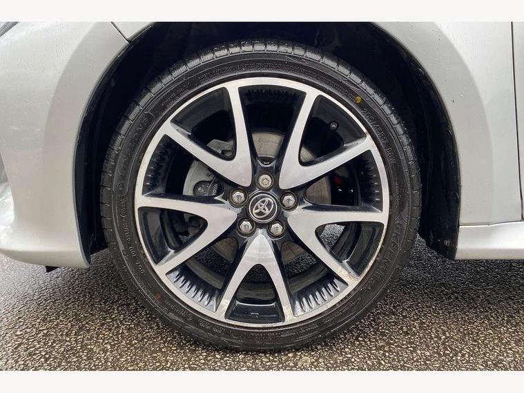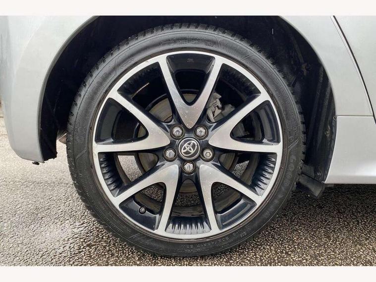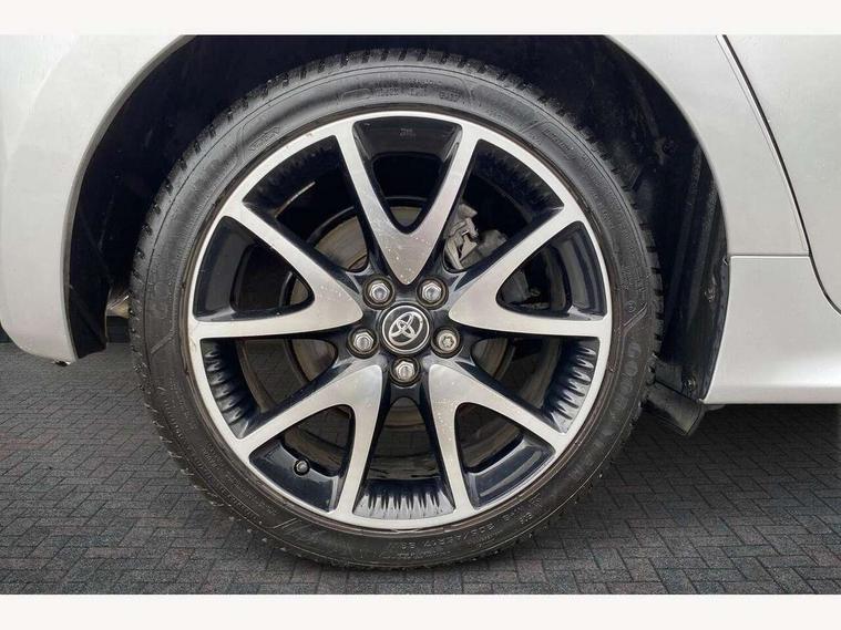 Adaptive cruise control, Adjustable speed limit with speed warning, Bluetooth connectivity, Colour binocular inspired displays with digital speedometer, E-call, Electric power steering, Hybrid energy display, Multi information display switches on steering wheel, Reversing camera, Smartphone integration with Apple CarPlay and Android auto, Vehicle Stability Control (VSC), 8" Multimedia display touch screen, JBL Premium sound system with 8 speakers, Toyota Touch 2 with DAB, USB connection, Acoustic windscreen glass, Auto windscreen wipers, Automatic headlights, Body coloured door mirrors, Electric adjustable heated door mirrors, Follow me home headlights, Front auto power windows with anti jam protection, Full LED rear lights, LED daytime running lights, LED front fog lights, LED Headlights, LED High mounted stop lamp, Painted front grille, Rear auto power windows with anti jam protection, Rear privacy glass, Rear spoiler, Shark fin antenna, Turning signal integrated indicators in door mirrors, 3 adjustable rear headrests, 3 spoke leather steering wheel, 60/40 split folding rear seat, Adjustbale boot height, Coat hooks in rear grab handles, Cup holders (2 front & door), Data Communication Module (DCM) connected services, Dual zone automatic air conditioning, Fabric seat with partial synthetic leather upholstery, Front armrest, Front sport seats, Glovebox, Height adjustable driver's seat, Height adjustable passenger seat, Isofix seat fixing, Leather gearshift, Map pockets on the backs of the front seats, Pollen filter, Shopping bag hooks, Tilt/telescopic steering column, 3 point seatbelts on all rear seats, ABS+EBD+Brake assist, Active headrests, Electronic parking brake, Emergency brake light system (EBS), Front passenger airbag on/off switch, Front seatbelt reminder, Hill start assist control (HAC), Rear child proof door locks, Rear seat belt reminder, Supplemental Restraint System (SRS) 8 airbags: Driver & passenger's airbags, dual side curtain airbags, side impact airbags, front centre airbag, Toyota Safety Sense 2, Precollison + Night time Pedestrian & Cyclist Detection, Lane Trace Assist, Auto High Beam, Intelligent ACC & Road Sign Assist, Tyre pressure warning system, Alarm/immobiliser, Keyless smart entry with push button start, Remote powered central double locking doors, Piano black interior trim, Soft touch instrument panel, Space saver spare wheel,