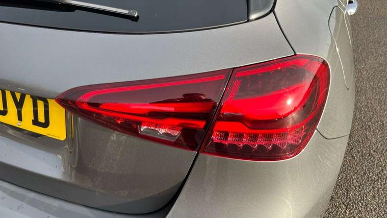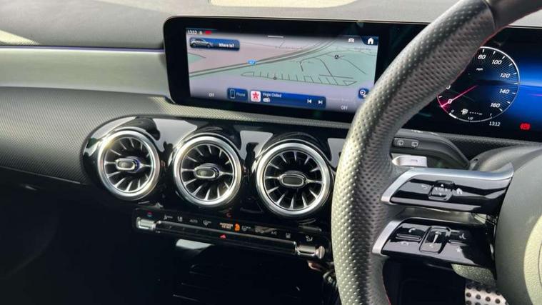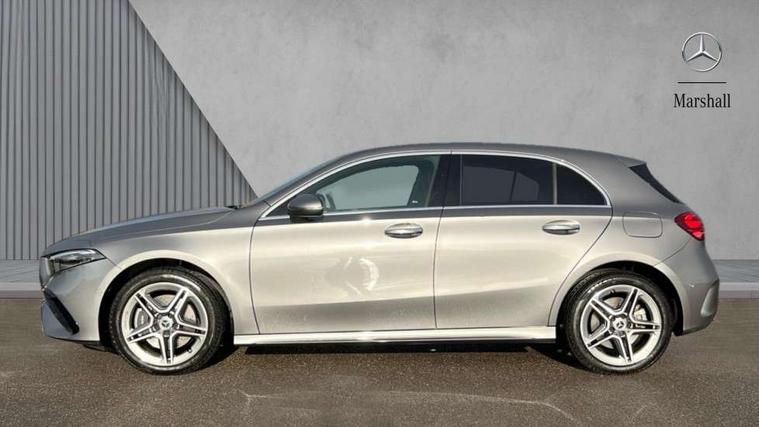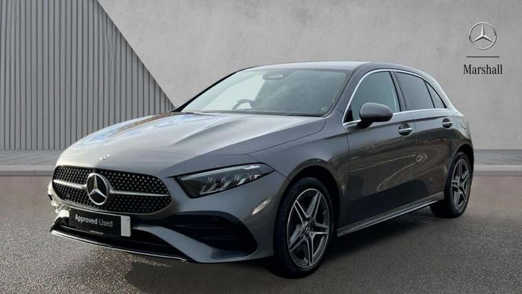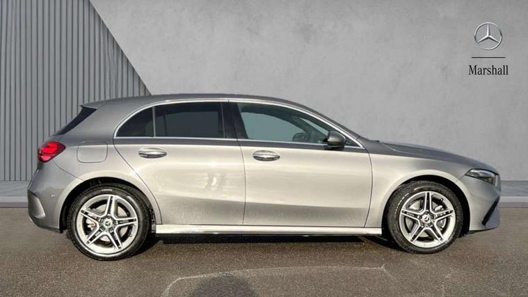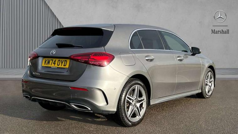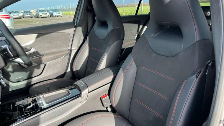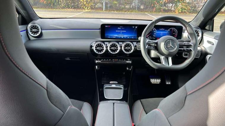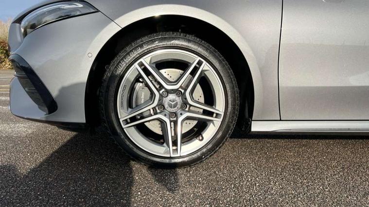 10.25 inch touchscreen central media display, 10.25" Digital instrument cluster display screen, Acoustic ambient protection, Attention assist, Blind spot assist, Brake pad wear indicator warning light, Car wash mode, Cruise control + speed limiter, Direct steering, Direction indicators with lane change function, Dual bluetooth interfaces, DYNAMIC SELECT with a choice of driving modes (ECO, Comfort, Sport and Individual), Easy pack tailgate hands-free access, ECO start/stop function, Engine start/stop button, Fingerprint scanner, Fluid level warning indicator for fuel, oil, coolant and washer fluid, Fluorescent jacket for driver, Hard-disk navigation, Hey Mercedes Voice activation, Lamp failure indicator, Lane keeping system, Mercedes me connect including emergency call system, accident recovery, breakdown and maintenance management, Mercedes me remote services, Outside temperature gauge, Owners manual in English, Pre-installation of private car share, Preinstallation for Mercedes Benz link, Remote and charging services plus, Remote boot closing, Service indicator (ASSYST), Smartphone integration with Apple CarPlay and Android auto, Speed limit assist, Speed sensitive power steering, Tailgate, Trip computer in multifunction display with current consumption indicator, Wireless charging, Charging system - AC charging system rated at 11kW, Charging system - DC charging system rated at 22 kW, Comfort suspension, Mode 2 charging cable for domestic socket with 5m up to 1.8kW, Mode 3 charging cable for wallbox and public charging stations with 4m upto 22 kW, DAB Digital radio, MBUX multimedia system, Mercedes Benz sound system (100 W) with 6 speakers, 4 Electric Front and Rear windows, Adaptive brake lights, AMG body styling - AMG front apron with front splitter and AMG rear apron and visible exhaust tailpipe trim elements, Body colour bumpers, Body colour door handles with chrome inserts, Body colour side skirt, Body coloured door mirrors, Chrome beltline strips, Diamond radiator grille with pins in fine star pattern, Electric adjustable and heated door mirrors with integrated LED side indicators, Exhaust system with 2 visible tailpipe trim elements and rear apron, Headlamp assist automatic headlamp activation, Heat insulating dark tinted rear and rear side windows, Heated glass rear windscreen + timer control, LED High level third brake light, LED High Performance headlamps including integral LED daytime running lamps and adaptive highbeam assist, LED tail lamp, Privacy glass, Radio aerial, Rain sensing windscreen wipers with two sensitivity settings, Rear fog lights, Rear side wing doors, Rear windscreen wiper, Window line trim strip in chrome, 3 seat bench in 2nd row, 3 Spoke flat bottom leather multi function steering wheel with perforated leather in grip area, 4 way lumbar support, 40:20:40 split folding rear seats, Air conditioning - One zone THERMATIC automatic climate control with automatically controlled air distribution, AMG floor mats, Automatic child seat recognition sensor, Black air vents with surround in silver chrome, Black roof lining, Brushed stainless steel sports pedals with rubber studs, Charging socket, Front centre armrest with stowage, Front door sills with Mercedes Benz lettering, Front seat backs luggage nets, Galvanished gear shift paddles on steering wheel, Heated front seats, Height/reach adjustable steering column, Interior lighting - 64 colour Ambient lighting, Interior mirror with reading lamps in black and frameless, Pre-entry climate control, Rear armrest with 2 cupholders, Seat occupancy sensor for front passenger seat, Single front passenger seat, Sports seats with integrated headrests, Stowage compartment in centre console with retractable cover, Sunvisors with illuminated vanity mirrors, Twin front cupholders, Light and sight package - A Class, Mirror package - A Class, Parking pack with 180 degree view - A Class, Seat comfort pack - A Class, USB pack plus - A Class, 3 rear 3 point seatbelts, ABS with Brake Assist, Active bonnet, Active brake assist includes forward collision warning system with autonomous braking, Adaptive brake assist with hold function and hill start assist, Black seatbelts, Bonnet with power domes, Childproof locks manually operated for rear doors and electrically operated for rear power windows, Crash responsive emergency lighting, Driver and passenger head and side airbags, Drivers knee airbag, Dual stage driver/passenger airbags, Electronic parking brake, ESP curve dynamic assist, ESP with ASR, Front and rear seatbelt reminder, ISOFIX and top tether child seat fixing points in two outer rear seats, Perforated front brake discs, Radar based regeneration, Tyre pressure monitoring system, Warning triangle and first aid kit, Window airbags, Alarm system/interior protection/immobiliser, Guard 360 degree vehicle protection, Keyless entry lock/unlock, Keyless Go, Remote central locking and crash sensor with emergency opening function, Light longitudinal grain aluminium trim, 18" AMG 5 twin spoke light alloy wheels, aerodynamically optimised, painted in black with high sheen finish, Summer tyres, Tirefit sealant kit,