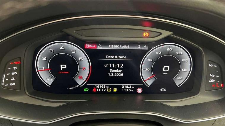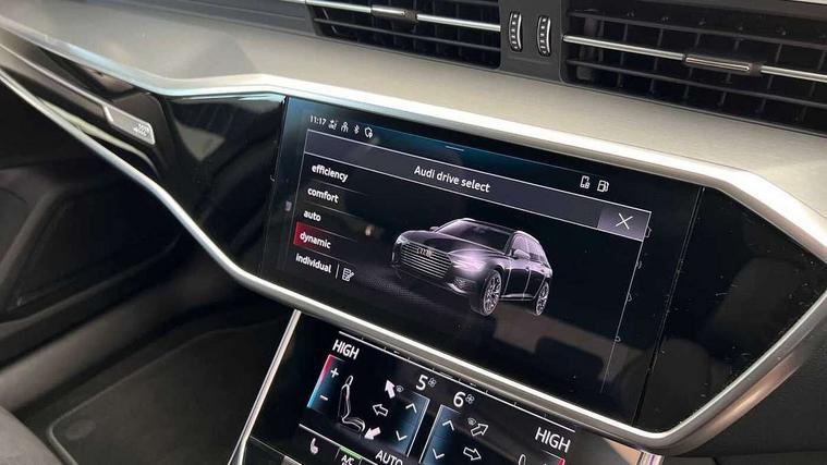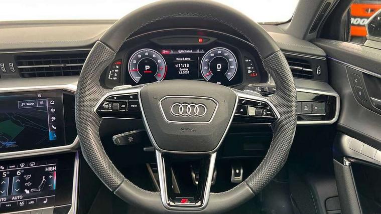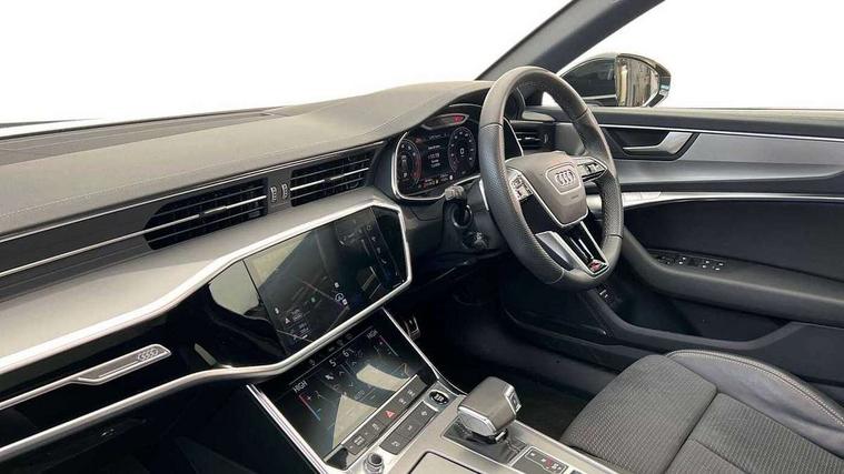 Audi connect safety and service (e-call), Audi connect with Amazon Alexa Integration, Audi drive select, Audi parking system plus - acoustic and visual park assist system for front and rear, Audi virtual cockpit, Automatic start/stop system with coasting functionality, Bluetooth interface, Camera based traffic sign recognition, Lane departure warning system, MMI navigation plus with 10.1" and 8.6" touch screens, Power operated tailgate, Progressive steering, Rear view camera, Service interval indicator, Smartphone interface includes wireless Apple carplay/Android Auto, Voice control system, Sports suspension, Audi front music interface, Audi sound system, Auxiliary input socket, DAB Digital radio, USB connection, Aluminium roof rails, Body colour rear roof spoiler, Body coloured door mirrors, Electric front/rear windows, Electrically adjustable heated and folding + automatically dimming exterior mirrors with memory function, Frameless auto dimming interior rear view mirror, Front intermittent wipers, Heat insulating darkened glass in side and rear windows, Heat insulating glass in windshield, LED rear lights with dynamic indicators, LED signature front daytime running light, LED third brake light, Matrix LED headlights, Matt black rear diffuser with diffuser strip and tailpipes in chrome, Matt black side air intake grille with inlay in matt aluminium, Privacy glass, Radiator grille in anthracite black matt, single frame in chrome and horizontal struts in matt aluminium silver, Rain and light sensors, Rear side wing doors, Rear wiper, 2 zone deluxe electronic climate control, 3 spoke high multi-function perforated leather steering wheel with contrast stitching and shift paddles, 40/20/40 split folding 3 rear seat bench in 3 parts with rear centre armrest, Audi phone box light, Black cloth headlining, Electrically adjustable front seats including seat height, fore/aft position, backrest angle and 4-way lumbar with memory for driver's seat, Front and rear floor mats, Front centre armrest, Front head restraints, Heated front seats, Height/reach adjust steering wheel, Illuminated door sill trims with S logo, Illuminated sun visors with vanity mirrors, Leather gear knob, Luggage compartment system, Rear headrests, Single front passenger seat, Stainless steel pedals and foot rest, Tool kit and car jack, LED Interior Ambient Lighting Pack - A6, Non smoking pack - A6, S line exterior style pack - A6, 3 point seatbelts on all seats, Airbags - Front side, front and rear including head, Audi pre-sense front, EBD - Electronic brakeforce distribution, Electromechanical parking brake, Electronic Stability Control (ESC) including ABS, ASR and EDL, Extended pedestrian protection measures, ISOFIX child seat mounting for front passenger seat and ISOFIX child seat mounting with Top Tether for outer rear seats, Manual child proof rear door locks, Seatbelt monitoring, Tyre pressure warning light, Warning triangle and first aid kit, Anti theft alarm with tow away protection, Anti-theft wheel bolts and wheel loosening detection, Immobiliser, Keyless Go, Remote central locking, Matt brushed aluminium inlays,