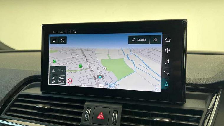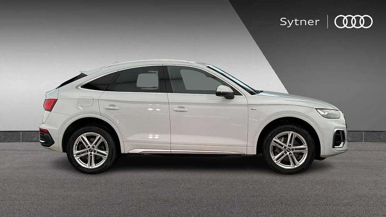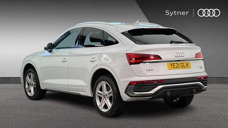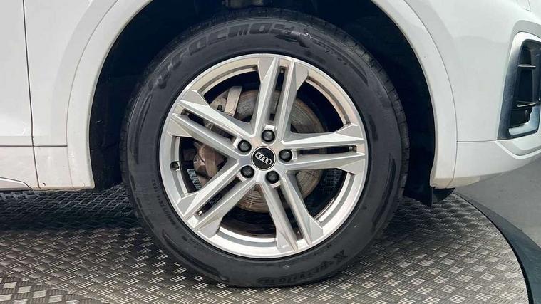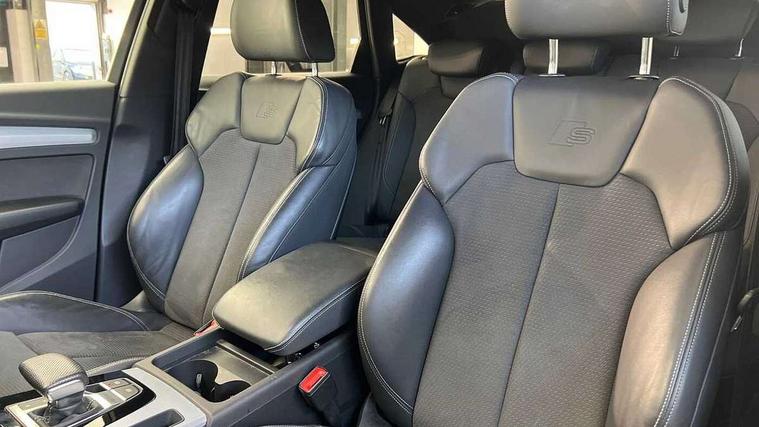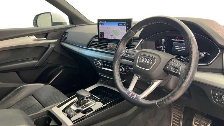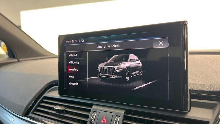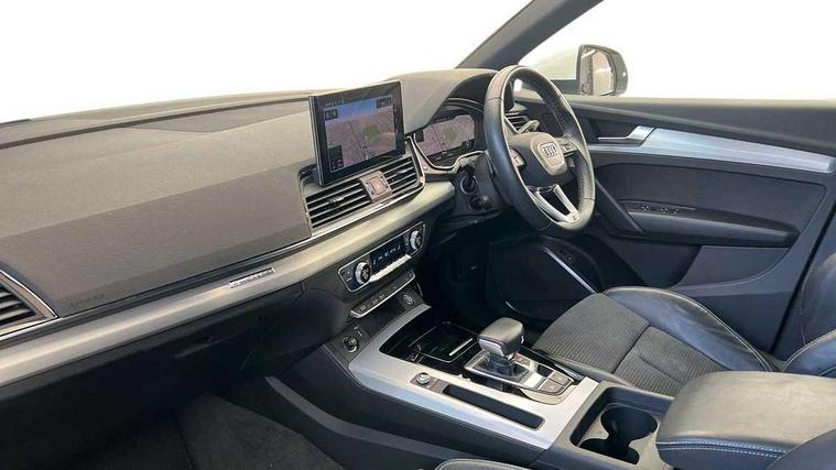 Audi connect safety and service (e-call), Audi connect with Amazon Alexa Integration, Audi drive select, Audi virtual cockpit plus with 12.3" screen and three different layout designs, Audi wireless smartphone interface, Automatic start-stop system with coasting functionality and efficiency programme, Bluetooth interface, Electro - mechanical power assisted steering, MMI navigation plus with 10.1" touch screen, Power tailgate, Reversing camera, Service interval indicator, Voice control system with Audi hotword activation "Hey Audi", Quattro on demand, S line sports suspension, DAB Digital radio, Acoustic windscreen, Aluminium roof rails, Audi matrix LED headlights with dynamic front and rear indicators, Auto dimming rear view mirror, Automatic headlights and windscreen wipers, Body colour door mirrors, Body colour rear diffuser with matt aluminium silver surrounds, Body colour underbody protection, Chrome plated exhaust trims, Door sills in Selenite silver, Electric adjustable/heated/folding door mirrors, Front air inlet surrounds in aluminium, Front and rear electric windows, Front radiator grille in honeycomb design, Headlight washers, Lower bumpers painted in contrast Manhattan grey, Rear chrome trim strip below lights, Rear privacy glass and rear side windows, Rear spoiler, Rear wiper, Roof bars, S Line badges on the front wings, S Line front and rear bumpers, S Line side skirts, 2 x USB charging port with aux input socket, 3 rear headrests, 40:20:40 split folding rear seat with rear centre armrest, Black cloth headlining, Comfort front centre armrest, Contrast stitching on seats, steering wheel and gear lever gaiter, Deluxe 3 zone electronic climate control, Front head restraints, Front/rear floor mats, Gear lever in black leather, Heated front seats, Height/reach adjustable steering column, Illuminated door sill trims with S logo, ISOFIX child seat mounting and top tether, Manual seat adjustment with 4-way electric lumbar support, Removable luggage compartment floor, Stainless steel pedals, Sunvisors with vanity mirrors, Trunk roller cover, High gloss pack - Q5, LED interior light pack - Q5, 3 point seatbelts on all seats, 6 airbags - Driver, front passenger, curtain and side airbags, Electrically operated child locks on rear doors, Electromechanical parking brake, Electronic stabilisation control including ABS, ASR and EDL, Front passenger airbag deactivation, Hill descent control, Hill hold assist, Multi collision brake assist, Pop-up bonnet for pedestrian protection, Pre sense city, Seat belt force limiter, Seatbelt monitoring, Tyre pressure warning, Warning triangle and first aid kit, Anti theft alarm, Anti-theft wheel bolts, Keyless Go access/ignition system, Matt brushed aluminium inlays,