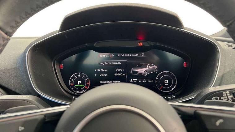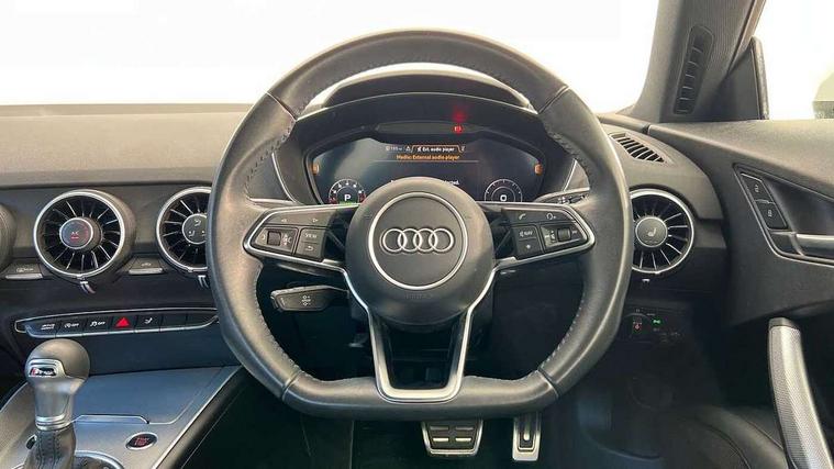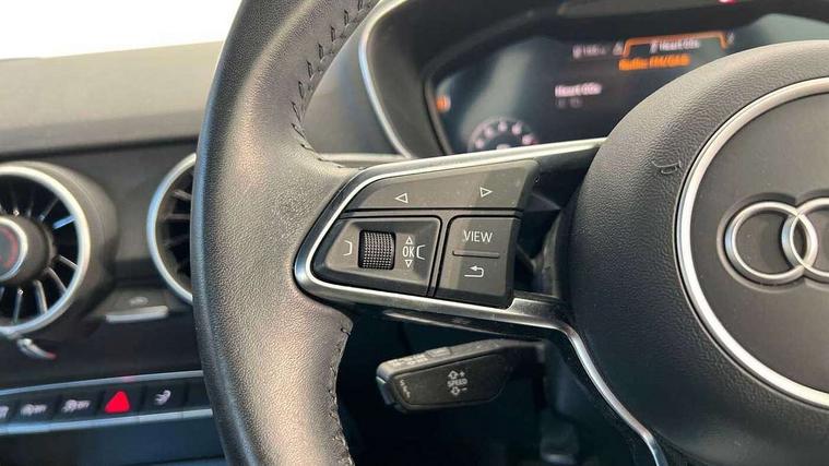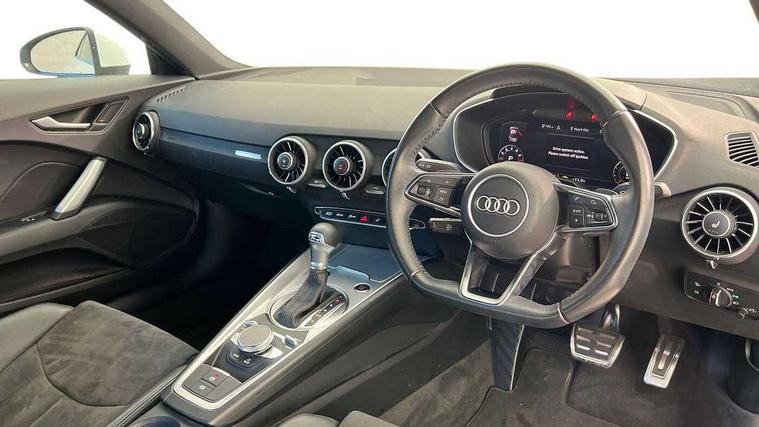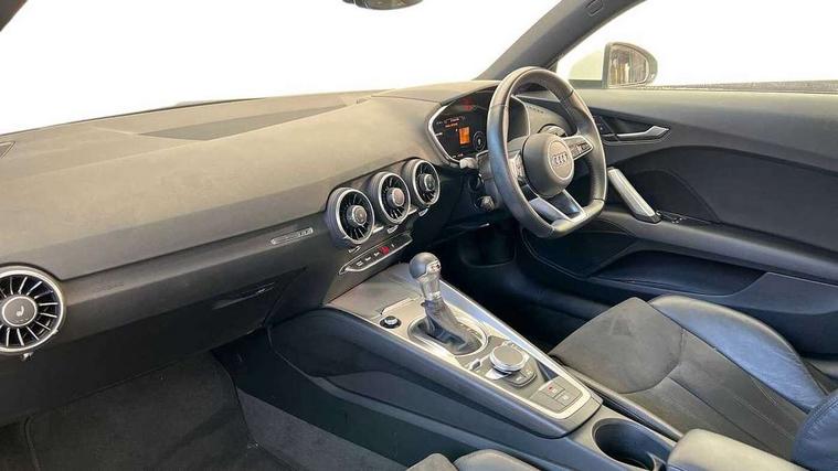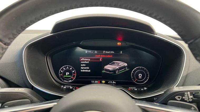Audi drive select with 4 Pre configured modes, Audi smartphone interface, Audi virtual cockpit - 12.3" high-resolution LCD display with fully customisable instrument cluster, Cruise control + speed limiter, Emergency call service, MMI touch panel, Mobile phone preparation with bluetooth interface, Progressive power assisted steering, Service interval indicator, Start/Stop system with energy recuperation, TP memo, Sports suspension, AM/FM radio, Bluetooth audio streaming, DAB Digital radio, MMI Radio with CD player and SD/XC card slot, Auto dimming rear view mirror, Body colour bumpers, Body colour door mirrors, Electric folding door mirrors, Electric front windows, Electrically adjustable and heated door mirrors with integrated LED side indicators, Front fog lights, Green tinted heat insulating glass, LED 3rd brake light, Light and rain sensors, Rear boot, Retractable rear boot spoiler, Sunband for windscreen, Xenon headlights with LED daytime running lights with automatic headline range control + LED rear lights, brake lights and rear indicators, 12V socket, 2 rear seats, 3 spoke flat bottomed high multi-function leather sport steering wheel with gearshift paddles, Alcantara/Leather upholstery includes seat centre panels, door trim inserts in black Alcantara with side bolsters, head restraints in black leather, Aluminium door sill trims, Front centre armrest, Front passenger seat, Front sports seats, Heated front seats, Height/reach adjust steering wheel, Integrated head restraints, ISOFIX child seat mounting for front passenger seat with airbag deactivation, Manual adjustment of seat height, fore/aft position, seat angle, seat depth and backrest angle, Rear head restraints, Rear top tether child seat ISOFIX attachment, Split folding rear seat, Non smoking pack - TT/TT RS, 3 point front seat belts, ABS, ASR traction control, Curtain airbags, Driver and front passenger airbag with front passenger airbag deactivation, EDL traction control, Electromechanical parking brake, ESP, First aid kit, Front side airbags, Head airbags, Hill hold assist, Seatbelt warning, Tyre pressure loss indicator, Warning triangle, Anti theft alarm, Anti theft wheel bolts, Immobiliser, Keyless Go, Remote central locking, Aluminium design inlays, Tool kit, Tyre repair kit,