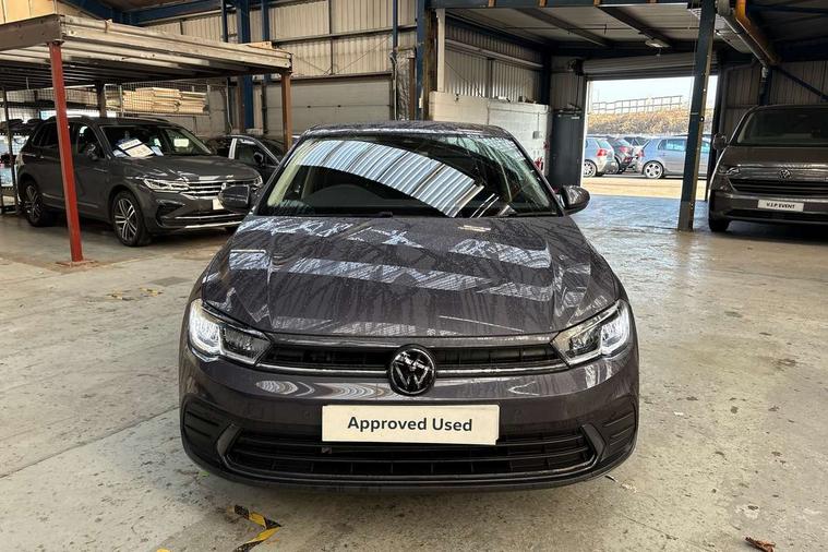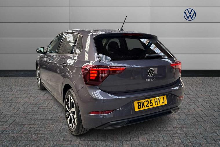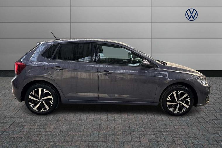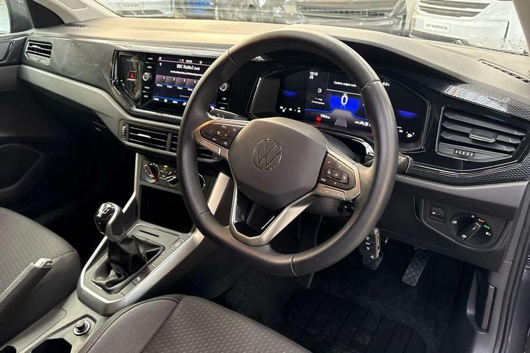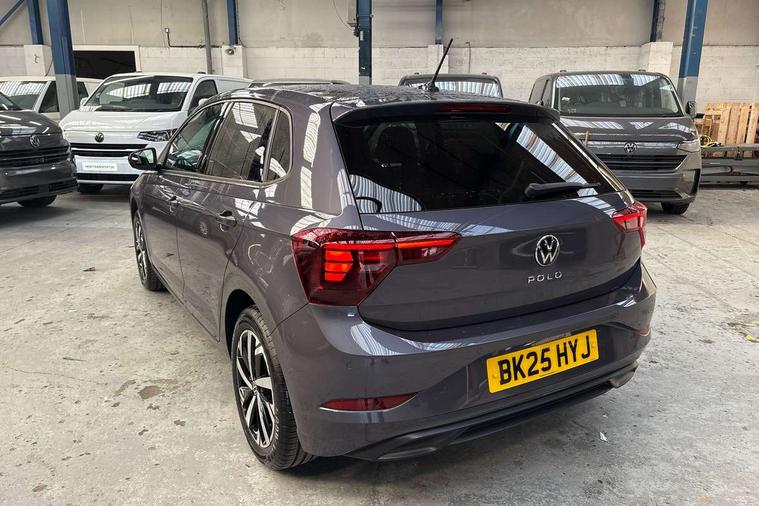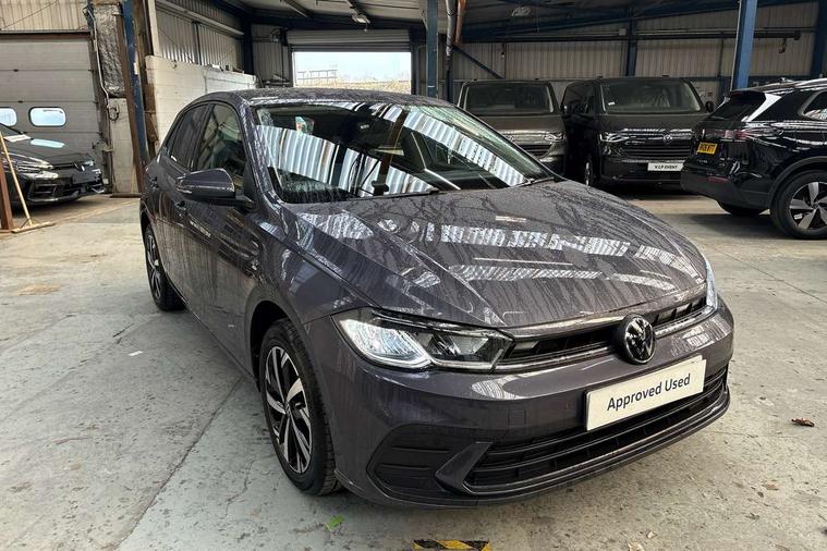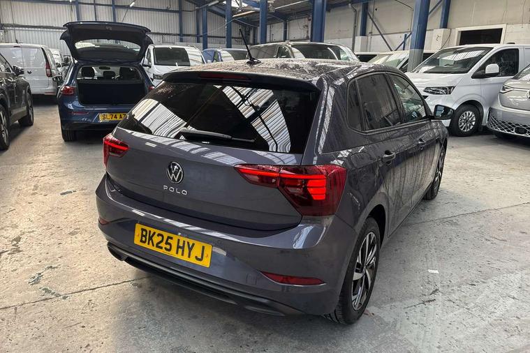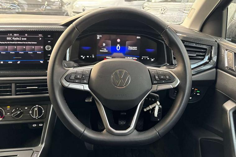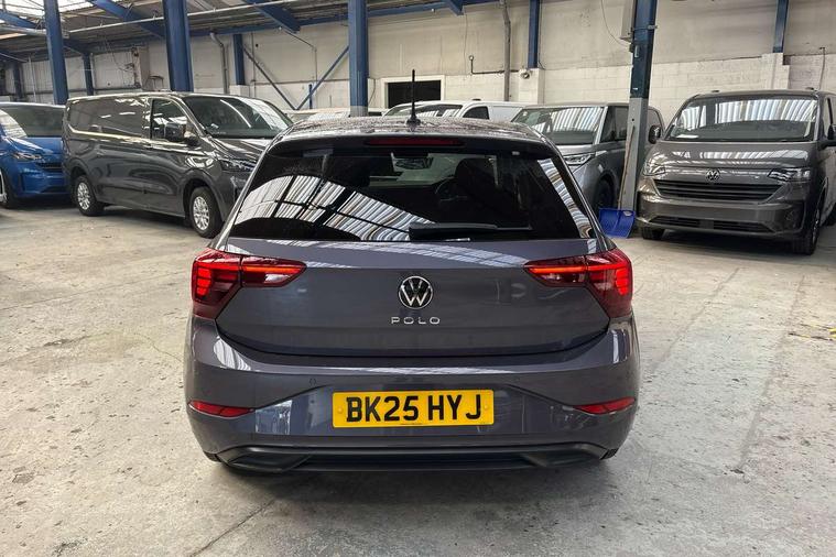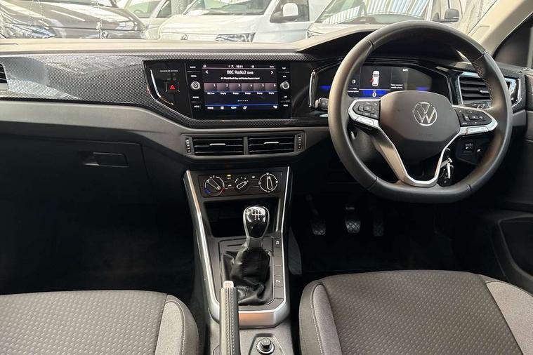 Adaptive cruise control without follow-to-stop and speed limiter, Advanced driver attention and drowsiness monitor, Bluetooth mobile phone interface, Dynamic road sign display, Emergency call service, Multifunction front facing camera for distance control, Park distance control, Power assisted speed sensitive steering, Preparation for navigation system with media and internet package, Preparation for We connect and We connect plus, Rear view camera, Speedo and rev counter, electronic odometer, trip, service interval display and exterior temperature gauge, Standard rear axle, Travel Assist - Lane keeping system and traffic jam assist, Travel assist including emergency assist, Trip computer, Warning signal and warning light for front and rear seatbelts not fastened, Washer fluid level indicator, Wireless app connect, Front wheel drive, Rear shock absorpion, Start-stop system with battery regeneration (recuperation - energy recovery during braking), DAB Digital radio, Diversity antenna for FM reception, Front and rear 6 speakers, Automatic dimming interior rear view mirror, Automatic headlight control with LED separate daytime running lights with coming/leaving home function, Body colour bumpers with chrome inserts, Body colour door handles, Body colour door mirrors, Electric front windows, Engine badge deletion, Headlight range adjustment, Heat insulating and laminated safety glass windshield, LED Headlights, LED rear combination lamps, Power folding adjustable/heated exterior mirrors and front passenger exterior mirror lowering function, Rain sensor, Rear electric windows, Rear fog light, Rear side wing doors, Rear tinted glass from B-pillar backwards approx 65% tinted, Rear windscreen washer and wiper with interval delay, Third brake light, 12V power socket in centre console, 2 front and 2 rear reading lights with switch off delay and dimmer, 2 USB-C ports in the front, 2 USB-C charging sockets on the center console in the rear, 3 rear head restraints, 60/40 split folding rear seat and rear seat bench not split, Ceramique roof lining, Chrome plated radiator grille inserts, air vent surrounds and light switch surrounds, Door and side trim panel, Driver and front passenger seat height adjustment, Driver/passenger sunvisors with illuminated vanity mirrors, Front centre armrest, Front seat backrest storage pockets, Front standard seats, Handbrake lever handle in leather, Hartley/Thomas cloth upholstery, Headliner in recycled material, Isofix child seat preparation easy-fit (for two outer rear seats, and front passenger seat) compatible with I-size, Leather trimmed gear knob, Luggage compartment cover, Luggage compartment lighting, Removable luggage compartment floor, Single front passenger seat, Standard climatic zones, Standard pedal cluster, Three spoke leather wrapped multifunction steering wheel, Light and vision pack - Polo, 3 point height adj front seatbelts + pretensioners, 3 point seat belt for centre rear seat, 3 point seatbelts, outer rear with ECE lable, ABS, Driver and front passenger airbag with front passenger airbag deactivation, Drivers and front passengers safety optimised head restraints, ESC (Electronic stability control) + EDL (Electronic Differntial lock) and ASR (Traction control), Extended and predictive pedestrian/ cyclist protection, Front assist with autonomous emergency braking (for Adaptive Cruise Control ACC up to 130 mph), Front curtain and side airbags with center airbag, Front disc brakes, Hill hold control, Manual child lock in rear doors, Rear drum brakes, Single tone horn, Tyre pressure loss indicator, Alarm with interior protection, Anti-theft alarm system with interior monitoring, backup horn, and towing protection, Anti-theft wheel bolts, Electronic engine immobiliser, Lava stone black gloss/matt decorative inserts in dash and front door panels, 16" Torsby alloy wheels, Low rolling resistance tyres,