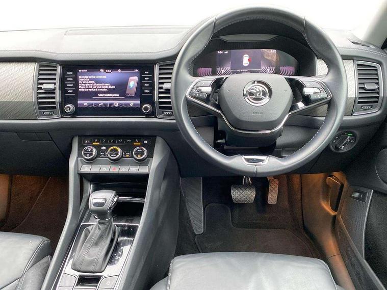 Bluetooth system, Digital voice enhancement, e call+, ECO Stop/start function, Exterior temperature indicator, Rear view camera, Smartlink wireless for apple carplay and wired for android auto, Speed limiter, Tailgate unlocking from outside, USB C Port x 2 in front centre console, Wireless charging, 8 Speakers, DAB Digital radio, Aero front windscreen wipers with intermittent function, Aero rear window wiper, Auto dimming rear view mirror, Black wheel arch surrounds, Body colour bumpers, Body colour door mirrors and handles, Chrome front grille, Chrome roof rails with chrome window surround, Daytime running lights, Electric adjustable/heated/folding door mirrors, driver side auto dimming with boarding sports and memory function, Electric front and rear windows, Extended rear spoiler with finlets in gloss black, Front fog lights, Full LED matrix headlights with AFS (adaptive front light system), cornering function and AWL (all weather lighting system), Headlight washers, Heated rear window, Invisible tailpipe, LED rear fog light, LED third brake light in rear spoiler, Light assistant (coming/leaving home/tunnel light), Off-road style lower front bumper element, Privacy glass, Rain and light sensors, Rear LED lights (high functionality) with welcome effect and dynamic indicators, Rear side wing doors, Safety reflectors on front and rear doors, Window control switches with black trim, 12V socket in boot, 2 rails with 2 hooks, 2 seat bench in 3rd row, 3 seat bench in 2nd row, 4 foldable roof handles with rear coat hooks, 60:40 foldable rear seat with sliding adjustment and backrest angle adjustment, Bottle holders in door panel in the 1.5 litre front and 1 litre rear, Cargo storage compartments, Chrome headlight control button, Chrome interior door handles, Coat hooks on B pillar, Covered storage compartment on driver side, Decorative door sill covers, Front centre armrest with storage compartment, cup holder and 12V socket, Front courtesy lights, Gear shift lever with chrome frame and black gloss insert, Grey stitching in front and rear armrests and door armrests + door inserts, Height adjustable front headrests, Illuminated and cooled glovebox, Illuminated luggage compartment, Isofix child seat fittings in outer rear seats with top tether, Manually adjustable steering column, Net programme in boot (1x horizontal Net, 2x vertical Nets), Overhead glasses storage compartment, Pollen filter, Rear centre armrest with cupholders, Single front passenger seat, Sliding trunk cover, Small Bags on the inner sides of the front backrests, Sunvisors with illuminated vanity mirrors, Three rear height adjustable headrests, Ticket holder on A Pillar, Umbrella in door panel, Variable boot floor, Auto door release and activation of warning lights in the event of an accident, Child locks on rear doors, Driver and front passenger airbag with knee airbag and front passenger airbag deactivation, Electronic parking brake with hill start assist, Emergency rear braking signal, ESC (incl. ABS+MSR+ASR+EDS+HBA+DSR+RBS+MKB), Front assist with autonomous emergency braking, Front side airbags with curtain airbags, Fuel cut off safety device, Height adjustable front 3 point seatbelts + pretensioners, Hill hold control, Rear disc brakes, Safety vest holder in door, Seat belt reminder for all seats, Three point rear seat belts, Two tone horn, Tyre pressure monitor, Alarm with interior monitoring and tilt sensor with safe function, Anti-theft wheel bolts, Immobiliser, Keyless entry and start system (KESSY), Remote central locking with 2 keys, Grey stitching in dashboard, Linear diamonds decorative inserts, Temporary spare wheel (space saver),