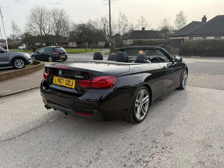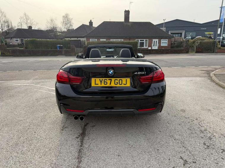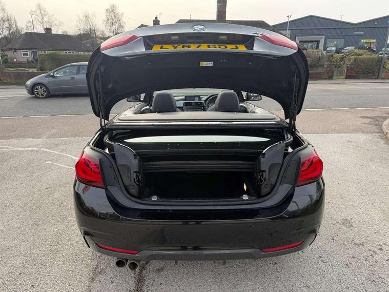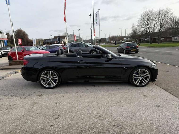 Auto start-stop, BMW Online services, BMW remote services, BMW Teleservices, Boot lid lock with soft close function, Brake pad wear indicator in front and rear, Check Control warning system for monitoring of lights and door/luggage compartment open warning, Control display - 6.5" colour display screen, Front/rear park distance control (PDC), iDrive Controller with 8 favourite buttons, Instrument cluster with speedometer with mph readout, tachometer, fuel gauge and oil temperature gauge, Lights on warning by audio warning signal when ignition is switched off, M Sport instrument cluster, Oil sensor for level and grade, warning by check control system, On board computer - average speed, fuel consumption, outside temp display with acoustic warning, clock/date, service interval, odometer/trip meter, Optimum shift indicator, Personal Profile - automatic lock when driving away selectable, Professional multimedia navigation system, Run flat indicator, Aluminium front suspension, Drive performance control with ECO PRO comfort + sport mode, Electronic differential lock, Five link rear suspension, Sport automatic transmission with steering-wheel mounted gearshift paddles and launch control, VALVETRONIC engine management, DAB tuner, Auto dimming rear view mirror, Body colour door handles, Body colour front bumper, Body colour rear bumper, Body colour roof mouldings, Chrome kidney grille with extra wide black, high gloss black vertical slats, Direction indicator, side repeaters, integrated in exterior mirrors, Door sill finishers with M designation, Dual exhaust tailpipes in left with chrome finisher, Dynamic brake lights, Electric front windows with fingertip open/close + anti-trap facility, Follow me home headlights, Front air inlet with high gloss black finish, Front and rear bumper system, Green tinted heat protection glazing, Heated windscreen washer jets, Heated, electrically adjustable exterior mirror aspheric on driver side, convex on passenger side, High gloss black air breather, High gloss black rear bumper insert, High gloss shadow line exterior trim, High level third brake light, LED daytime running lights, LED direction indicator lenses, LED eyebrow light, LED front fog lights, LED tail lights with 3D L-shaped LED light design, Lightweight engineering, M aerodynamic bodystyling, Model designation, Rain sensor including auto headlights activation, Retractable hard top, Shark fin antenna, Two speed adjustable intervals windscreen wipers, Visible VIN plate, Welcome lighting, Windscreen with grey shadeband, 12V sockets in front centre console and passenger footwell, 2 Rear seat headrests, 3 spoke leather M sport multifunction sports steering wheel, Air conditioning and radio control panel in high gloss black, Ambient lighting - switchable BMW classic orange/ cold white LED, Automatic air conditioning with two zone control, Bottle holders integrated into front door trim storage compartments, Chrome centre console panel highlight, Driver and front passenger seat heating, Electric front seat adjustment with driver memory, Front and rear side armrests integrated into door trim, Front folding sliding armrest with storage compartment, Front head restraints, Front sports seats, Full black panel display, Glove compartment, Interior lighting, front centre over interior mirror and rear centre automatic interior light activation when door is opened, Load lashing eyes in luggage compartment, Loading aid luggage compartment when hard top is retracted, Reach + rake manual adjustable steering column, Rear centre armrest, Rear child seat isofix attachment with passenger airbag deactivation, Rear coded belt buckles, Storage compartment behind rear seat backrest, Storage compartment in centre rear seat base, Sunvisors with vanity mirrors and ticket pocket, Toolkit located in luggage compartment, Two front cup holders with a sliding lid, Velour floor mats, Extended lighting package - 4 Series, Non Smokers pack, Airbag - Front driver and passenger, front and rear head, front side, curtain head protection, manual deactivation of front passenger airbag possible, Anti lock braking system (ABS) with brake assist, Automatic Stability Control (ASC), Battery safety cut-off, BMW emergency call, Brake drying, Brake energy regeneration, Brake pretensioning, CBC - (Cornering brake control), Crash sensor activating central locking release, hazard warning lights, Dynamic brake control, Dynamic stability control + (DSC+), Dynamic Traction Control - DTC, Front and rear ventilated brake disc, Front seatbelt force limiters, Hill start assistant, Pyrotechnically pre-tensioned front seatbelts, Roll over protection, Seat belt security check for driver, Side impact protection, Twin horns, Tyre pressure monitoring with three level warning strategy, Variable torque distribution, Warning triangle and first aid kit, Alarm system (Thatcham 1) with electronic engine immobiliser, Central locking switch for all doors, fuel filler cap and luggage compartment, Remote control integrated key with blue inset, Start/stop button with Comfort Go keyless engine start and auto Start/stop deactivation button, Reduced rolling resistance tyres, Run flat tyres,