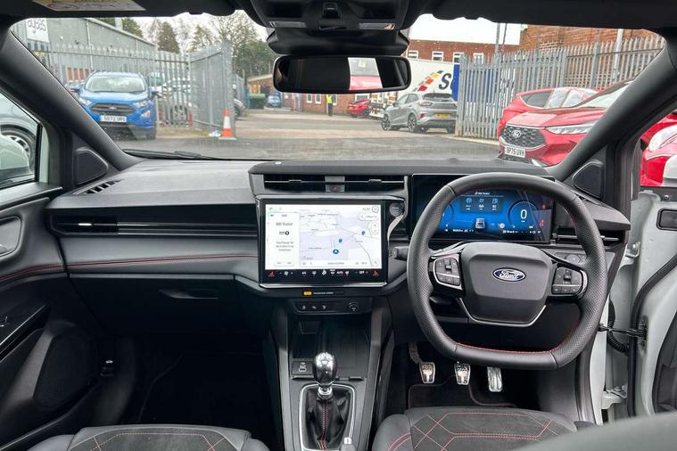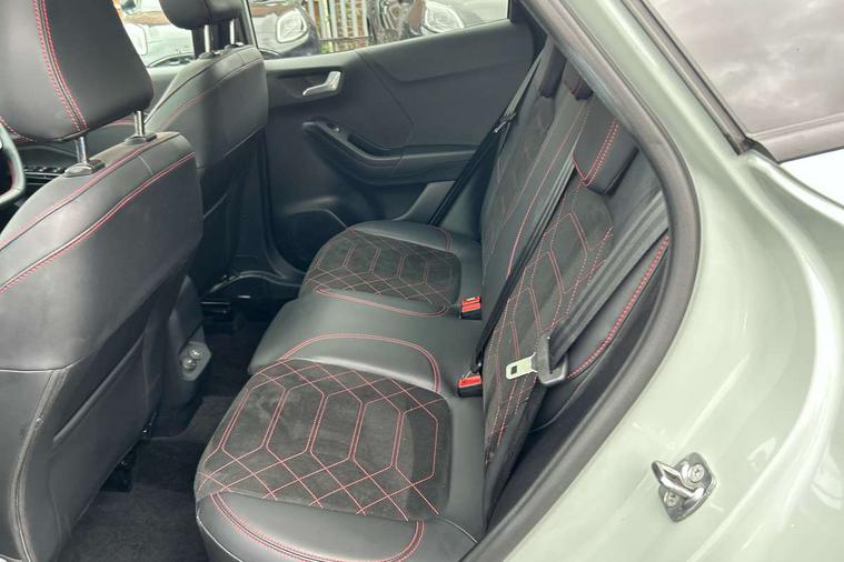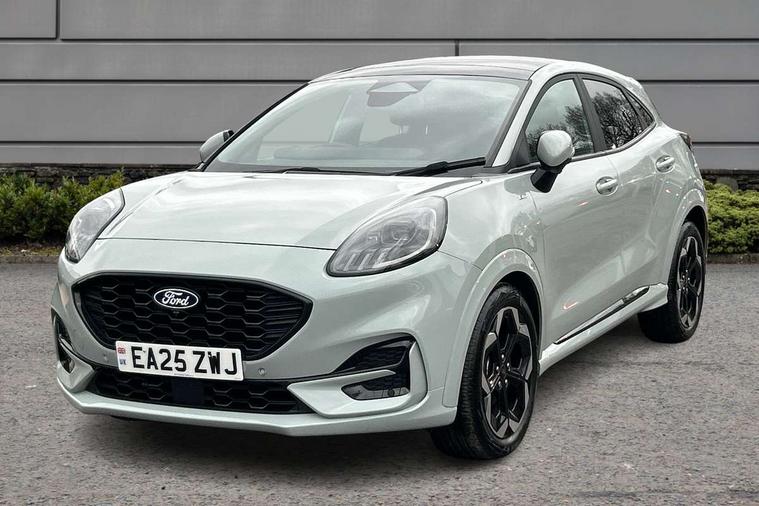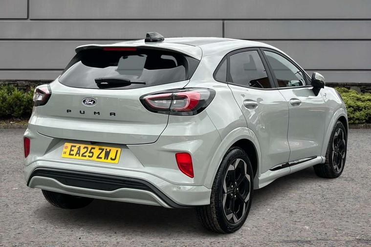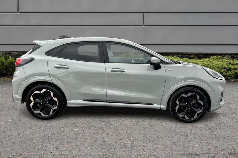 Driver impairment monitor, Emergency call service, Ford easy fuel, Full digital 12.8" instrument cluster, Lane keeping aid with lane departure warning, Power assist steering, Selectable drive modes(Normal, Eco, Sport, Slippery and Trail), Speed sign recognition, Wireless charging, Sport suspension, 12" landscape touchscreen display with wireless apple car play and android auto premium B&O audio system with 10 speakers, Ford pass connect and emergency assistance, Ford SYNC4 with connected navigation, Automatic headlights with rain sensing wipers and auto high beam, Front fog lamps, LED daytime running lights, LED rear lamps, LED third brake light, Power foldable heated door mirrors with puddle lamps and puma logo protection, Quickclear heated windscreen, Rear privacy glass, Rear side wing doors, Rear wiper, ST-Line X body styling kit, 3 seat bench in 2nd row, 4 way lumbar support for passenger seat, Centre console with armrest and stowage, Electronic automatic temperature control (EATC), Ford megabox extended bootspace, Front and rear head restraints, Front floor mats, Manual 4 way driver seat adjust with lumbar adjustment, Single front passenger seat, ST-Line X Premium synthetic leather upholstery, Comfort pack with power lift tailgate - Puma, 3 rear seatbelts, Child safety lock, Electronic stability control (ESC) and hill start assist, Pre-collision assist with autonomous emergency braking, pedestrian/cyclist detection & post-collision braking, Tyre pressure monitoring system (TPMS), Thatcham alarm,