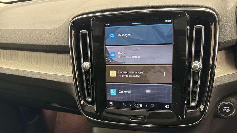 12.3" Progressive Driver Display, 360 degree surround view parking camera with side proximity sensors, 9" centre console portrait touch screen, Adjustable steering wheel force, Android auto (Wired), Apple carplay (wired), Bluetooth handsfree system, Driver alert control, Driver assistance (pilot assist and adaptive cruise control), Driver awareness - Blind spot information system with steer assist, cross traffic alert with autobrake and rear collision warning and mitigation, E-call, Front park assist, Google automotive services - Enabled entertainment apps, navigation with google maps, voice recognition with google assistant, Hands free power tailgate, Intelligent speed assistance, Lane keeping aid, Oncoming Lane Mitigation, Rear park assist, Speed sensitive steering, Volvo cars services with app - Driving journal, emergency and breakdown call, engine remote start, remote door locking/unlocking and vehicle dashboard, Wireless/Inductive Mobile Phone Charging, Automatic transmission with start/stop and manual change functions, Dynamic chassis, DAB Digital radio, Premium Sound by Harman Kardon, Dolby Pro Logic II Surround Sound, Dirac Unison, 12 speakers/600W and subwoofer, Steering wheel mounted remote controls, Active bending pixel LED headlights with adaptive shadow technology, Active high beam incorporating daytime running lights, Adaptive brake lights with high level LED brake lights, Auto dimming feature for exterior door mirrors, Auto dimming interior mirror, Automatic headlamp levelling, Dark tinted windows - rear side windows and rear screen, Front aluminium tread plates, Front and rear electric windows, Headlight cleaning system, High gloss black front and rear skid plate, High gloss black front bumper deco, High gloss black mesh front grille with high gloss black surround, High gloss black window trim, Home safe and approach lighting, Integrated roof rails in high gloss black, LED front fog lights with cornering function, Power glass tilt and slide panoramic sunroof with sun curtain, Puddle lights, Rain sensor with automatic windscreen wiper activation, Rear side wing doors, Rear wiper, Roof antenna, Roof spoiler, Visible VIN plate, 12V socket in front tunnel console and luggage compartment, 2-Zone electronic climate control with CleanZone air quality system and pollen filter, 3 seat bench in 2nd row, 3 Spoke tailored steering wheel with chrome trim, 60/40 versatile split folding rear seat, Centre console cupholders and storage, Flexible load floor and grocery bag holder, Floor mats, Front cabin courtesy lights, Front door pocket, front cupholder, ambient front door, rear reading, rear courtesy, instrument panel and tailgate lighting, Front footwell illumination, Front headrests, Front reading lights, Front seat cushion extensions, Front side step illumination (under door), Glovebox bag hook, Heated front seats, Height/reach adjustable steering column, High gloss centre tunnel deco, Illuminated glovebox, Illuminated luggage compartment, Illuminated vanity mirrors + ticket holder, Integrated waste bin, Isofix attachments on outer rear seats, Load cover, Load protection net, Multi directional lumbar support for driver and passenger seat, Power driver seat with memory + exterior mirrors memory, Power folding rear headrests, Power passenger seat, Rear armrest with cupholders, Single front passenger seat, Underfloor cargo storage, Climate pack without heated front seats - XC40, 3x3 point rear seatbelts, City safety with steering support with Pedestrian + cyclist + front collision warning with full auto brake and rear auto brake, Driver and passenger airbags, Drivers knee airbag, Electronic parking brake with auto hold, First aid kit, Front and outer rear seatbelt reminder and pretensioners, Front seats SIPS airbags, Hill descent control, Hill start assist, Inflatable curtain, Passenger airbag cut-off device, Power child locks on rear doors, Road sign information display, Run off Road Protection, SIPS (Side Impact Protection System), Slippery road and hazard light alert, Stability and Traction Control with Spin control, Engine Drag Control and Corner Traction Control, Tyre pressure monitoring system, Vehicle deceleration control with Anti-lock Brake System, Electronic Brake Distribution and Emergency Brake Assist, Warning triangle, WHIPS whiplash protection system - front, 2 x Key integrated remote control central locking including with deadlocking system and auto open/close windows and sunroof, Anti-theft alarm including immobiliser/volume sensor + level sensor, Keyless drive includes keyless entry and keyless start, Locking wheel nuts,