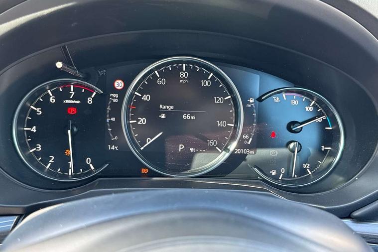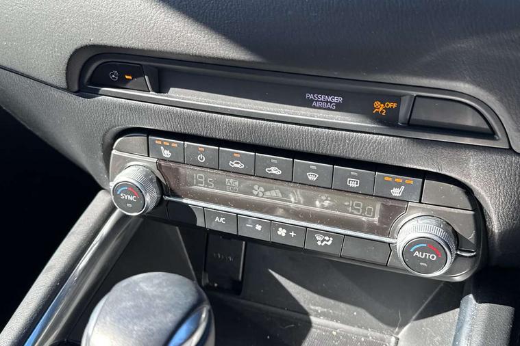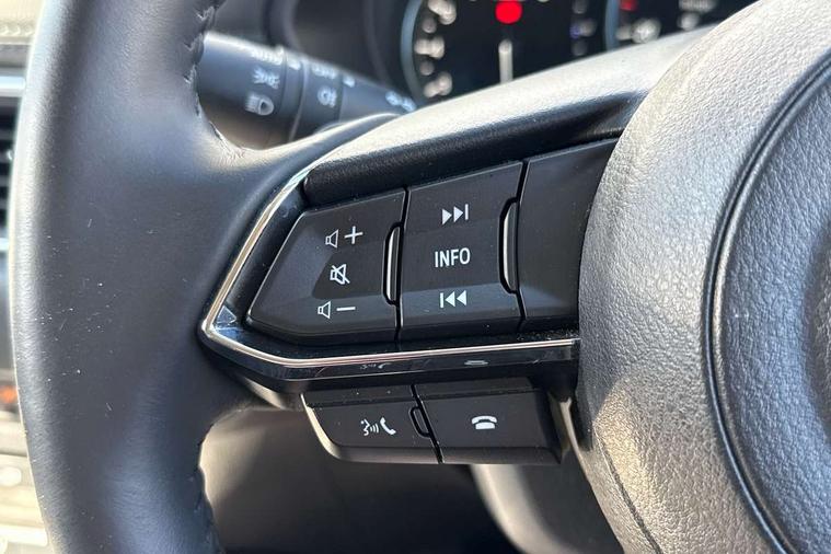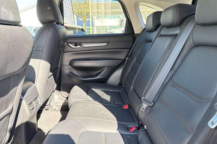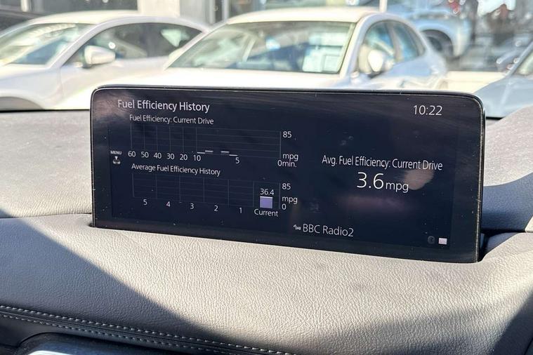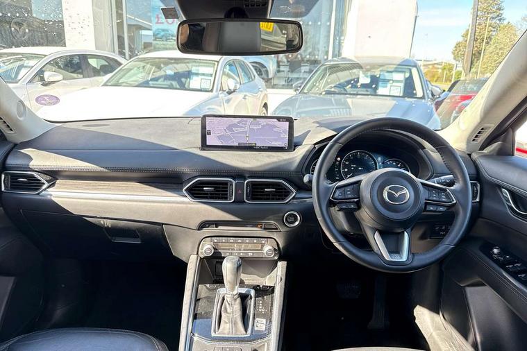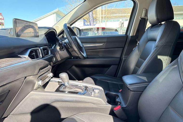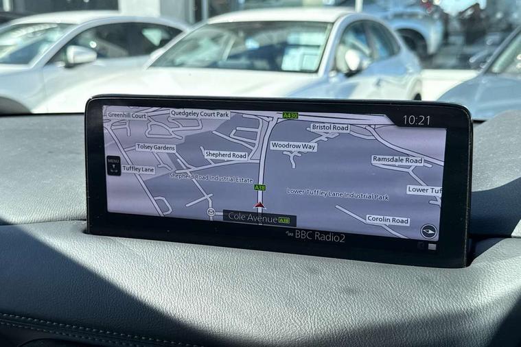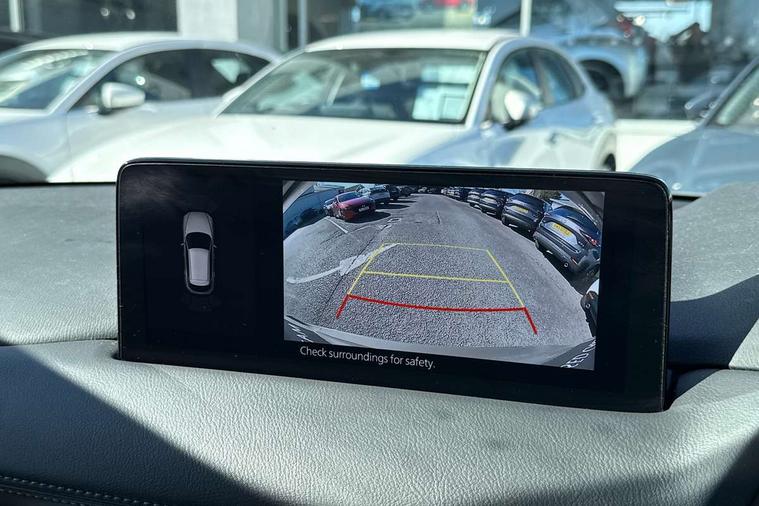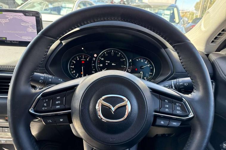 10.25" display with Mazda Connect infotainment, 7" colour TFT display, Advanced blind spot monitoring, Apple car play/Android Auto, Bluetooth connectivity with voice control, Collision prevention assist, Connected services, Cruising Traffic Support, Drive mode selector, Electric power steering, Emergency stop signalling system, Engine start/stop button, Forward collision warning, Front and rear parking sensors, Integrated navigation system, Intelligent speed assist, Lane departure warning system, Lane keep assist, Radar cruise control with Stop and Go, Reversing camera, Service indicator, Traffic sign recognition (TSR), Trip computer, Windscreen projected colour active driving display (HUD) with memory, i-stop, 2 USB sockets in rear, 2x USB sockets in front, 6 speakers, AM/FM radio, Bluetooth audio streaming, DAB Digital radio, Multimedia Commander including separate volume dial, Steering wheel mounted audio controls, Adaptive front lighting system, Auto dimming rear view mirror, Automatic headlights, Black inlay dashboard panel, Body colour door mirrors, Body colour roof spoiler, Body coloured front and rear black lower bumper mouldings, Bright finish signature wing, Coming/leaving home lighting function, Door mirror integrated indicators, Dual chrome tailpipes, Dusk sensitive headlamps, Electric front/rear windows with one touch auto up/down, Front grille in gloss black finish, Gloss black B and C pillars garnish, High beam assist, Intermittent rear wash/wipe, LED auto levelling, LED daytime running lights, LED front fog lights, LED Headlights, LED third brake light, Power folding and heated door mirrors, Power tilt/slide sunroof, Privacy glass (rear side windows only), Rain sensing front wipers, Rear side wing doors, Satin black side mouldings, Scuff plates, Shark fin antenna, Signature LED rear combination lights, Vinyl with wood grain metal inlay door trim panel, Windscreen wiper de-icer, 12v electrical power outlet, 3 seat bench in 2nd row, 3 stage heated front seats, 40:20:40 Karakuri fold-flat seat system, 6 way electric adjustable passenger seat, 8 way electric driver seat with lumbar support + memory, Cargo room flat floor board with waterproof undertray, Driver seat power slide, recline and height adjustment, Driver, Front passenger and two rear grab handles with coat hooks, Driver/passenger front seatback pockets, Driver/passenger sunvisors + illuminated vanity mirrors (drivers with ticket holder), Dual zone climate control, Folding centre armrest with 2 cup holders, Front and rear door pockets, Front centre storage with two cupholders, Front passenger seat power slide, recline and height adjustment, Heated steering wheel, Humidity sensor, Illuminated glovebox, Interior dome light with integral spotlight, ISOFIX child seat anchorage points attached on outer rear seats, Karakuri tonneau cover, Leather upholstery, Leather wrapped steering wheel and gear knob, Light roof lining, Luggage compartment LED lighting, Luggage compartment power outlet, Paddle shifts, Rear air vents, Rear headrests, Rear seat recline, Roof mounted sunglasses holder, Single front passenger seat, Three height adjustable head restraints, Tilt/height adjustable steering wheel, White interior LED illumination lighting, 3 point front seatbelts with pre-tensioners, 3 rear 3 point seatbelts, ABS, Advanced Smart City Brake Support - SCBS, Child locks on rear doors, Driver and front passenger side airbags, DSTC-Dynamic Stability and Traction Control, Dual front airbags, Electronic brake force distribution, Electronic parking brake with auto hold, ESP, Front and rear curtain airbags, Front passenger airbag deactivation, G-Vectoring control, Hill hold assist, Seatbelt reminder front and rear, Single stage passenger airbags, Smart brake support with forward obstruction warning, Tyre pressure monitoring system, Automatic door locking when moving off, Deadlock, Immobiliser, Power door locks, Remote central locking, Smart keyless entry, Thatcham Cat.1 alarm, 19" diamond cut black alloy wheels, Tyre repair kit,