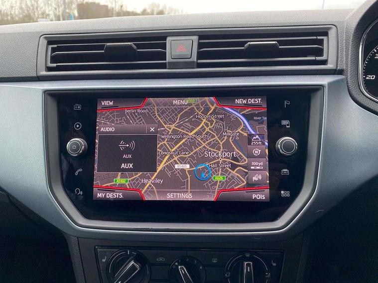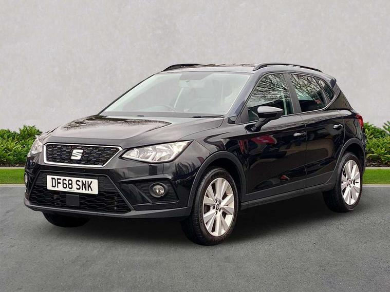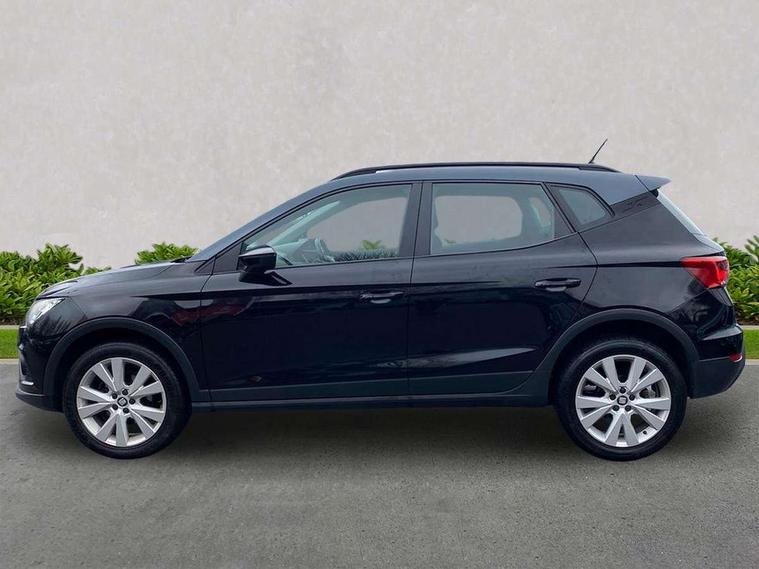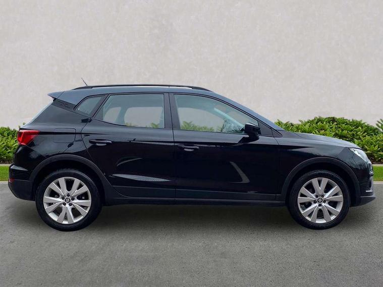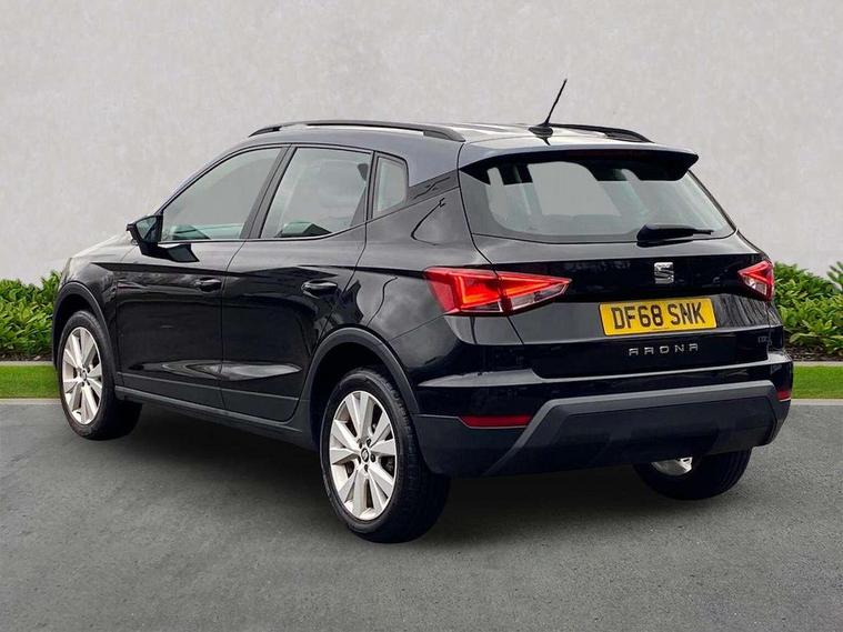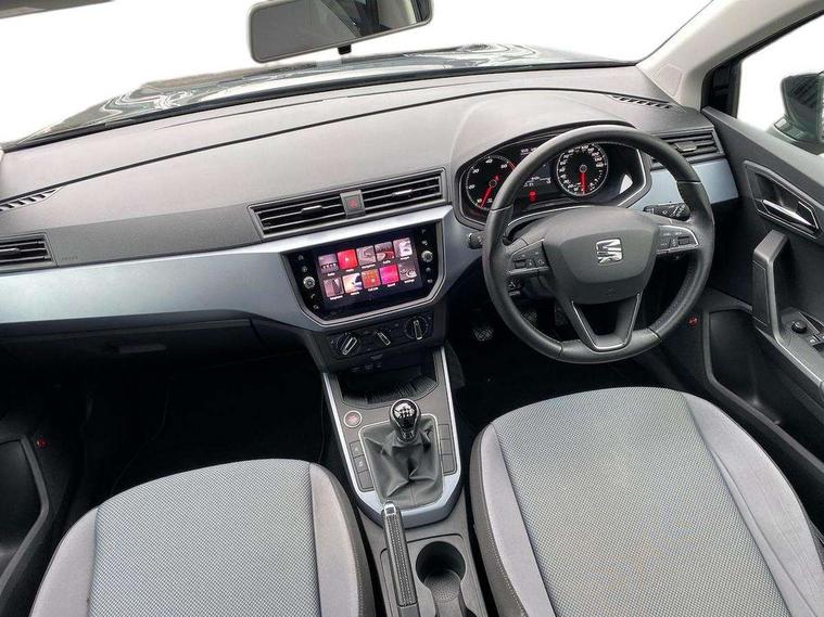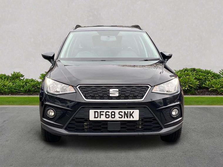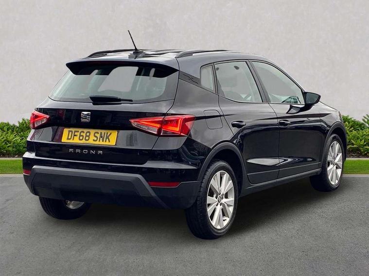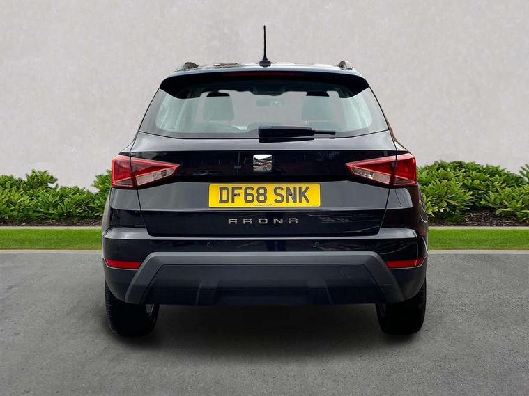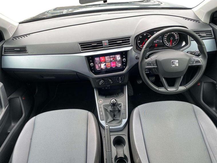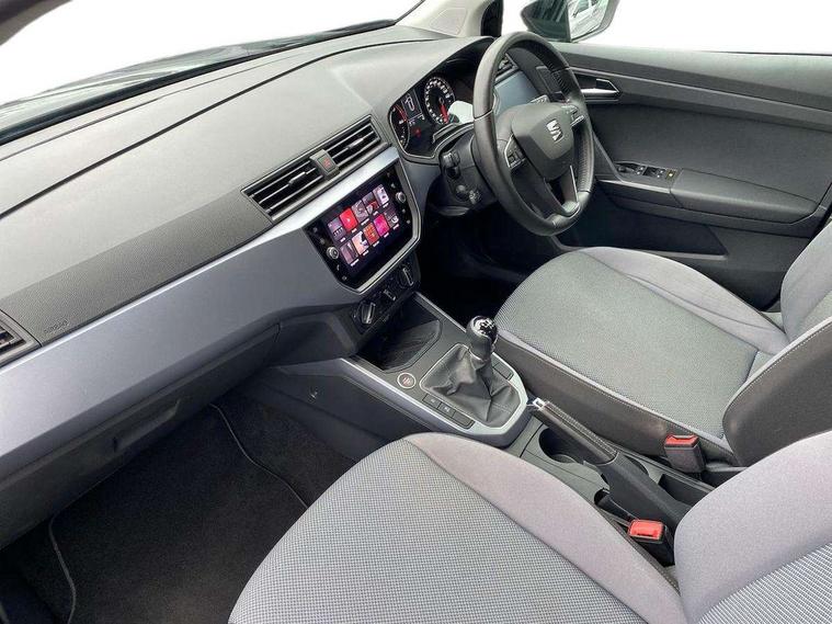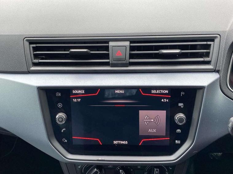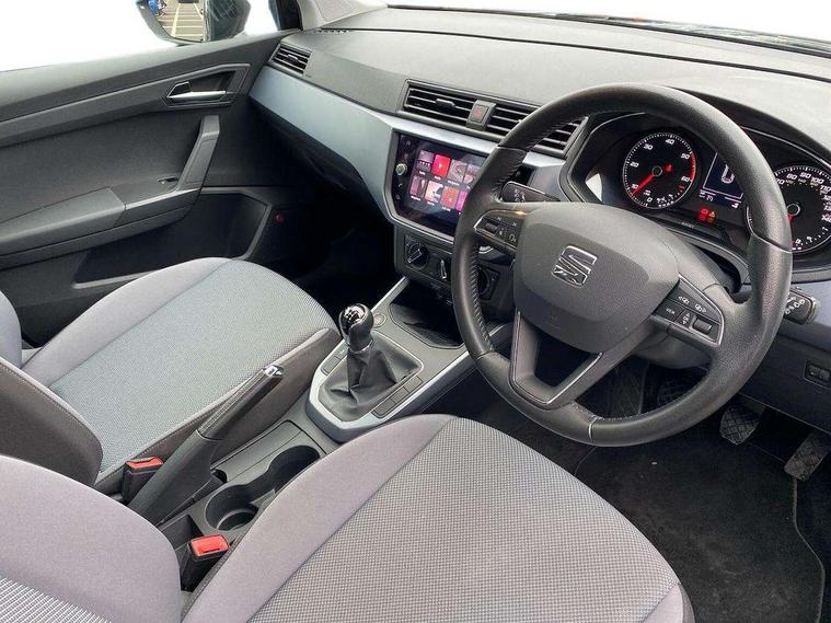 'Lights On' Reminder warning buzzer, Adaptive cruise control, Digital clock, Electric speed sensitive power steering, Front assistant collision mitigation, Full Link Smartphone Integration with Mirror Link, Apple Car Play, Google Android Auto, Low fuel warning light, Outside temperature display, Rear parking sensor, RPM counter, Trip computer, Comfort suspension, 6 speakers, Beats audio system, Bluetooth interface for hands free and audio streaming, DAB Digital radio, SEAT USB media cable, Steering wheel mounted audio controls, Anti theft roof antenna, Automatic activation of hazard warning lights, Automatic headlights, Black roof rails, Black window surrounds, Body coloured bumpers, Body coloured door handle inserts, Chrome grille surround, Electric adjustable door mirrors, Electric front/rear windows with one touch/auto up/down, Electric headlight adjustment, Front fog lights with static cornering function, Halogen headlights, Hidden exhaust pipe, LED daytime running lights, LED licence plate lighting, LED tail lights, Rear fog lights, Rear window wash/wipe, Visible VIN plate, Windshield wiper with intermittent control and potentiometer, 2 cupholders, 3 rear height adjustable headrests, 60/40 split folding rear seat, Active head restraints, Air conditioning, Ambient interior lighting, Card holder, Cloth upholstery, Double boot floor, Driver and passenger sunvisors, Driver/front passenger seat height adjustment, Dust/pollen filter, Footwell ambient lighting, Front courtesy lights, Front reading light, Gear shift indicator, Height/reach adjustable steering column, Illuminated boot, Instrument lighting with brightness control, Isofix attachments on outer rear seats, Leather handbrake, Leather steering wheel and gear knob, Connectivity pack plus - Arona, Winter pack - Arona, 3 point seatbelts on all rear seats, ABS+EBA, Child locks on rear doors, Driver/Front Passenger airbags, Electronic stability control, Front and rear seatbelt reminder, Front side/curtain airbags, Height adjustable active front headrests, Hill hold control + Tyre Pressure monitor, Multi-Collision braking, Passenger airbag deactivate switch, Tiredness recognition system, Traction control, 2 folding remote keys with window open/close function, Immobiliser, Keyless entry and start, Locking wheel bolts, Remote central locking + deadlocks, Interior chrome line trim, 17" Dynamic alloy wheels,