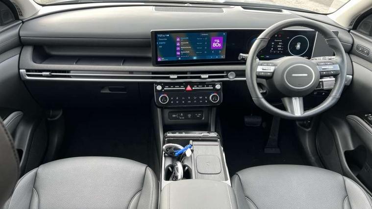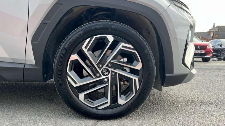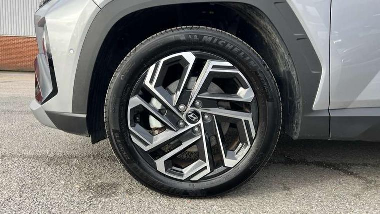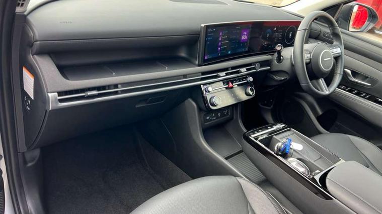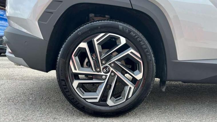 12.3" LCD display with driver's supervision instrument cluster, 12.3" widescreen navigation with bluelink and mapcare, Blind spot view monitor, Bluetooth system, Cruise control - smart adaptive speed control with stop and go function, Digital clock, Drive mode selector, Driver attention warning, E-call, Emergency stop signalling system, Forward Collision Avoidance Assist (FCA) - Car, Pedestrian and Cycle, Forward Collision Avoidance Assist Junction Turning (FCAJX), Front and rear parking sensors, Front, rear and side parking distance warning, Highway Driving Assist (HDA), Hyundai road side assistance, Intelligent speed limit assist, Lane follow assist, Lane keep assist, Over the air updates(OTA), Parking collision avoidance assist (PCA), PAS, Rear camera and guidance parking system, Rev counter, Smart power tailgate, Surround view monitor, Tailgate open warning light, Trip computer, Trip odometer, Voice recognition, Water temperature gauge, Windscreen washer fluid sensor and warning indicator, Wireless Apple CarPlay/Android Auto, Wireless phone charging pad, 2 front and 2 rear USB-C ports, DAB Digital radio, Krell premium audio system with 8 speakers and subwoofer, Steering wheel mounted audio/phone controls, Adjustable intermittent front windscreen wipers with aero wiper blade, Auto dimming rear view mirror, Automatic defog system, Automatic headlights with dusk sensor, Automatic windscreen wipers with rain sensor, Black wheel arches, Body colour bumpers, Body colour door mirrors with integrated indicators, Body colour exterior door handles, Electric tilt/slide panoramic sunroof, Electrically adjustable, heated and power folding door mirrors, Follow me home headlights, Front and rear electric windows with anti-trap mechanism and one touch control, Front fog lights, LED 3rd brake light, LED daytime running lights, LED rear lights, Matrix LED headlights, Positioning Lights - LED, Privacy glass - Rear windows and tailgate, Rear side wing doors, Rear wash/wipe with intermittent wipe setting, Roof rails, Tinted glass with windscreen shade band, Trailer stability assist, 12V power outlets in front console and luggage compartment, 3 seat bench in 2nd row, 40/20/40 split folding rear seat, 64 colours interior ambient lighting, Adjustable head restraints (Up and down), Cupholders in rear armrest, Door courtesy lights, Driver and passenger sunvisors with illuminated LED vanity mirrors, Driver's seat electric adjustments, Driver's seat memory, Front and rear door pockets, Front armrest with storage box, Front centre console and door bottle holders, Front passenger's seat electric adjustments, Heated front seats, Heated rear seats, Heated steering wheel, Height/reach adjustable steering column, Illuminated/air conditioned glove compartment, ISOFIX child seat anchorage points attached on outer rear seats, Leather upholstery, Leather wrapped steering wheel and gear knob, Luggage compartment lighting, Luggage cover, Luggage hooks, Luggage net, Map and reading lights, Rear seat remote folding function, Rear side window sunblind, Reclining rear seats, Retractable load cover, Single front passenger seat, Sunglasses holder, Three zone climate control, Touch sensitive climate controls with temperature dials, TUCSON branded metal door scuff plate, Underfloor boot compartment, Ventilated front seats, Trailer wiring package - Tucson, 3x3 point rear seatbelts, Active bonnet, Airbag - Front, front side, curtain and centre front airbags, Anti-lock brake system (ABS), Brake assist function, Childproof rear door locks, Curtain airbag roll over sensor, Downhill brake control, Electric parking brake, Electronic stability control, Front and rear seatbelt reminder, Front passenger airbag deactivation switch, Front seatbelt pretensioners, Hill start assist control (HAC), Multi-Collision braking, Outer rear seatbelt height adjustment, Seatbelt height adjustment for front seats, Traction control, Tyre pressure monitoring system with individual tyre pressure display - TPMS, Vehicle stability management, Deadlocks, Immobiliser, Locking wheel nuts, Remote control central locking, Smart key with keyless entry and engine start/stop button, Speed sensitive auto door locking, Thatcham category 1 alarm, 19" Alloy wheels, Tyre repair kit,