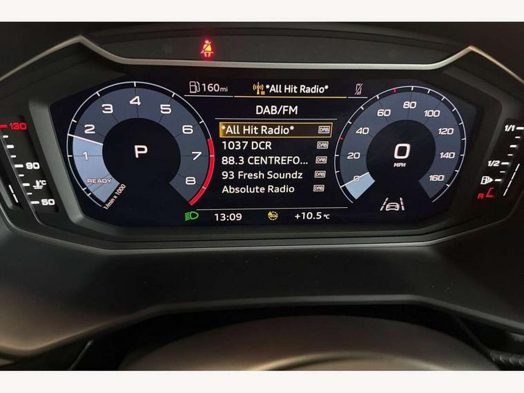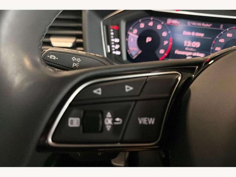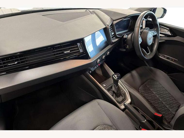 10.25" Digital instrument cluster display classis style instrument dials + speed, odometer, time, outside temperature, telephone menu + fuel level warning, Audi smartphone interface with connect compatible smartphone via USB directly MMI display + Nav, music, third party apps controlled via MMI controller, Automatic start/stop system, Bluetooth interface, Cruise control, Driver's information system, Electromechanical power steering, Emergency e-call, Lane departure warning system, Rear parking sensor, Service interval indicator, Speed limiter, Voice control system, Washer fluid level indicator, Dynamic suspension, 2 x USB type C connection points, 6 passive loudspeakers, DAB Digital radio, MMI radio plus with 10.1" colour MMI display screen and MMI touch, Auto dimming rear view mirror, Body coloured bumpers, Body coloured door mirrors, Electric front and rear windows, Electrically adjustable, heated, folding door mirrors with integrated LED side indicator, Front side air inlets in grained matt black and C frame in anthracite black, Heat insulating glass windscreen and side windows, Heated rear windscreen, High level LED brake light, LED headlights with LED rear lights + dynamic rear indicators + headlight adjustment and high beam, turning light + LED daytime running lights, Radiator grille and rear diffuser in matt anthracite black, Radiator protective grille frame in matt aluminium silver, Rain and light sensors, Rear fog lights, Rear side wing doors, Rear wiper, Side front spoiler lips in grained matt black, 12V socket in centre console with two cup holders, 3 rear seats with headrests, 3 seat bench in 2nd row, 3 spoke leather multifunction plus steering wheel, 40:60 Split folding rear seat or folded fully, Black front and rear floor mats, Door sill trims with aluminium inlay, Driver and passenger seat with manual height adjust with forward and backwards adjustment, Front head restraints, Front passenger seat, Grey cloth headlining, Height and reach adjustable steering wheel, ISOFIX child seat mounting for front passenger and outer rear seats including top tether attachment point of outer rear seats, Leather gear knob with aluminium trim, Leather handbrake grip, Luggage compartment light with front and rear reading lights, Manual air conditioning, Manually adjustable lumbar support in front seats, Novum cloth upholstery with front sport seats, Luggage compartment pack - A1, 3x3 point rear seatbelts, Audi pre-sense front with pedestrain and cyclist recognition, Brake assist function, Driver and front passenger airbag with front side and head airbags, Electronic Stability Control including ABS, EBD, ASR and EDL, Front passenger airbag deactivation switch, Hill hold assist, Manual rear child locks, Seatbelt height adjustment for front seats, Seatbelt monitoring, Tyre pressure warning light, Warning triangle and first aid kit, Anti theft alarm, Anti theft wheel bolts and loose wheel warning, Immobiliser, Remote central locking with 2 foldaway keys, Aluminium trim for control switches, air vents and digital instrument cluster, Black dashboard, Silver grey accent areas including air vents, door handle recesses and centre console in diamond paint finish, Slate grey inlays polygon structure in fine paint finish,