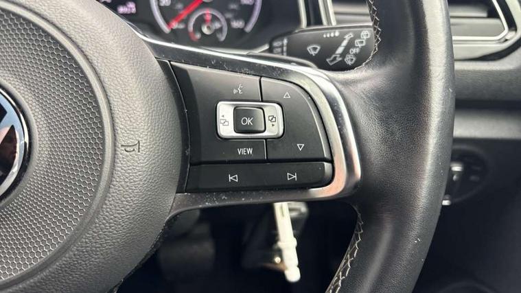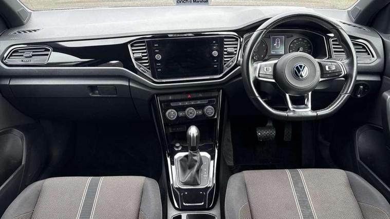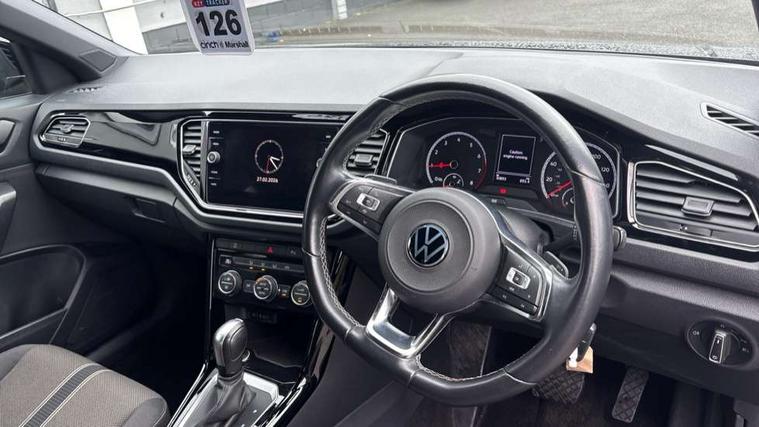 'Lights On' Reminder warning buzzer, Adaptive cruise control, Bluetooth telephone and audio connection for compatible devices, Car information display, Driver tips and journey analysis, Emergency call service, Lane assist with warning text instrument cluster, Modified key software - reduce switch off time for key status change to Long no motion, Multifunction camera, Multifunction computer with visual gear change recommendation for fuel consumption, Service interval indicator, Think blue trainer driver tips and journey analysis, Warning sound and light for doors and tailgate open, Warning sound and light for front seatbelts unfastened, Wireless app connect for apple carPlay, Battery regeneration during braking, Start/stop function with battery regeneration, DAB Digital radio, Diversity antenna for FM reception, Multi device interface (MDI) with USB connection, Music playback - MP3, WMA and AAC files, Premium USB cable in choice of either Apple or Android smartphone compatibility, SD card slot, Simultaneous pairing of 2 compatible mobile devices, Single CD player, glovebox mounted, SMS functionality - read, compose and send SMS messages using touch-screen display, Storage compartment with longitudinal and height adjustable in armrest and two rear air vents, Title and cover art display, USB-C Interface and USB charging socket, Auto dimming interior rear view mirror, Automatic coming/leaving home lighting function and daytime running lights, Automatic hazard lights activation under emergency braking, Black grained lower door protectors, Black grained wheel arches, Black roof rails, Body colour door handles, Body colour sports bumpers with silver metallic underbody fascia, Body coloured bumpers and radiator grille with chrome trim and front fog lamps with chrome bezel, Chrome trim on upper and lower radiator grille, Dusk sensor, Electrically foldable, adjustable and heated door mirrors with puddle lights and reverse activated kerb-view adjustment on passenger's door mirror, Exhaust tailpipes in black, External USB type C socket and charging sockets, Front and rear electric windows, Front windscreen wiper with intermittent wipe and 4 position delay, Fully galvanised body, Heated rear window, High level 3rd brake light, LED headlamps with automatic range adjustment and unique signature LED separate daytime running lights, LED rear number plate lights, LED tail lamp rear comination lamps, Privacy glass, Rain sensor, Rear tinted glass from B-pillar backwards approx 65% tinted, Rear wash/wipe with intermittent wipe setting, Trim strips on grille and vehicle side, Volkswagen roundel, 12V socket in centre console storage area, 3 rear head restraints, 4 load lashing points in luggage compartment, Black roof lining, Climate control - 2 zone electronic air conditioning with automatic air recirculation and allergy filter, Door and side trim panel, Drawer under drivers seat, Front centre armrest, Front cupholders x 2, Front seat back storage pockets, Glovebox, Height adjustable front seats, Height/reach adjust steering wheel, Instrument lighting, white adjustable panel illumination, Interior light in footwell, Isofix easy fit child seat preparation for 2 outer rear seats, Leather gearshift knob, Leather multi function sport steering wheel with gear change selection via paddle shift on steering wheel, LED interior light with switch off delay/dimmer and 2 front/rear LED reading lights, Load through provision with single cup holder when folded down, Luggage compartment cover, removable, Luggage compartment lighting, Split folding rear seat backrests with centre armrest, Storage compartment in left and right luggage area, Storage compartment in rear doors, Storage compartments in driver and front passenger doors, Sunvisors with illuminated vanity mirrors, White ambient lighting, Black decal on C-pillar pack - T-Roc, 3 rear three point seatbelts, ABS, Curtain airbags, Driver and front passenger safety-optimised head restraints, Drivers and front passengers airbags with passengers deactivation switch, Drivers seatbelt reminder, Electronic parking brake with auto hold, Electronic stability control (ESC) includes ASR, EDL, EDTC and trailer stabilisation function, Front assist with city emergency braking and pedestrian monitoring, Front seat side impact airbags, Predictive pedestrian protection, Rigid safety cell with front and rear crumple zones, Single tone horn, Three point height adjust front seatbelts + pretensioners, Tyre pressure loss indicator, Ventilated front and rear disc brakes, Volkswagen roadside assistance, Alarm with remote central locking and interior protection, Electronic engine immobiliser, Remote central locking with SAFELOCK, radio remote control with 2 remote control folding keys, Black decorative trims, Piano black decorative inserts in dash, centre console and door panel, 18" Arlo black diamond turned surface alloy wheels with low rolling resistance tyres and anti theft wheel bolts,