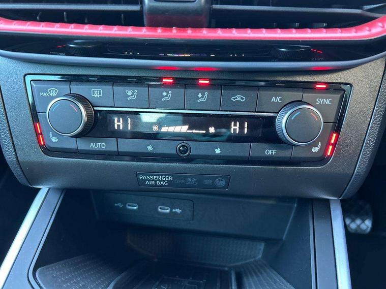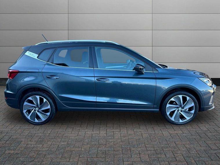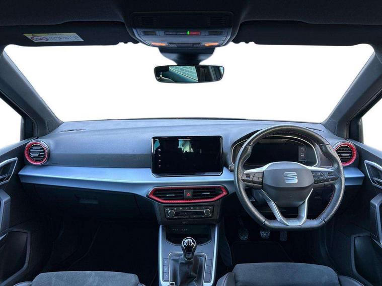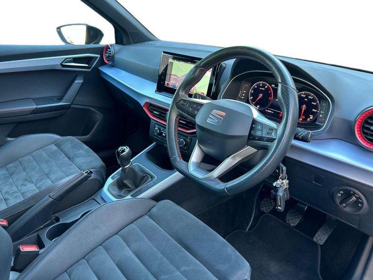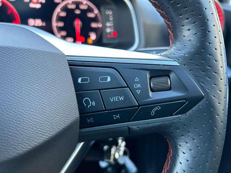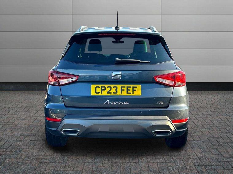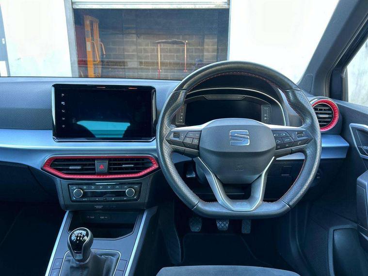 'Lights On' Reminder warning buzzer, 10" Digital cockpit, Digital clock, E-call, Electric speed sensitive power steering, Full Link Smartphone Integration with Mirror Link, Apple Car Play, Google Android Auto with USB Type C cable for Apple and Android compatibility, Low fuel warning light, Outside temperature display, Rear parking sensor, RPM counter, Seat connect with safety, service, remote and online, SEAT Drive profile - Four different models normal-sport-eco-individual, steering response, throttle response, Trip computer, Wireless phone charger, 9.2" colour touchscreen with navigation system, voice control and USB port (type c), Bluetooth interface for hands free and audio streaming, DAB digital radio and AM/FM radio, Steering wheel mounted audio controls, Anti theft roof antenna, Auto dimming interior rear view mirror, Automatic activation of hazard warning lights, Body coloured bumpers, Body coloured door handle inserts, Chrome roof rails and window surrounds, Dark tinted rear windows, Electric front/rear windows, Electrically adjustable, heated and folding door mirrors, Front fog lights with cornering function and rear fog light, FULL LED automatic headlights with dynamic headlight range control, coming and leaving home, LED daytime running lights, LED rear tail lights and licence plate lights, Protective side mouldings, Rain sensing wipers, Rear side wing doors, Rear spoiler, Rear window wash/wipe, Roof colour door mirrors, Third brake light, Twin exhaust pipe styling hidden exhaust pipe, Visible VIN plate, Windshield wiper with intermittent control and potentiometer, 2 cupholders, 3 seat bench in 2nd row, 60/40 split folding rear seat, Aircare filter, Black interior roof, Double boot floor, Driver sunvisor with covered mirror + card holder, Dual zone climate control, Front comfort seats, Front courtesy light with front reading lights, Front seat back storage pockets, Gear shift indicator, Heated front seats, Height adjustable front seats, Height/reach adjustable steering column, Illuminated boot, Instrument lighting with brightness control, Interior ambient lighting, Interior light in footwell, central console and door panel, ISOFIX points in outer rear seats with top tether anchorage points, Microsuede cloth upholstery, Passenger sunvisor with vanity mirror, Perforated flat bottomed leather steering wheel/gear knob/handbrake with red stitching and FR logo, Single front passenger seat, Two front and three rear height adjustable headrests, Interior chrome pack - Arona, 3 point seatbelts on all rear seats, ABS, Active front headrests, Child locks on rear doors, Driver and front passenger airbags with front passenger airbag de activation, front side and curtain airbags, Electronic stability control, Emergency Brake Assist (EBA) and front assist, Front and rear seatbelt reminder, Hill hold control, Multi-Collision braking, Tiredness recognition system, Traction control, Tyre pressure monitoring system, Alarm with back-up horn, Electronic engine immobiliser, Locking wheel bolts, Remote central locking + deadlocks, Tow away protection, Titan black dashboard, 18" Performance Cosmo grey matt alloy wheels,