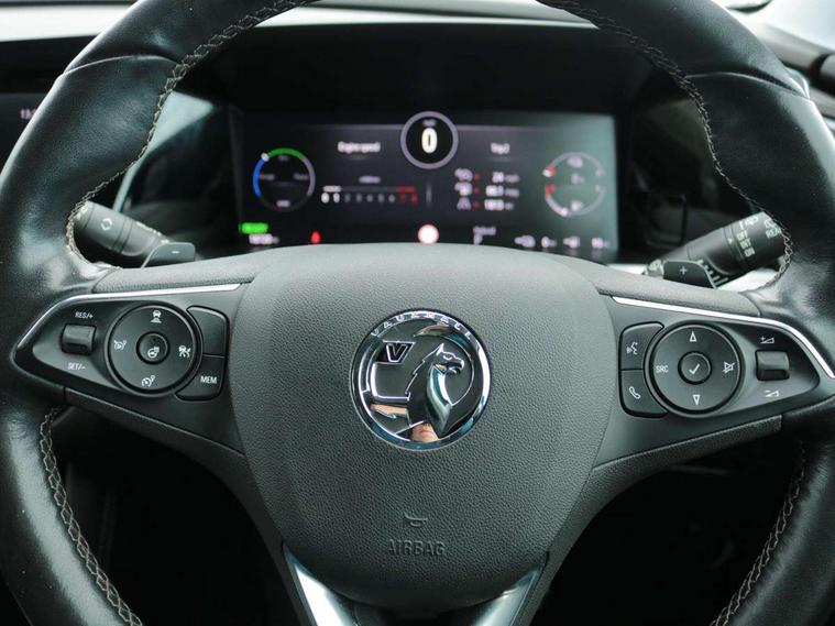 12" colour digital PHEV cluster, Central facia display with digital clock, outside air temperature and audio information, Digital fuel gauge with low fuel level warning light, Digital rev counter, Digital speedometer, Digital water temperature gauge with warning light, Driver drowsiness alert system, Driver information - Total mileage, service indicator, oil life, EV information display with powerflow, charge, e-save and statistics, Front and rear parking distance sensors with 180 degree rear view camera and advanced park assist, Gearshift up/down indication light, Highway integration assist (Lane positioning assistant and Adaptive cruise control), Lane departure warning system, Lane keep assist, Lights on audible warning, Multi function trip computer - Trip odometer, vehicle range, average speed and fuel economy, instantaneous fuel economy and driving time, Multimedia navi pro with 10" colour touch+ sat nav+AM/FM/DAB radio, bluetooth audio streaming/mobile phone portal, Apple carplay/Android auto, USB, Power operated tailgate with foot sensor, Side blind spot alert, Speed sensitive electric power assisted steering, Speed sign recognition, Vauxhall connect including Ecall and connected services, Wireless charger for mobile devices, Six speaker - four front + two rear, Steering wheel mounted audio/phone/cruise controls, Alloy effect front and rear skid plates, Automatic lighting control, Automatically dimming anti dazzle rear view mirror, Black door mirrors, Body colour door handles, Bodycolor door claddings, Chrome side window trim, Collapsible windscreen wipers, Dark tinted rear side and tailgate windows, Door mirrors with auto dipping function in reverse gear, Door to door illumination, Electrically adjustable and heated power door mirrors (wide-angle on drivers side) with automatic timed cut-off, Electrically operated front and rear windows with safety auto reverse and one touch up/down facility, Front bumper, Rear bumper and wheel arches in Bodycolor, GRANDLAND Carline name badge in silver, Hazard warning lights, Heated rear screen with timed cut off, High beam assist, High gloss black roof rails, High level centre rear brake light, Intermittent rear window wash/wipe, LED daytime running lights, LED front fog lights, LED Pixel Matrix AFL headlights, LED Spot light, LED tail lights, Manual headlight beam levelling, PHEV badges on side doors, Rain sensor windscreen wipers, Rear side wing doors, Rear spoiler, Reversing light, Shark fin aerial, Side protection mouldings, Side window demist vents, Skidplate front & rear - Silver, High Gloss black or polished black C shapes Inserts, Soundproof insulated windscreen, Standard door sill cover, Tinted windows, Upper and lower bumper design, Vauxhall brand griffin badge in front and rear in silver, Vizor front grille, Welcome lighting, Windscreen demist vents, 12v plug front console & 12v Plug in boot & 230v plug in second row, 3 individual rear seats, 3 spoke flat bottom leather steering wheel with satin chrome effect bezel, 4 way electric driver lumbar support, 4 way electrically adjustable driver seats with height, reach, tilt and backrest, 4 way passenger electric lumbar support, 60/40 split folding rear seat with centre rear seat armrest and load though facility, Advanced predictive logic control system using a sun sensor, Ambient centre console downlighter, Anti submarining ramps in front seats, Automatic air direction and fan speed with manual override, Black premium leather-effect side bolsters, Charcoal filter, Chrome effect interior door handles, Cosmo 1 Harlekin curitiba seats, Covered storage compartment in centre console and in driver armrest, Driver ergonomic active front seat, Driver's centre armrest, Dual zone electronic climate control, Electrical thermal preconditioner, Four adjustable facia vents, Front door pockets with 2.6 litre capacity, Front passenger seat, Front passenger seat cushion extension, Front passenger sport style seat, Front seat back storage pockets, Grey headliner, Heated front seats, Heated steering wheel, Height adjustable headrests, Illuminated controls, Illuminated driver/front passenger sunvisors, Illuminated luggage area + Ambient lighting in front doors, Interior courtesy light operated by door switches, Isofix system on outer rear seats, Luggage compartment cover, Passengers ergonomic active seat, Reach + rake adjustable steering column, Rear centre seat head restraint, Rear door pockets with 1.8 litre capacity, Rear passenger compartment heating ducts, Rear reading lights, Two drinks holders in centre console, Ventilated glovebox with lid, 6 Airbags - Driver and passengers front airbag, two front side impact airbag, full size curtain airbags for driver, Anti-lock braking system (ABS), Automatic emergency braking system, Child proof locks on rear doors, CSC - Cornering stability control, Deactivation switch for front passenger front and side impact airbags, Deflation detection system, Deformation zones front and rear, Dual seatbelt pretensioners on front seats, EBD - Electronic brakeforce distribution, Electronic parking brake, Electronic stability program (ESP) including traction control, Energy absorbing steering column, Engine drag torque control, Forward collision alert, Hill start assist, Hydraulic Brake Assist (HBA), Inertia reel lap and diagonal seatbelts for all seats, Load limiters on outer rear seatbelt retractors, Rear restraint seat belt pretensioner, Reinforced passenger safety cell, Side impact protection beam, Smart seatbelt reminder for front and rear seats, Tyre pressure monitoring system, 2 PEPS key - Front/rear/trunk, Deadlocking system, Electronically protected audio equipment, Engine deadlock immobiliser, Freewheeling door locks, Key left in ignition audible warning, Keyless entry and start, Locking wheel nuts, One rigid one flap-key coloured, Remote control central locking activation switch on driver door, Remote security alarm system, Self powered alarm horn, Single horn, Theft