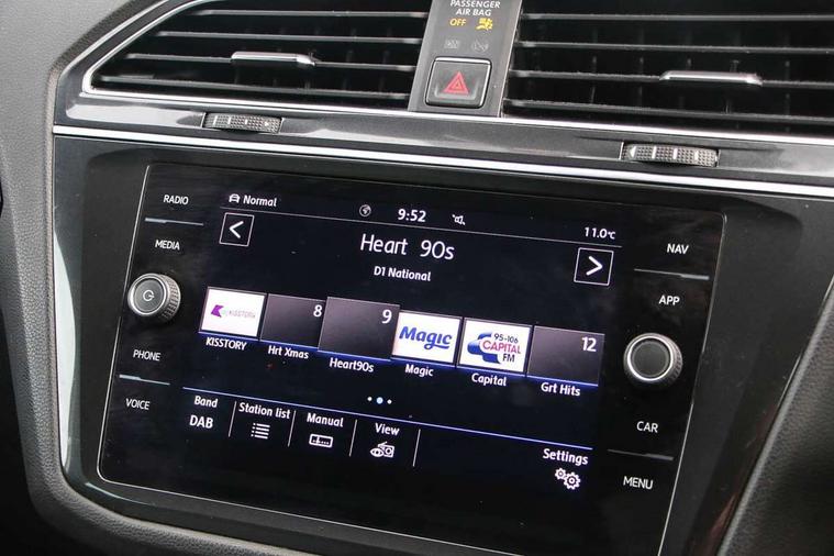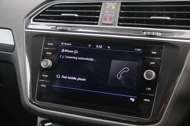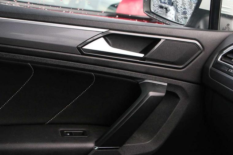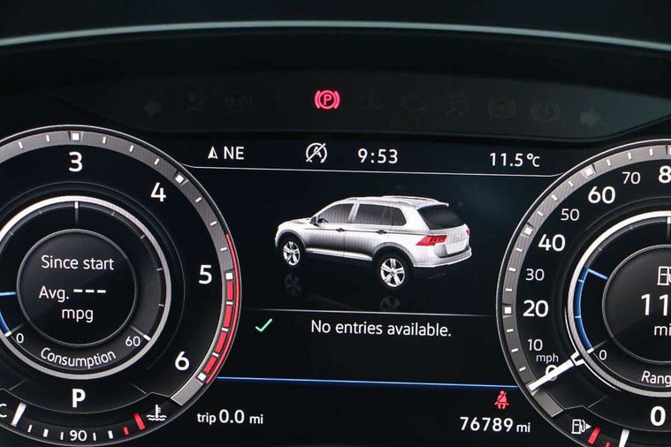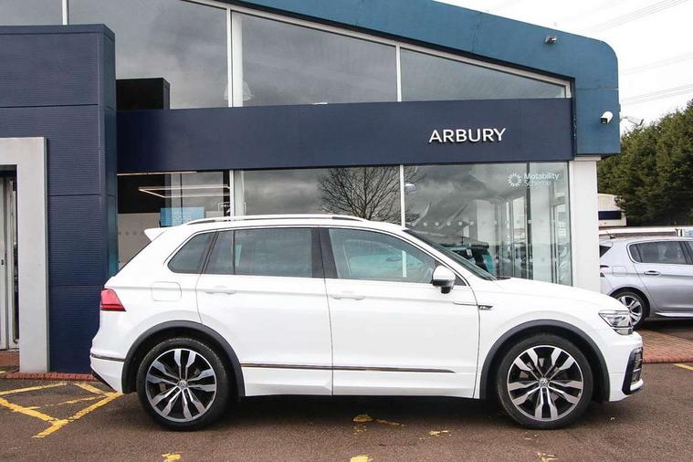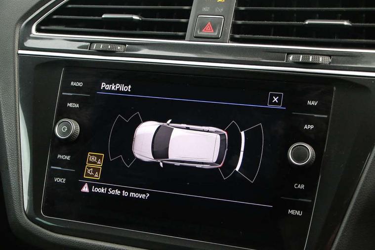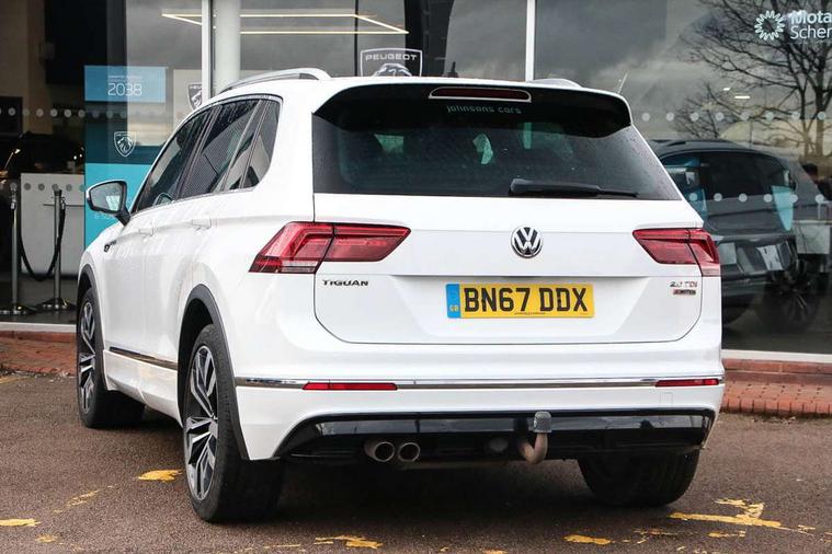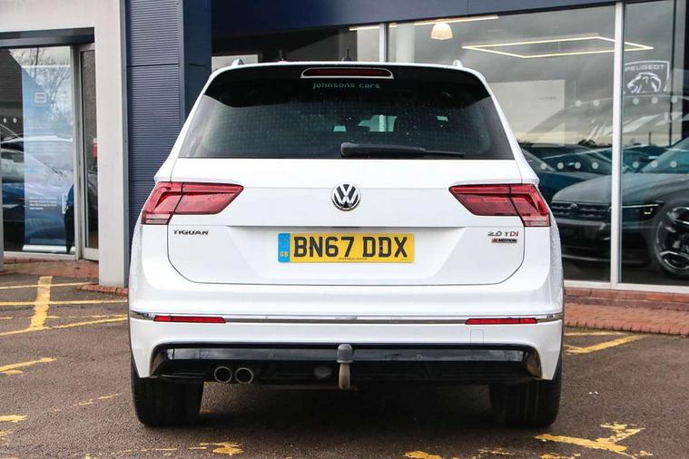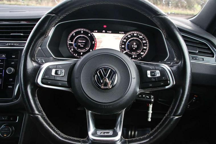 Active information display, Adaptive cruise control, App-Connect, Bluetooth phone integration system, Instrument cluster, Lane assist, Low washer fluid warning light, Outside temperature display, Service interval indicator, Speed limiter, Warning lights, Diesel particulate filter, Sports suspension, XDS electronic differential lock, Aux-in socket, DAB Digital radio, SD card slot, USB connection, Auto dimming interior mirror, Automatic activation of hazard warning lights, Black roof rails, Body colour door handles, Body colour door mirrors, Body colour rear spoiler, Body coloured bumpers, Chrome side window surrounds, Chrome trimmed radiator grille, Coming/leaving home lighting function, Dual chrome exhaust, Dusk sensor + auto driving lights, Electric folding door mirrors, Electric heated + adjustable door mirrors, Electric panoramic sunroof with sunblind, Front and rear electric windows, Heated rear window, LED headlights with dynamic light assist daytime running lights and cornering front fog lights, LED rear lights, Piano black rear diffuser, R Line body kit, Rain sensor windscreen wipers, Rear windscreen washer and wiper with interval delay, Silver under body guard, Tinted windows (B pillar backwards), Twin trapezoid chrome exhaust pipes, 12V Accessory socket in centre console, 3 rear headrests, 3 zone climate control, 4 load lashing points, 40:20:40 split folding rear seats, Bag hook in luggage compartment, Black headlining, Driver + front passenger lumbar support, Foldable passenger seatback, Front + rear carpet mats, Front centre armrest with 12v socket, Front centre armrest with storage + rear 2 air vents + cupholders, Front seatback folding tables, Height/reach adjust steering wheel, Illuminated driver/passenger vanity mirrors, Illuminated scuff plates, Interior light with delay, Isofix Preparation 2 Rear child seats, Leather gear knob, Lockable cooled glovebox, Luggage compartment lighting, Luggage compartment side storage, Map pockets on front seats, Passenger seat height adjuster, Rear cupholders, Removable luggage cover, Sliding/reclining rear seats, Stainless steel pedals, Storage compartment in driver's door, Storage compartment in passenger's door, Storage tray on dashboard, Sunglasses storage, Variable boot floor, Ambient lighting pack - Tiguan, 3 rear 3 point seatbelts, ABS+EBD+Brake assist, Active bonnet, Active pedestrian safety system, Curtain airbags, Driver/Front Passenger airbags, Driver/Passenger whiplash optimised head restraints, Drivers knee airbag, Electronic parking brake with auto hold, ESP with EDL + ASR, First aid kit, Front assist including city emergency braking, Front side airbags, Head airbag system, Height adjustable front 3 point seatbelts + pretensioners, Hill hold control, Passenger airbag deactivate switch, Passenger knee airbag, Pre crash system, Rear side airbags, Seatbelt warning lamp and buzzer, Two tone horn, Warning triangle, Alarm with interior protection, Electronic engine immobiliser, Remote central locking with 2 remote folding keys, Chrome door trim inserts, Piano black interior trim, 20" Suzuka alloy wheels + anti theft wheel bolts, Steel space saver spare wheel,