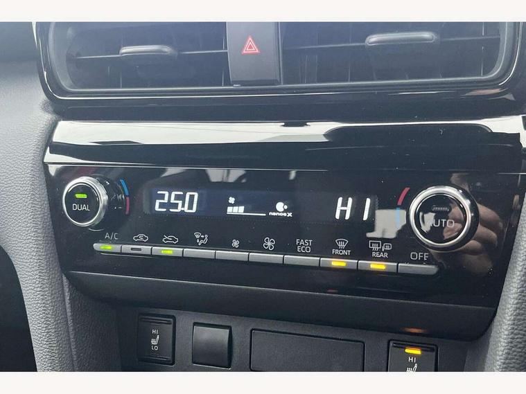 10.5" Multimedia display screen, 10.5" Toyota smart connect+ with navi multimedia system with wireless Smartphone integration incl Apple CarPlay, 12.3" Multi information display screen, Adaptive cruise control, multi info switches on steering wheel, Adjustable speed limiter, Bluetooth connectivity, Color multi-information display, Digital speedometer, Digital tachometer, Drive mode selector, Driver attention alert system, eCall emergency system, Electric power steering, Emergency driving stop system, Full range intelligent adaptive cruise control, Hybrid system indicator, Intersection turn assist, Key reminder warning, Lane trace assist, My T Connected services, Pre-collision system enhanced with emergency steering assist, Reversing camera, Road sign assist - RSA, Static guide lines on reversing camera, Tailgate, Telephone switch on steering wheel, Wireless Mobile Phone Charger, Steering assisted vehicle stability control, 6 speakers, DAB Digital radio, Front USB Type-C connector, Front USB-C device charger, Acoustic windscreen glass, Anti-jam protection on power windows, Auto dimming rear view mirror, Auto high beam [AHB] with on/off switch, Auto intermittent windscreen wipers, Automatic headlights, Automatic headlights cut-off, Automatically retractable door mirrors, Black door moulding, Black lower front grille, Black protection moulding on side doors, Black rear bumper with diffuser, Black rear under run, Black roof rails, Black wheel arch mouldings, Body colour door handles, Body colour front bumper, Electric adjustable heated door mirrors, Follow me home headlights, Front and rear electric windows with auto up/down function, Gloss black upper front grille, GR Sport meshed lower front grille, GR Sport meshed upper front grille, GR sport scuff plates, Headlight cut off reminder, Indicators integrated on door mirrors, Intermittent rear wiper, LED 3rd brake light, LED daytime running lights guide, LED front fog lights, LED front light guide, LED Indicators, LED projector headlights, LED rear lights with sequential indicators, Manual headlight levelling, Noise reduction layer on windscreen, Pre wiring for towing hook, Privacy glass, Rain sensor, Rear roof spoiler, Rear side wing doors, Rear window defogger, Shark fin antenna, 12v power outlet - front, 12V power point in boot, 2x Rear coat hooks, 3 seat bench in 2nd row, 3 Spoke GR Sport leather steering wheel, 40/60 split deckboard, 40:20:40 split folding rear bench seat, Adjustable rear headrests, Adjustable speed limiter switch on steering wheel, Black roof lining, Boot light, Driver and front passenger personal lights, Driver and front passenger Whiplash injury Lesseing seats, Driver and passenger seatback pockets, Dual zone automatic air conditioning, Fabric door trim, Front console box, Front cup holders, Front door pockets, Front head restraints, Front sport seats, Front/rear assist grips, Gear shift indicator, GR sport floor mats, Heated driver and passenger seats, Height adjustable driver's seat, Height adjustable front passenger seat, Hooks for luggage holding belts, ISOFIX child restraint system, Lane departure alert switch on steering control, Leather gearshift, LED centre room light, Light on driver and passenger sun visor, Manual telescopic and tilting steering wheel, Mirror on driver and passenger sun visor, Nanoe-X air purifier, Pollen air filter, Power adjustable lumbar support on driver seat, Rear cup holders, Rear door pockets, Rear head restraints, Remote air-conditioning system, Single compartment glovebox, Single front passenger seat, Soft tonneau cover, Storage box under boot floor, Ultra suede cloth upholstery, Voice recognition switch on steering wheel, White ambient lighting in centre console, White ambient lighting in footwell, White ambient lighting on front doors, 3x3 point rear seat belts, ABS+EBD+Brake assist, Driver and passenger central airbags, Driver and passenger front airbags, Driver and passenger side airbags, Electronic parking brake, Emergency brake light system (EBS), Front seat belt reminder, Hill start assist control (HAC), Passenger airbag on/off switch, Pre-collision system with pedestrian and cyclist detection, Rear door child safety locks, Rear passenger side airbags, Rear seat belt reminder, Traction control, Tyre pressure warning system, Immobiliser, Intrusion alarm, Keyless smart entry with push button start, Power door locks, Power passenger window lock, Remote door lock, Tyre repair kit,