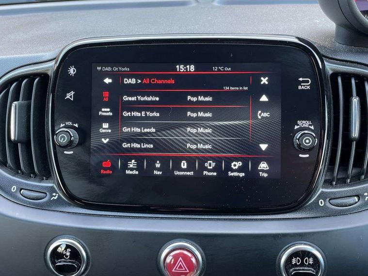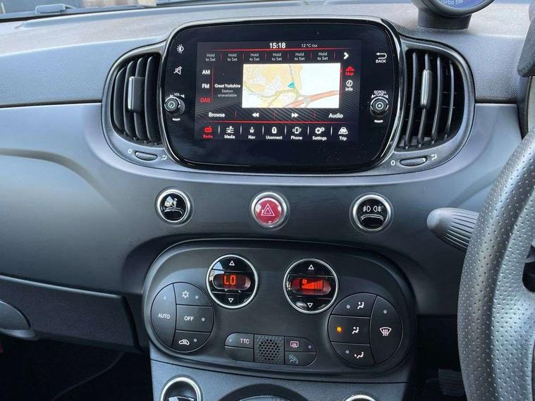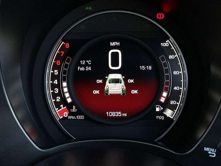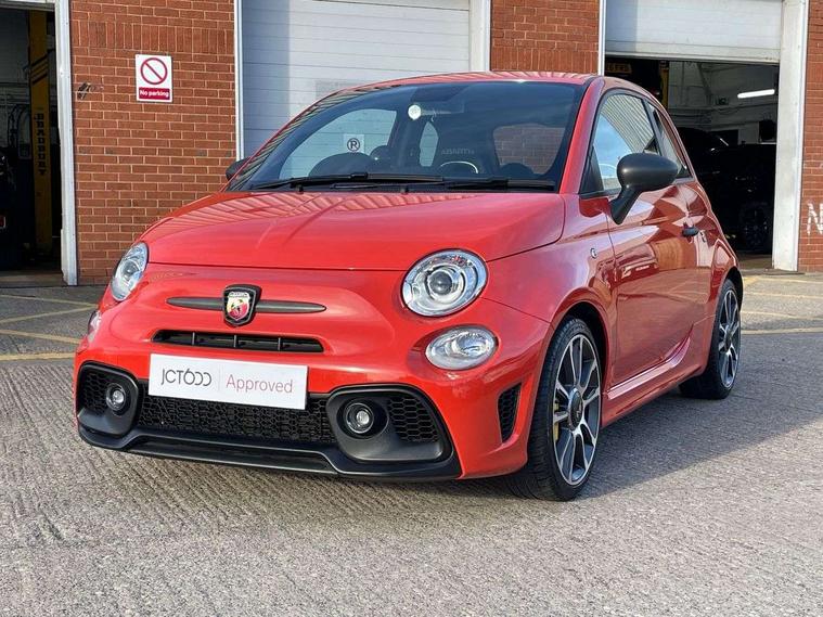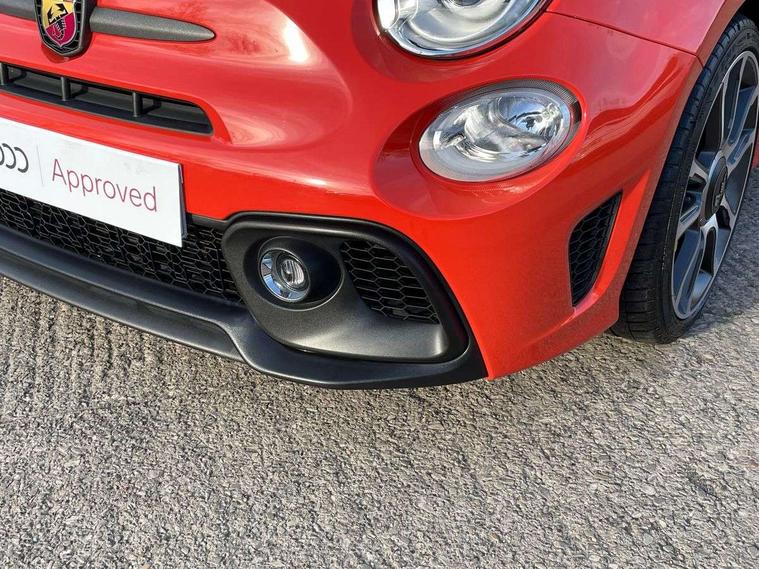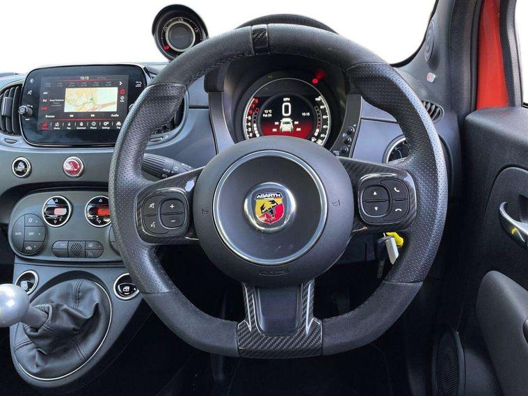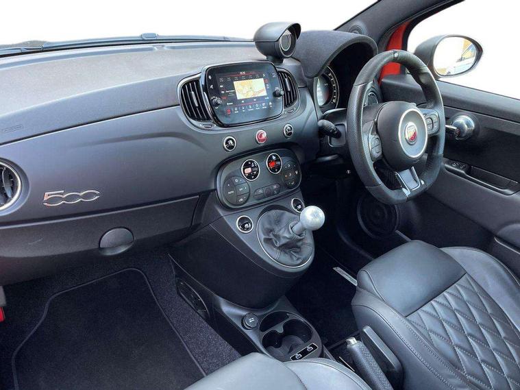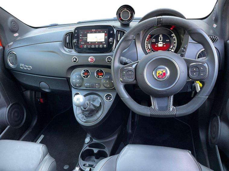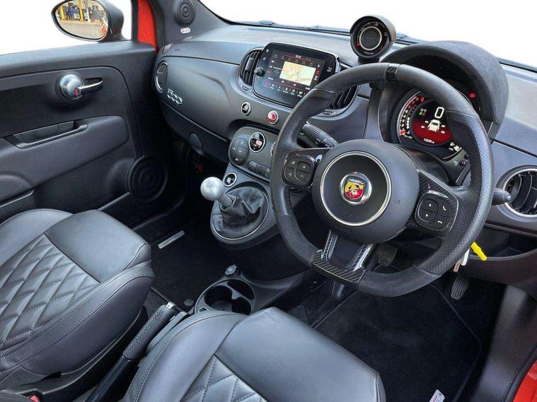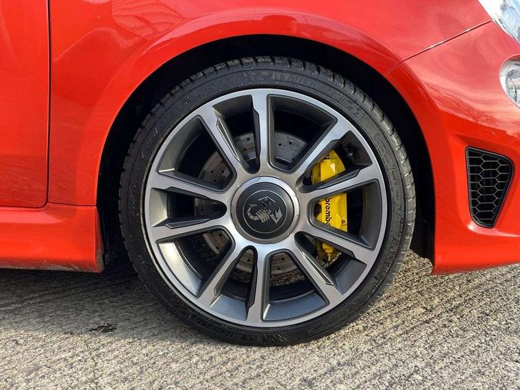 7" TFT instrument display with sports mode, Apple car play/Android Auto, Dualdrive PAS, eCall emergency call system, Garrett turbo, Rain and dusk sensors, Rear parking sensors, Sports button, Trip computer, Wakeup screen for 7" radio, Koni front and rear suspension with Frequency Selective Damping technology, Torque transfer control (TTC), 6 speakers, 3rd brake light, 695 badge, Active record monza exhaust with rotated tips, Black front and rear bumper inserts, Body coloured bumpers, Dark tinted rear quarter windows, Electric adjustable heated door mirrors, Electric front windows, Front fog lights, LED daytime running lights, Poly elliptical halogen headlights, Rear window defroster, Rear wiper, Tar cold grey door handles, Tar cold grey mirror caps, Window integrated aerial with aluminium roof cap, 12V socket, 2 seat bench in 2nd row, Aluminium gearknob, Driver/front passenger seat height adjustment, English handbook, Fabric abarth corsa racing seats upholstery by sabelt with anthracite grey shell, Floor mats, Front head restraints, Front passenger seat memory, Front sports seats, Glovebox, Height adjustable steering wheel, High performance BMC air filter, Matt black dashboard, Rear headrests, Single front passenger seat, Sports steering wheel in leather and Alcantara with carbon fibre detailing, Stainless steel pedal covers, Tech Pack - 695/695C, 240x11 mm Drilled rear brake discs, 305x28 mm Drilled and ventilated front brake discs, 4 piston fixed yellow front brake calipers in aluminium by Brembo, ABS, Driver and passenger airbags, Drivers knee airbag, ESP + ASR/MSR + HBA + Hill holder, Front side airbags, Head protection side airbag, Tyre pressure monitoring system, Window airbags, Alarm, Immobiliser, Power door locks, Remote central locking, 17" Montecarlo alloy wheels, Fix and go kit,