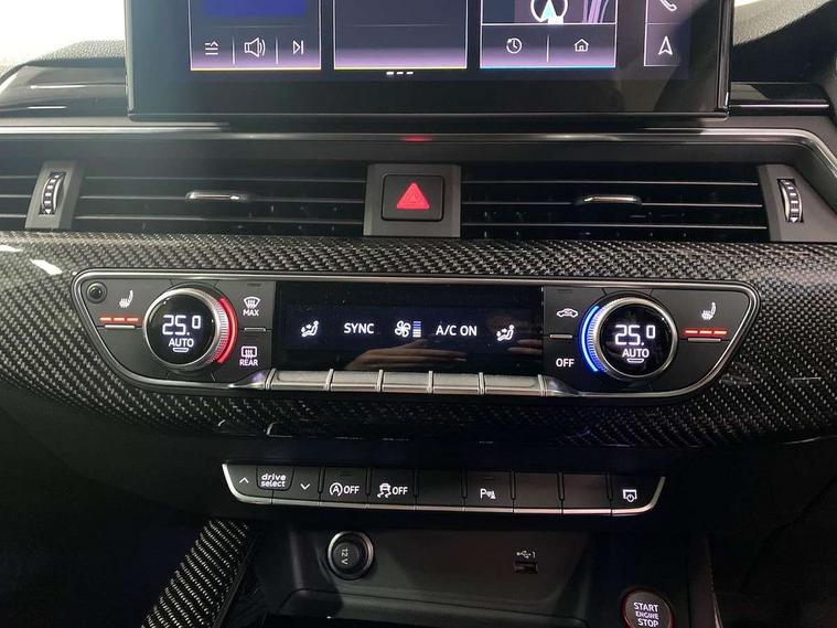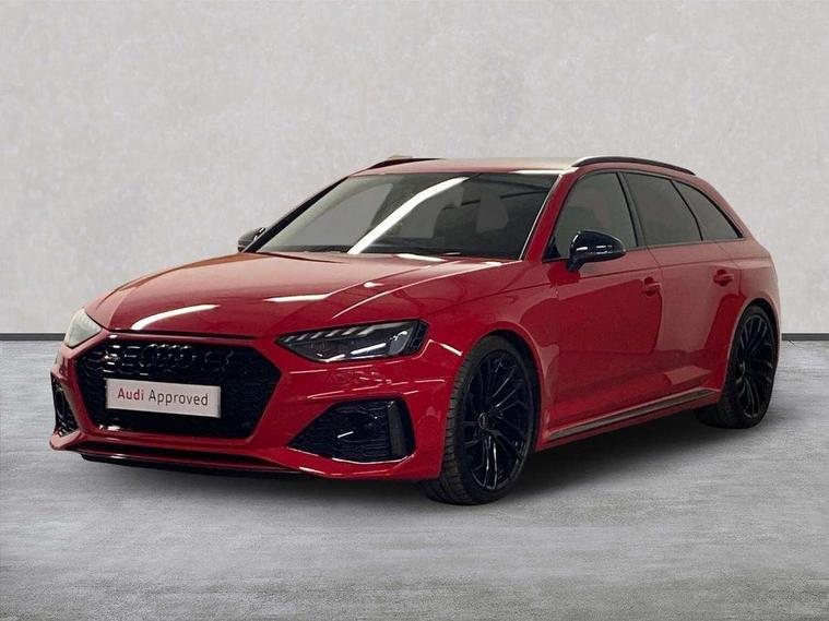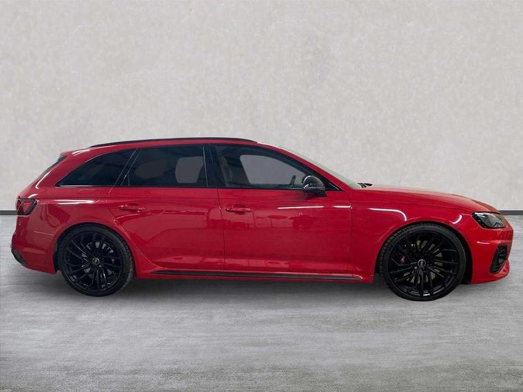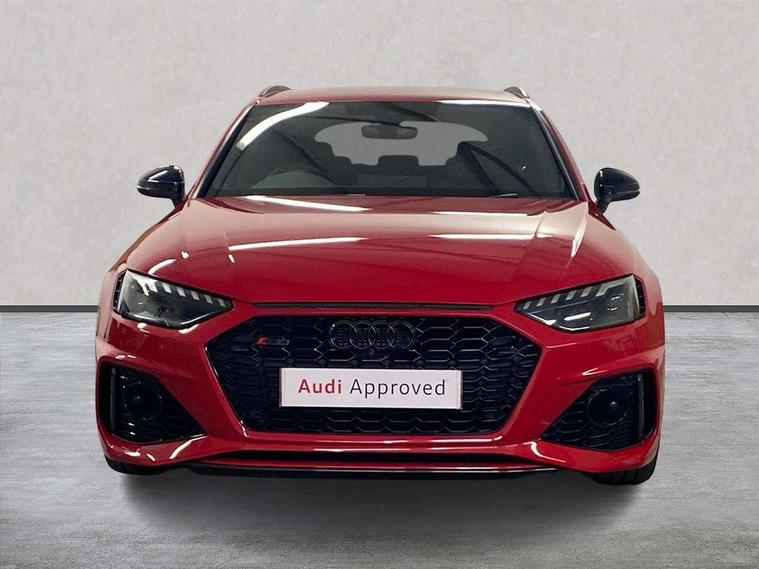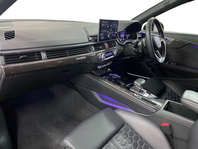 7" Colour driver information system, Amazon alexa Integration, Audi connect safety and service (e-call), Audi drive select, Audi side assist, Audi smartphone interface, Audi virtual cockpit with RS specific display, Automatic start-stop system with coasting functionality and efficiency programme, Bluetooth interface, Electromechanical power steering, Email, calendar and text messages displayed via MMI, MMI Navigation plus with MMI touch includes 10.1" high resolution colour MMI display, 3D map, Power opening/closing tailgate, Service interval indicator, Voice control system, 58 Litre fuel tank, Quattro sports differential, 2 USB charging ports, Audi sound system, DAB digital radio module, 3rd brake light, Acoustic windscreen, Audi Beam uses LEDs to project the RS logo onto ground as you exit your RS4, Audi matrix LED headlights with LED rear lights + dynamic front and rear indicators, Audi rings and lettering glossy black, Auto dimming rear view mirror, Automatic headlights + automatic windscreen wipers, Black roof rails, Blue tinted glass, Body colour door handles, Electric front windows, Electric rear windows, Electrically folding auto dimming/adjustable/heated door mirrors with memory function, LED side indicators and kerb view function for passenger side, Flared front and rear wheel arches, Front bumper with enlarged air inlets, Headlight range control, High beam assistant, High gloss black door mirror housing, High gloss black triangular aperture at rear door, Honeycomb design grille with quattro logo, Lateral air inlets next to front headlights, LED daytime running lights, LED indicators in door mirrors, Privacy glass with rear acoustic glazing, Rain and light sensors, Rear side wing doors, Rear wiper, Roof spoiler, RS 4 badges on grille and rear, RS4 dual branch chrome tailpipes with left and right oval pipes, 3 seat bench in 2nd row, 3 spoke multifunction plus leather steering wheel with heating and RS badging, 40/20/40 split folding rear seats with rear centre armrest, Black cloth headlining, Deluxe 3 zone electronic climate control, Electric load area cover, Electrically adjustable front seats, Fine nappa leather with contrast honey comb stitching + super sports seats with pneumatic massage function, Front centre armrest, Front headrests, Front/rear floor mats, Heated front seats, Height and reach adjustable steering wheel with full size airbag, Illuminated door sill trims with RS4 logo, ISOFIX child seat mounting and top tether, Leather door armrests and knee pad, Luggage compartment carpet, Perforated leather gear lever knob with contrast stitching, Rear headrests, Retractable load area cover, Single front passenger seat, Stainless steel pedals, Sunvisors with vanity mirrors, Carbon black styling pack - RS4, LED Interior light pack - RS4, Non Smokers pack, 3 point seatbelts on all rear seats, Adaptive driver and front passenger airbags, Electromechanical parking brake, Electronic stabilisation control including ABS, ASR and EDL, Enhanced braking system, Front head airbags, Front seatbelt pretensioners + load limiters, Front side airbags, Hill hold assist, Manual child lock in rear doors, Multi-Collision braking, Pop-up bonnet for pedestrian protection, Pre sense city, Rear side airbags, Seatbelt monitoring, Traction control, Tyre pressure warning, Variable restraint system, Warning triangle and first aid kit, Anti theft alarm, Anti-theft wheel bolts, Immobiliser, Keyless Go, Remote central locking, Remote control key with RS emblem, Carbon twill inlays, 20" 5 segment spoke evo design glossy black sport alloy wheels, Tool kit, Tyre repair kit,
