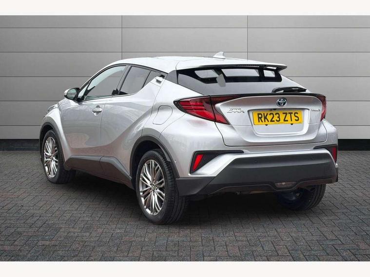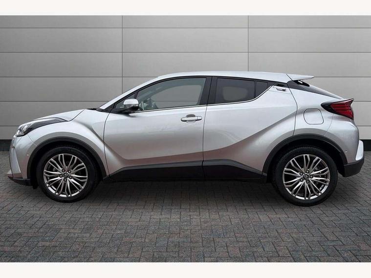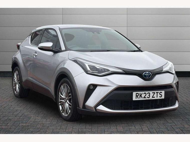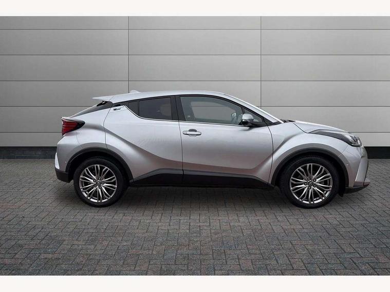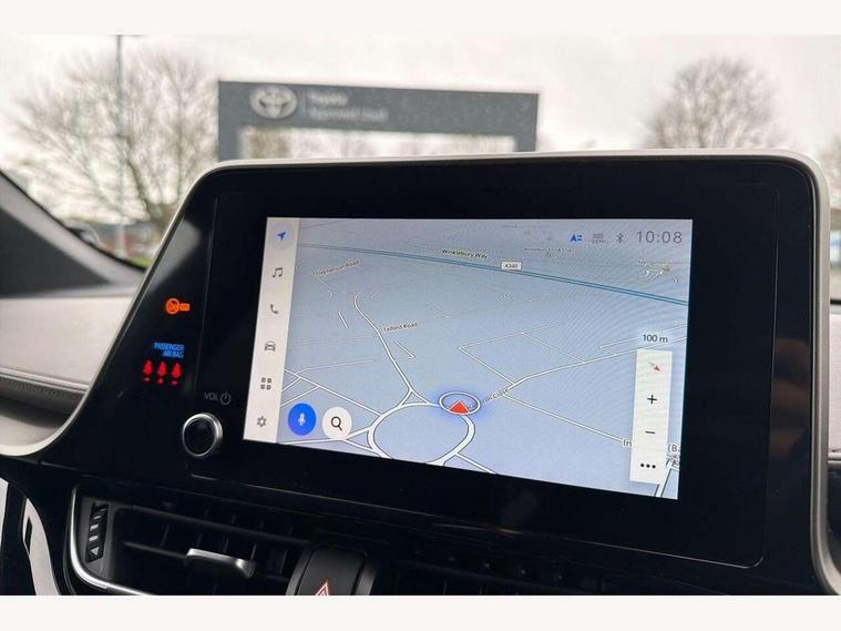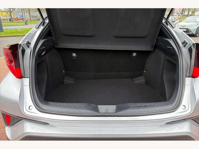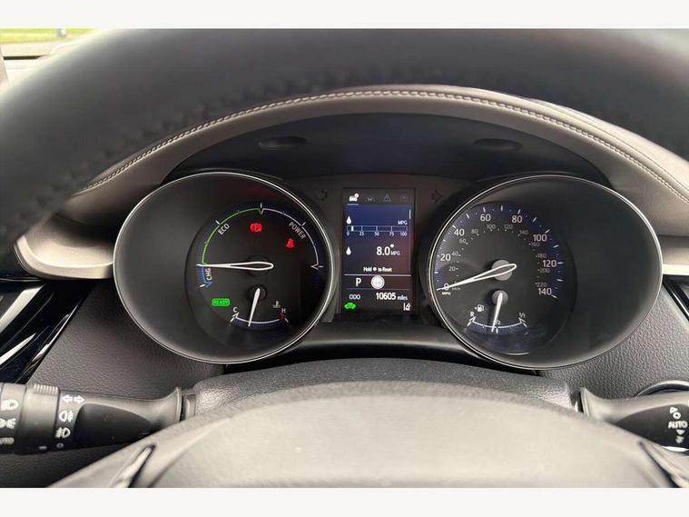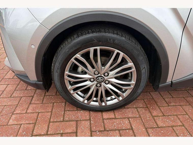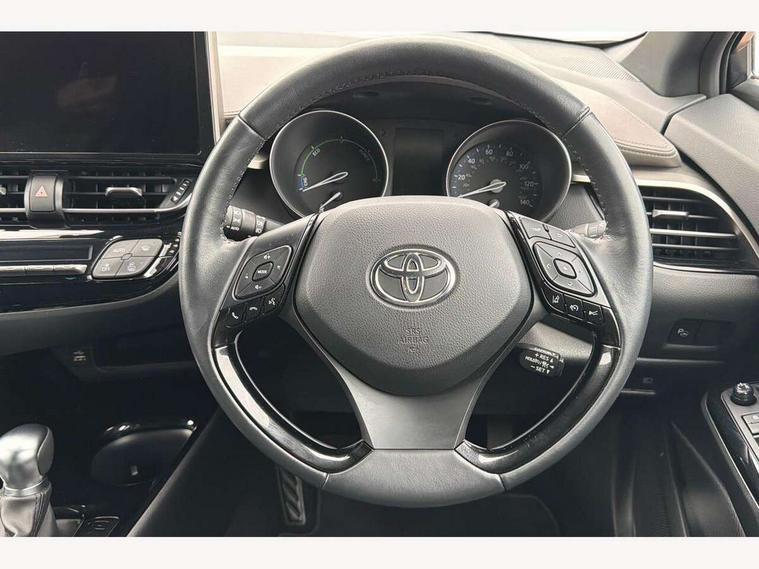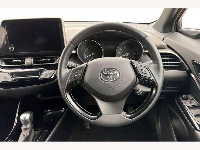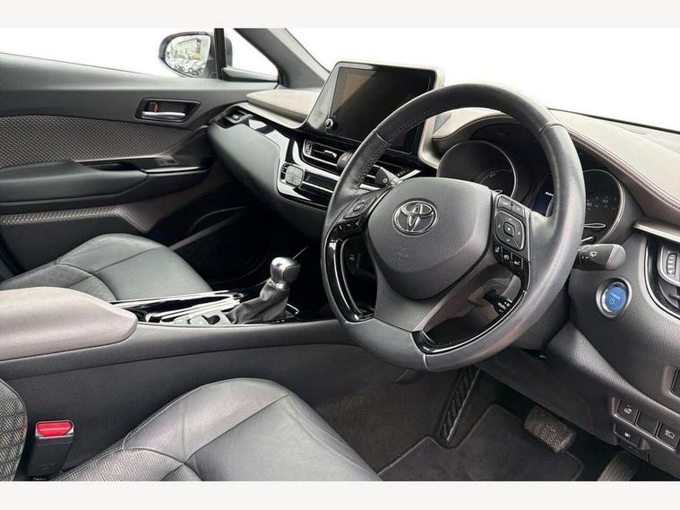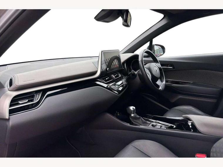 4.2" coloured TFT screen for multi-information display, Adaptive cruise control, Apple car play and Android auto, Bluetooth connectivity, E-call, Electric power steering, Hybrid system indicator, Lane departure alert with steering control, Lane trace assist, Push button tailgate release, Remote boot door release in cabin, Remote boot door release in key, Reversing camera, Road sign assist - RSA, Simple Intelligent parking assist, Smart voice assist, Touch 2 Go navigation system, Trip computer, Voice recognition, Wireless smartphone integration, Vehicle Stability Control (VSC), 6 speakers, AM/FM radio, DAB Radio (Digital Audio Broadcasting), Toyota touch 2 multimedia system with 8" display, USB connector, Wi-fi connectivity, Adaptive front light system, Adaptive LED Headlights, Anti-jam protection on power windows, Auto high beam, Auto up and down function on all power windows, Automatic headlight levelling, Automatic headlights, Automatic headlights cut-off, Black and body coloured rear bumper, Black lower front grille, Black upper front grille, Body colour door handles, Body colour door mirrors, Body colour front spoiler lip, Body coloured front bumper, Boot door release with push button, Electric heated door mirrors, Follow me home headlights, Front and rear power windows, Headlight cut off reminder, Honeycomb lower front grille, LED daytime running lights, LED fog lights, LED front light guide, LED High mounted stop light, LED rear brake lights, LED rear combination lights, Noise reduction layer on front windows and windscreen, Power adjustable door mirrors, Privacy glass, Rain sensor, Rear sequential indicators, Rear side wing doors, Rear spoiler, Rear tailgate, Rear window defogger, Rear window wiper, Shark fin antenna, UV-filter on driver and passenger windows, UV-filter on rear windows, Variable front intermittent wipers, 12v power outlet - front, 3 rear headrests, 3 seat bench in 2nd row, 3 spoke leather steering wheel, 60/40 split folding 2nd row rear seats, Adjustable rear headrests, Adjustable speed limiter switch on steering wheel, Assist grips front and centre pillar, Audio and telephone switches on steering wheel, Black front door assist grips, Blue ambient lighting on front cup holders, Blue ambient lighting on front doors, Boot light, Chrome interior door handles, Driver and front passenger personal light, Driver and front passenger Whiplash Injury Lessening seats, Driver and passenger seatback pockets, Dual zone automatic air conditioning, Floor mats, Front cupholders, Front head restraints, Front sports seats, Glovebox with internal light, Hard tonneau cover, Heated driver and front passenger seats, Heated steering wheel, Hooks for luggage holding net, Humidifying Nanoe air purifier, Illuminated entry system, Isofix attachments on outer rear seats, Leather gearshift, Light on driver sun visor, Light on passenger sun visor, Manual telescopic steering wheel, Manual tilt steering wheel, Microphone on front personal light, Mirror on driver sun visor, Mirror on passenger sun visor, Multimedia switches on steering wheel, Pollen filter, Power adjustable lumbar support on driver seat, Power tilting cushion on driver seat, Shopping bag hooks, Single front passenger seat, Slow opening on lower glovebox, Voice recognition switch on steering wheel, Leather pack - C-HR, Tech with parking sensor pack - C-HR, 16 Disk front wheel brake, 3x3 point rear seatbelts, ABS+EBD+Brake assist, Electronic parking brake, Front and rear seatbelt reminder, Front passenger airbag on/off switch, Hill start assist control (HAC), Pre collision system with pedestrian detection, Pre-tensioners and force limiters, Rear door child safety locks, SRS Airbags - Driver + Front passenger, front side, front and rear curtain and driver's knee airbags, Toyota safety sense, Tyre pressure monitoring system, Tyre pressure warning system, Acoustic vehicle alert system (AVAS), Glass-breaking alarm sensors, Immobiliser, Intrusion alarm, Intrusion sensor, Motion sensor alarm, Power door locks, Power passenger window lock, Remote central locking, Black lower dashboard, Dark brown upper dashboard, Piano black console, Silver deco line on upper dashboard, Tyre repair kit,