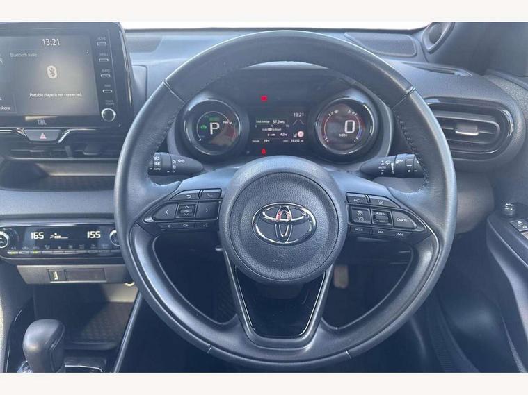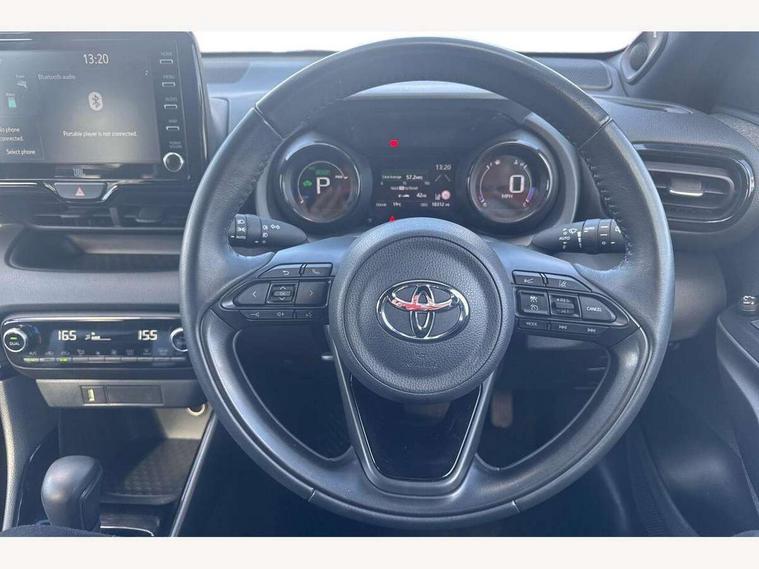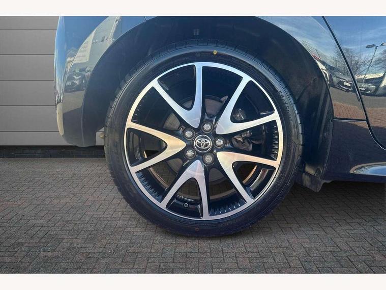 Adaptive cruise control, Adjustable speed limit with speed warning, Bluetooth connectivity, Colour binocular inspired displays with digital speedometer, E-call, Electric power steering, Hybrid energy display, Multi information display switches on steering wheel, Reversing camera, Smartphone integration with Apple CarPlay and Android auto, Vehicle Stability Control (VSC), 8" Multimedia display touch screen, JBL Premium sound system with 8 speakers, Toyota Touch 2 with DAB, USB connection, Acoustic windscreen glass, Auto windscreen wipers, Automatic headlights, Body coloured door mirrors, Electric adjustable heated door mirrors, Follow me home headlights, Front auto power windows with anti jam protection, Full LED rear lights, LED daytime running lights, LED front fog lights, LED Headlights, LED High mounted stop lamp, Painted front grille, Rear auto power windows with anti jam protection, Rear privacy glass, Rear spoiler, Shark fin antenna, Turning signal integrated indicators in door mirrors, 3 adjustable rear headrests, 3 spoke leather steering wheel, 60/40 split folding rear seat, Active headrests, Adjustable boot height, Coat hooks in rear grab handles, Cup holders (2 front & door), Data Communication Module (DCM) connected services, Dual zone automatic air conditioning, Fabric seat with partial synthetic leather upholstery, Front armrest, Front sport seats, Glovebox, Height adjustable driver's seat, Height adjustable passenger seat, Isofix seat fixing, Leather gearshift, Map pockets on the backs of the front seats, Pollen filter, Shopping bag hooks, Tilt/telescopic steering column, 3 point seatbelts on all rear seats, ABS+EBD+Brake assist, Electronic parking brake, Emergency brake light system (EBS), Front passenger airbag on/off switch, Front seatbelt reminder, Hill start assist control (HAC), Rear child proof door locks, Rear seat belt reminder, Supplemental Restraint System (SRS) 8 airbags: Driver & passenger's airbags, dual side curtain airbags, side impact airbags, front centre airbag, Toyota Safety Sense 2, Precollison + Night time Pedestrian & Cyclist Detection, Lane Trace Assist, Auto High Beam, Intelligent ACC & Road Sign Assist, Tyre pressure warning system, Alarm/immobiliser, Keyless smart entry with push button start, Remote powered central double locking doors, Piano black interior trim, Soft touch instrument panel, Space saver spare wheel,