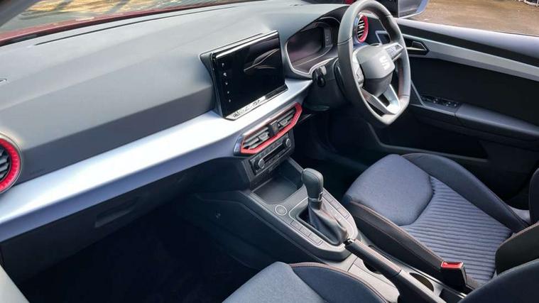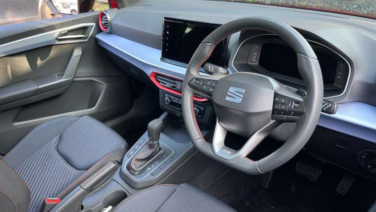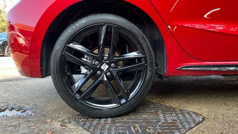 'Lights On' Reminder warning buzzer, 10" Digital cockpit, 9.2" touchscreen navigation system with type C USB socket, Voice control and DAB/AM/FM radio, Auto start and stop system, Bluetooth audio streaming with handsfree system, Digital clock, E-call, Full link smartphone integration with mirror link, wireless apple carplay, Google android auto + USB Type C cable for apple and android devices, Lane assist, Low fuel warning light, Outside temperature gauge, Power Steering, Rear parking sensor, Seat connect plus with safety, service, remote and online, SEAT drive profiles and ECO function, SEAT logo boot release, Speed limiter, Traffic sign recognition, Trip computer, Sports suspension, Auxiliary input socket, Radio/MP3 player, SD card slot, Steering wheel mounted controls, Anti theft roof antenna, Auto dimming rear view mirror, Automatic rain sensing wipers, Black door mirror caps, Black roof spoiler, Black side skirts, Body colour bumpers, Body colour door handles, Brilliant black window surrounds, Dark tinted rear windows, Electric adjustable/heated/folding door mirrors, Electric front windows, Electric headlight adjustment, Electric panoramic sunroof, Electric rear windows, Front/rear fog lights, FULL LED automatic headlights with dynamic headlight range control, coming and leaving home, LED daytime running lights, LED 3rd brake light, LED tail lights, Rear roof spoiler with FR twin exhausts, Rear side wing doors, Rear wiper, 3 seat bench in 2nd row, 60/40 split folding rear seat, Ambient interior lighting, Chrome detailing and black headlining, Dual zone climate control with combination filter, Front courtesy lights, Front cupholders x 2, Front reading lights, Front sport bucket seats, Gear shift indicator, Glovebox, Heated front seats, Height adjustable front and rear headrests (five), Height adjustable front seats, Height/reach adjust steering wheel, Illuminated air vent surrounds, Illuminated boot, Instrument lighting with brightness control, Isofix, Leather multifunction flat bottomed sports steering wheel with gearshift paddles, Microsuede cloth upholstery, Passenger sunvisor, Single front passenger seat, Storage pockets on back of front seats, Sunvisors with mirror and driver side card holder, Safety and driving pack (S) - Ibiza, ABS, Active front headrests, Child locks on rear doors, Electronic stability control, Energy recovery system, Front driver and passenger side airbags with curtain airbag and front passenger airbag deactivation, Hill hold control, Multi-Collision braking, Seat belt reminder for front and rear seats, Tiredness recognition system, Tyre pressure monitoring system, KESSY Keyless entry and go, Locking wheel bolts, Perimeter alarm and interior monitoring with backup horn and tow away protection, Remote central locking + deadlocks, 18" Performance alloy wheels in glossy black,