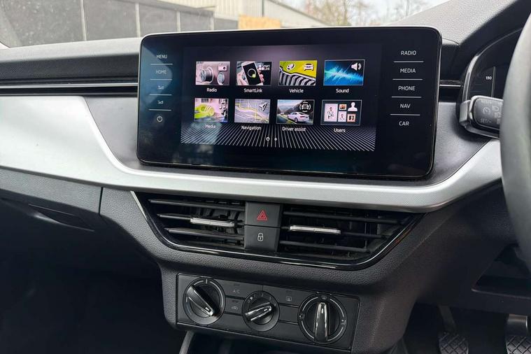 Bluetooth system, E-call, Front assist system, PAS, Service indicator, Speed limiter, Wireless Smartlink for Apple CarPlay (wired for Android Auto), 8 Speakers, Auxiliary input socket, DAB Digital radio, Body colour bumpers, Body colour door mirrors and handles, Chrome grille surround, Dimming rear view mirror with black surround, Electrically adjustable and heated door mirrors, Front and rear electric windows, Headlight range control, Heated rear window, LED rear lights - low functionality, LED third brake light, Light sensors, Rain sensor, Rear fog lights, Rear side wing doors, Rear wiper, 12V Accessory socket in centre console, 3 seat bench in 2nd row, Chrome inner door handles, Cloth upholstery, Front head restraints, Glove compartment with illumination, Ice scraper, Isofix child seat fittings on outer rear seats, ISOFIX on front passenger seat, Manual lumbar support for front seats, Rake/reach adjustable steering wheel, Reading lights, Single front passenger seat, Sun visors with illumination on front passenger, Textile floor mats, Third rear headrest, Top tether for front passenger seat, Umbrella in driver's door, 3x3 point rear seatbelts, Airbags - driver and front passenger, ESP, Front passenger airbag deactivation switch, Front side airbags with curtain airbags, Hill hold control, Manual parking brake, Manual rear child locks, One tone horn, Rear disc brakes, Seatbelt reminder for driver an co-driver, Traction control, Tyre pressure monitor, Anti-theft alarm system with interior monitoring, backup horn, towing protection and remote central locking with SAFE system, Anti-theft wheel bolts, Electronic engine immobilizer,