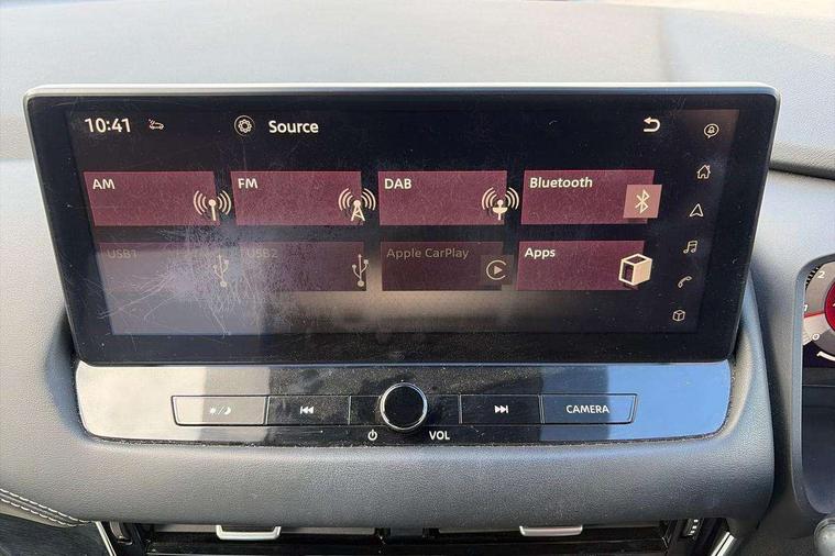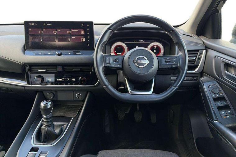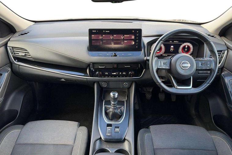 Android auto/Apple CarPlay (Wired), Blind spot warning, Drive modes (sport, normal, eco), Electric speed sensitive power steering, Emergency and breakdown call, Front and rear parking sensors, Full Digital 12.3" TFT Digital Combimeter, Google maps services - search, weather, 3D maps and Google street view, Idle stop/start system, Intelligent around view monitor, Intelligent Cruise control (ICC), Intelligent driver alert system, Intelligent forward collision warning, Intelligent lane intervention, Lane departure prevention, Lane departure warning system, Maximum speed limiter, Moving object detection, Nissan connect 12.3 inch touchscreen infotainment system, Nissan connect navigation, Push button starter, Rear cross traffic alert, Rear view camera, Remote control services - door locks, lights, horn and car locator, Telematics - notifications and connectivity services, TomTom live traffic services, Traffic sign recognition with legal speed adjustment, Trip computer, Virtual personal assistant and firmware over the air capability, Wireless apple carplay, 6 speakers, AM/FM audio system with DAB, Bluetooth audio streaming, Front USB connections (Type-A and Type-C), Rear USB charging only ports (Type-A and Type-C), Auto dimming rear view mirror, Auto rear wiper when reversing, Automatic hazard signal with emergency stop signal, Body colour mirror caps, Body coloured door handles, Bodyside mouldings, Chrome side window finisher, Door handle with button, Electric auto folding door mirrors, Electrically adjustable and heated door mirrors with LED turn indicator, Follow me home headlights, High beam assist, Intelligent auto headlights, LED daytime running lights, LED Headlights, LED rear lights, One touch front and rear electric windows with remote opening and closing, Partially body coloured bumpers, Privacy glass, Rear bumper with graphite insert, Rear reversing light (bulb lighting), Rear roof spoiler, Rear side wing doors, Rear styling plate, Shark fin antenna, Splash free rain sensing wipers, Super UV and infrared cut glass, Three blink turn signal, 12v power socket in dashboard and luggage, 2x Rear coat hooks, 3 bench rear seats in 2nd row, 3 rear headrests, 4 folding assist grip, 6 Luggage hooks - 4 on floor, 2 on side, 6-way manually adjustable driver's seat, 60/40 split folding rear seat bench, Ambient lighting around centre console, Centre console storage tray, Chrome interior door handles, Cloth monoform upholstery, Driver and front passenger sunvisors with illuminated vanity mirrors, Driver seat back pocket, Dual zone automatic climate control with pollen filter, Electrically adjustable lumbar support for driver, Front and rear door storage, Front centre console and armrest, Front cupholders x 2, Front door with bottle holders, Glovebox with light, Hard trunk cover, Height adjustable driver's seat, Height adjustable front headrests, Height adjustable passenger seat, Leather shift knob, Leather steering wheel, Luggage board system, Luggage space lighting, Manually adjustable passenger (slide recline + lifter), Multifunction steering wheel, Passenger seat back pocket, Rear armrest with 2 cupholders, Rear door bottle holders, Single front passenger seat, Soft PVC kneepad, Steering wheel switches, Sunglasses holder, Tilt/telescopic adjustable steering wheel, Two rear isofix child seat anchorage points with top tether, Welcome light and console tray ambient lighting, 3x3 point rear seatbelt pretensioners + load limiters, ABS with EBD and brake assist, Active brake limited slip, Auto hold function, Child locks on rear doors, Curtain and front side, far side airbags, Driver and passenger airbags, Driver, passenger and 2nd row rear seat belt reminder, Electronic parking brake, Front seatbelt pretensioners + load limiters, Height adjustable front seatbelts, Hill start assist, Intelligent blind spot intervention, Intelligent front emergency braking with pedestrian, cyclist recognition and junction assist, Intelligent rear automatic braking, Tyre pressure monitoring system, Vehicle dynamic control, Capless fuel filler, Engine immobiliser, Intelligent Key, Remote central door locking with deadlocking, Thatcham Cat.1 alarm, Interior instrumental panel B finisher, 18" Diamond cut alloy wheels, Tyre puncture repair kit,