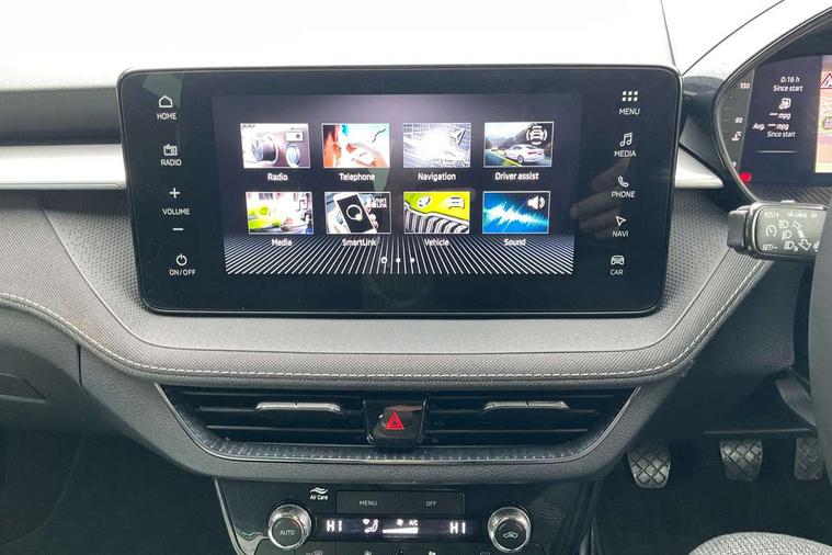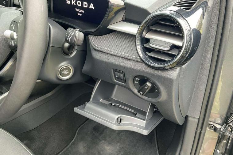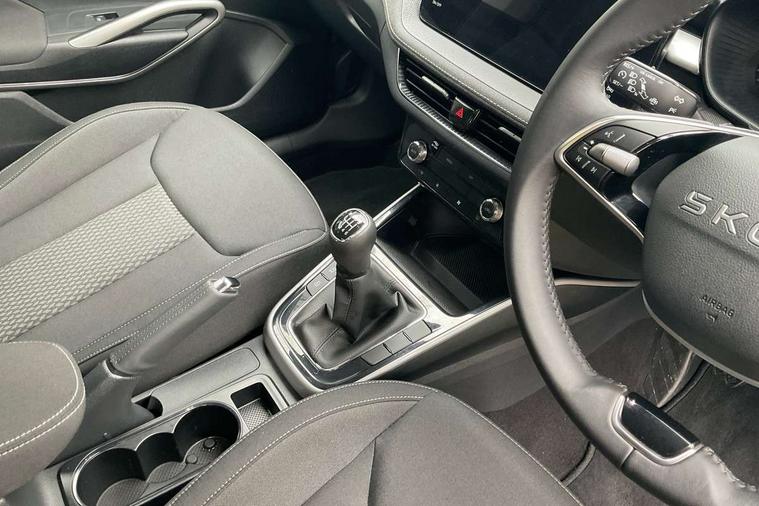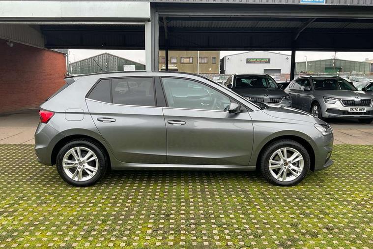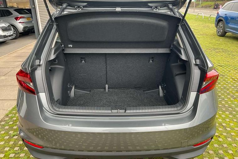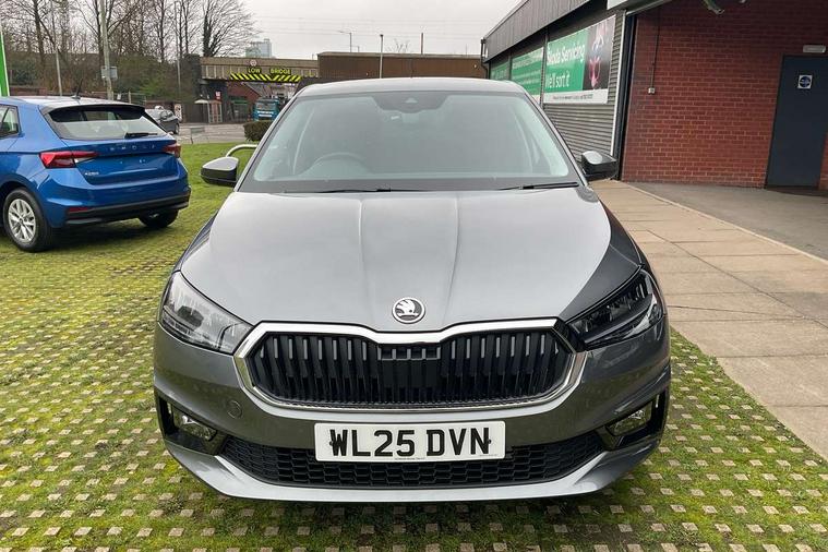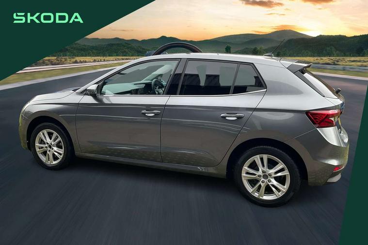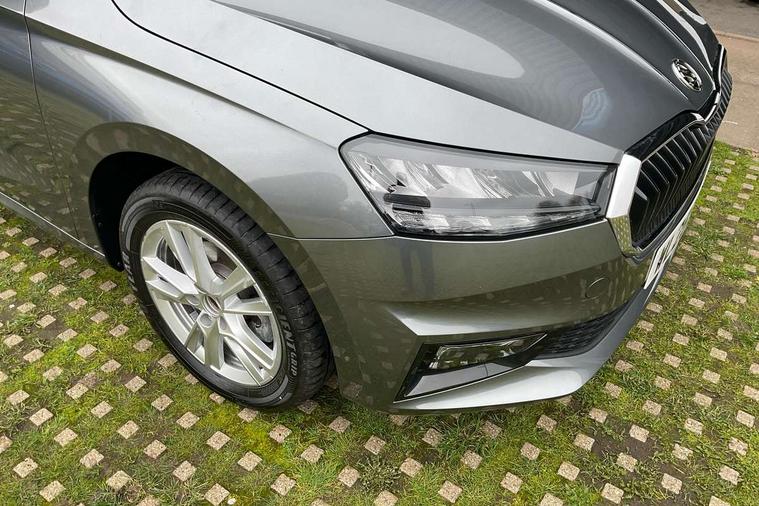 Advanced driver attention and drowsiness monitor, Bluetooth connection, Driver alert system, Electromechanical power steering, Exterior temperature gauge, Service interval indicator, Traffic sign recognition, Virtual cockpit with 10.25" colour display, Wireless SmartLink for Apple CarPlay and Android Auto, 6 Speakers (4 in front and 2 in rear), 9.2" colour display skoda navigation system with voice control and web radio, Auxiliary socket for external MP3 player, DAB digital radio reception, Auto dimming rear view mirror, Body colour door mirrors, Body coloured bumpers, Chrome window surround, Door mirror integrated indicators, Front and rear electric windows, Front window wiper intermittent control, Headlight range control - Automatic, Ice scraper in fuel cap, LED 3rd brake light, LED daytime running lights with coming and leaving home feature, LED rear lights, Privacy glass, Rear LED fog light, Rear side wing doors, Rear window wiper with washing nozzles, Roof mounted spoiler, SKODA tailgate lettering in chrome, Unique dark chrome design logo on alloy wheels, 2 LED reading lights in front and rear, 3 rear headrests, Backrest split and folding, Central console with fixed cup holder and storage box, Chrome handbrake release button, Comfort seats, Door sills with fabia badging, Dual zone air conditioning with climatronic electronic control, Fabric upholstery, Front centre armrest, Gearshift knob/handle in leather, Grain satin black interior door handles, Hand brake lever handle in leather, Height adjustable front headrests, Height adjustable front seats, Height adjustable steering wheel, ISOFIX and TopTether anchorage points to the outer rear seats, ISOFIX and TopTether on the front passenger seat, Luggage compartment lighting, Manually adjustable lumbar support in front seats, Pollen filter, Rear seat bench unsplit, Single front passenger seat, Skoda lettering on steering wheel, Storm grey headlining, Sun visors with mirror and airbag label on passenger side, Textile floor mats, Ticket holder, Umbrella in drivers door, Ambient lighting pack - Fabia Hatchback, 3-point height adjustable front seats belts with pretensioner and force limiter, Automatic warning lights in case of crash, Driver and passengers airbag with switch off function, e-Call+, ESC including ABS, MSR, ASR, EDS, HBA and XDS, Front and rear seat belt warning, FRONT ASSIST (AEB City and AEB Inter Urban), Front side airbags, Head airbags, One tone horn, Pedestrian protection, Three rear 3-points safety seat belts with pretensioner and force limiter including stop function for outer rear seat belts, Tyre pressure monitoring system, Anti-theft alarm system including immobiliser, interior monitoring, backup horn, and towing protection, Central locking with radio remote control, interior controls, SAFE function and 2 foldable keys, Chrome edged air vents, Grain satin black central console cover, Metallic grey upper decorative trim, Satin black door and side trim panel in front, Textile microsuede grey lower decorative trim with art grey stitching, Anti-theft wheel bolts protection, Super-low rolling resistance tyres,