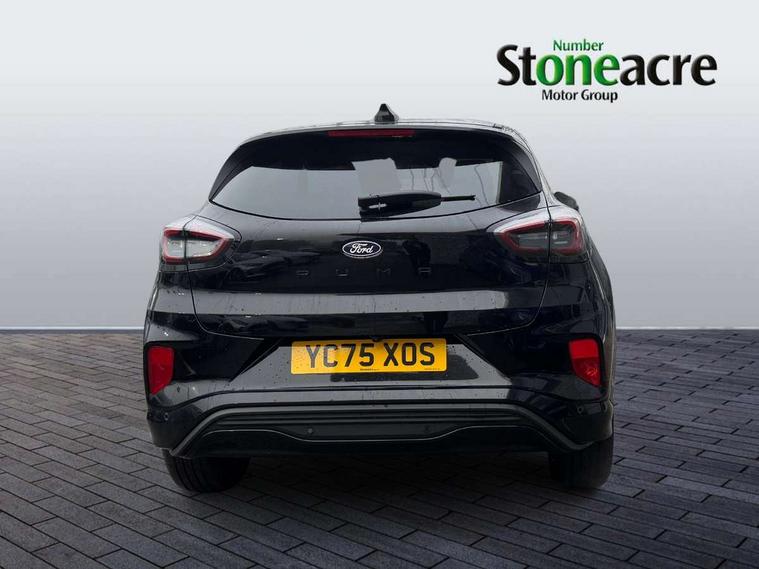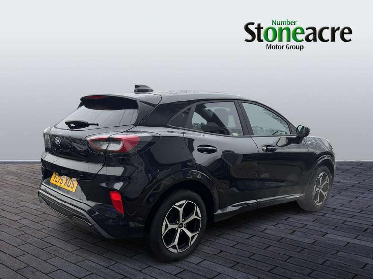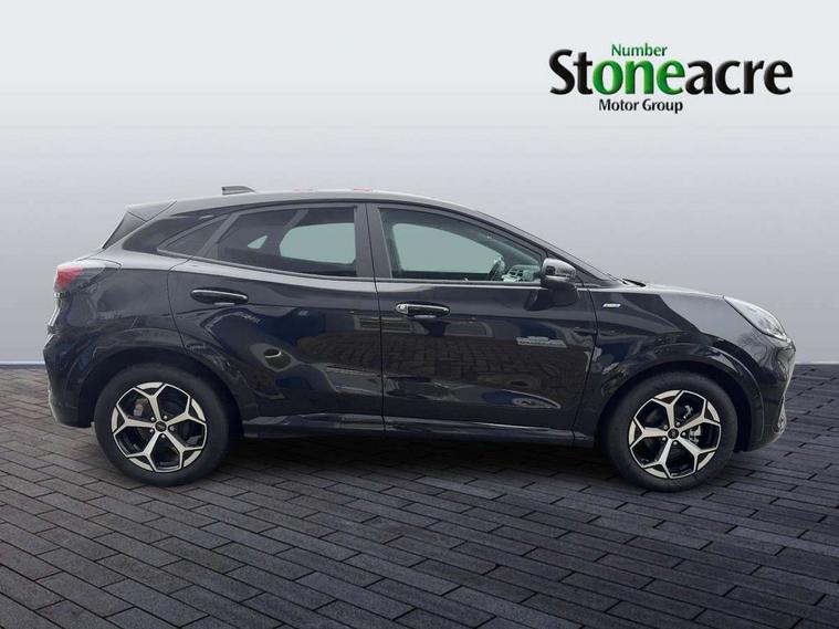 Driver impairment monitor, Emergency call service, Ford easy fuel, Full digital 12.8" instrument cluster, Lane keeping aid with lane departure warning, Power assist steering, Selectable drive modes(Normal, Eco, Sport, Slippery and Trail), Speed sign recognition, Sport suspension, 12" landscape touchscreen display with wireless apple car play and android auto 6 speaker audio system, Ford pass connect and emergency assistance, Ford SYNC4 with connected navigation, Automatic headlights with rain sensing wipers and auto high beam, Front fog lamps, LED daytime running lights, LED rear lamps, LED third brake light, Power foldable heated door mirrors with puddle lamps and puma logo protection, Quickclear heated windscreen, Rear privacy glass, Rear side wing doors, Rear wiper, ST-Line body styling kit with unique grille, 3 seat bench in 2nd row, Centre console with armrest and stowage, Electronic automatic temperature control (EATC), Ford megabox extended bootspace, Front and rear head restraints, Front floor mats, Manual 4 way driver seat adjust with lumbar adjustment, Single front passenger seat, ST- Line cloth trim with red stitching, 3 rear seatbelts, Child safety lock, Electronic stability control (ESC) and hill start assist, Pre-collision assist with autonomous emergency braking, pedestrian/cyclist detection & post-collision braking, Tyre pressure monitoring system (TPMS), Thatcham alarm,