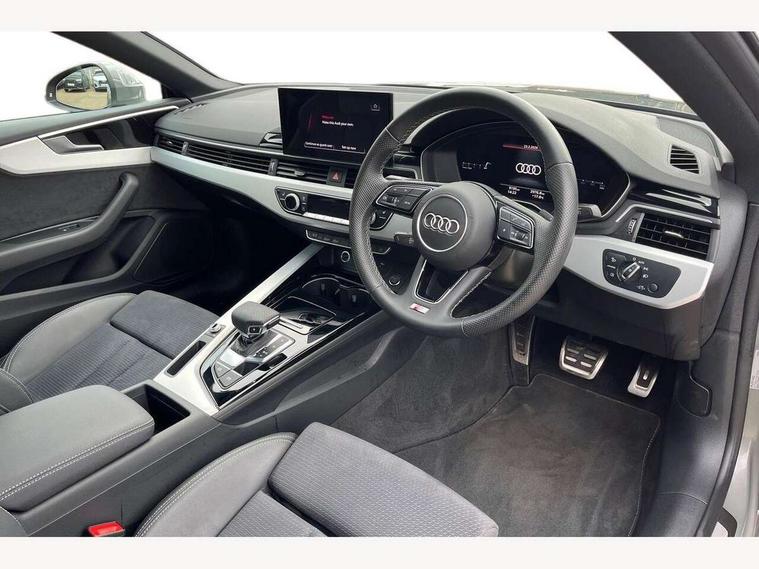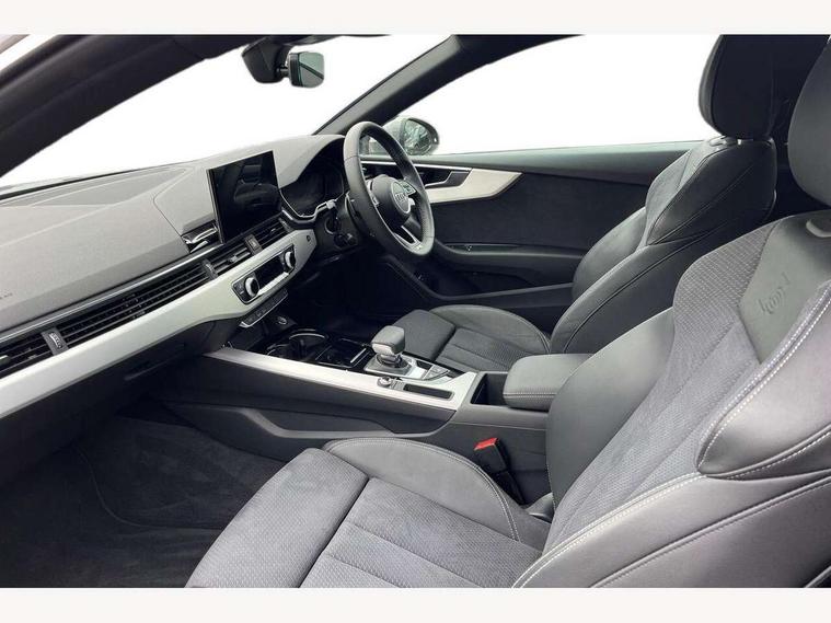 Audi connect safety and service (e-call), Audi connect with Amazon Alexa Integration, Audi drive select (Auto, Comfort, Dynamic, Efficiency and Individual), Audi parking system plus with front and rear sensors, Audi smartphone interface, Audi virtual cockpit - 12.3" full colour digital instrument cluster, vehicle/engine speed, Radio/media information+Driver assistance systems, Automatic start-stop system with coasting functionality and efficiency programme, Bluetooth interface, Electric boot lid release, Electro-mechanical power steering, Email, calendar and text messages displayed via MMI, MMI nav+ with MMI touch - 10.1" high resolution MMI display, touch sensitive, 3D map, route/country info, dynamic route guide, personal route assist, Rear view camera, Service interval indicator, Voice control system, 54 litre fuel tank, Sports suspension lowered by 23mm, 8 passive loudspeakers, CD player, DAB digital radio reception, Two additional USB ports for rear passenger in rear centre console, Two SDXC card slots, Auto dimming door mirrors, Auto dimming rear view mirror, Body colour bumpers, Body colour door handles, Body colour front spoiler lip, Body colour side sill trim, Body coloured door mirrors, Electric adjustable heated door mirrors, Electric folding door mirrors, Electric front windows, Front fog lights, Honeycomb structure radiator grille in grained matt black, Kerb-view function for passenger side, LED headlights and rear lights with LED daytime running lights, LED side indicator lights integrated into door mirrors, LED third brake light, Matt aluminium silver tailpipe trim, Privacy glass, Rain and light sensors, Rear boot, Rear side wing doors, S line badges on front wings, S line front and rear bumpers with side skirts, S Line rear diffuser in matt anthracite black with trim strip in matt aluminium silver, Side air inlets in grained matt black with matt aluminium silver inlay, Variable front intermittent wipers, Windscreen with acoustic glazing, 2 seat bench in 2nd row, 3 spoke high multifunction leather sport steering wheel with paddle shfit and S badging perforated leather grips, 4 way electric lumbar support for driver and front passenger, 40/20/40 split folding 2 seater rear seat bench with rear centre armrest, Adjustable steering column, Black cloth headlining, Black perforated leather gearknob, Contrast stitching on seats, steering wheel and gear lever gaiter, Deluxe 3 zone electronic climate control, Front centre armrest, Front head restraints, Front/rear floor mats, Heated front seats, Illuminated door sill trim with S logo, ISOFIX child seat mounting and top tether, Luggage compartment mat, Manual seat adjustment, Rear headrests, Single front passenger seat, Stainless steel pedals, Sunvisors with vanity mirrors, LED interior light pack - A5/RS5, 2 x 3-point rear seatbelts, 6 airbags - Driver, front passenger, curtain and side airbags, Electromechanical parking brake, Electronic Stabilisation Control (ESC) including ABS, ASR and EDL, Front passenger airbag deactivation, Height adjustable front seatbelts, Hill hold assist, Multi collision brake assist, Pop-up bonnet for pedestrian protection, Pre sense city, Seatbelt monitoring, Tyre pressure warning, Variable restraint system, Warning triangle and first aid kit, Anti theft alarm system, Anti theft wheel bolts, Immobiliser, Keyless Go, Remote central locking, Matt brushed aluminium inlays, Tool kit, Tyre repair kit,