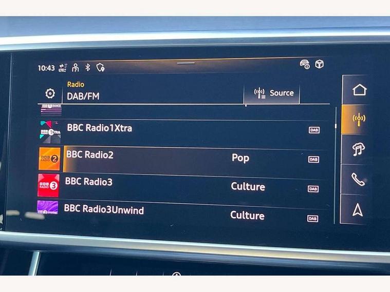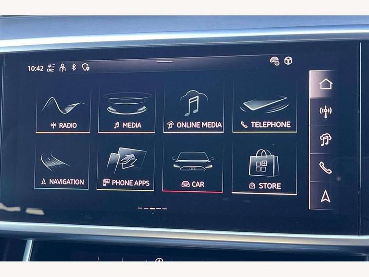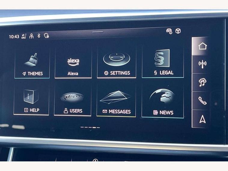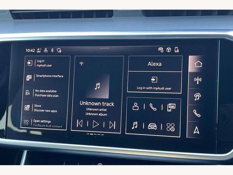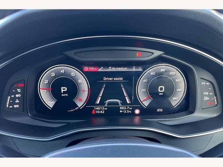 Audi connect safety and service (e-call), Audi connect with Amazon Alexa Integration, Audi drive select, Audi parking system plus - acoustic and visual park assist system for front and rear, Audi virtual cockpit, Automatic start/stop system with coasting functionality, Bluetooth interface, Camera based traffic sign recognition, Lane departure warning system, MMI navigation plus with 10.1" and 8.6" touch screens, Power operated tailgate, Progressive steering, Rear view camera, Service interval indicator, Smartphone interface includes wireless Apple carplay/Android Auto, Voice control system, Sports suspension, Audi front music interface, Audi sound system, Auxiliary input socket, DAB Digital radio, USB connection, Aluminium roof rails, Body colour rear roof spoiler, Body coloured door mirrors, Electric front/rear windows, Electrically adjustable heated and folding + automatically dimming exterior mirrors with memory function, Frameless auto dimming interior rear view mirror, Front intermittent wipers, Heat insulating darkened glass in side and rear windows, Heat insulating glass in windshield, LED rear lights with dynamic indicators, LED signature front daytime running light, LED third brake light, Matrix LED headlights, Matt black rear diffuser with diffuser strip and tailpipes in chrome, Matt black side air intake grille with inlay in matt aluminium, Privacy glass, Radiator grille in anthracite black matt, single frame in chrome and horizontal struts in matt aluminium silver, Rain and light sensors, Rear side wing doors, Rear wiper, 2 zone deluxe electronic climate control, 3 spoke high multi-function perforated leather steering wheel with contrast stitching and shift paddles, 40/20/40 split folding 3 rear seat bench in 3 parts with rear centre armrest, Audi phone box light, Black cloth headlining, Electrically adjustable front seats including seat height, fore/aft position, backrest angle and 4-way lumbar with memory for driver's seat, Front and rear floor mats, Front centre armrest, Front head restraints, Heated front seats, Height/reach adjust steering wheel, Illuminated door sill trims with S logo, Illuminated sun visors with vanity mirrors, Leather gear knob, Luggage compartment system, Rear headrests, Single front passenger seat, Stainless steel pedals and foot rest, Tool kit and car jack, LED Interior Ambient Lighting Pack - A6, Non smoking pack - A6, S line exterior style pack - A6, 3 point seatbelts on all seats, Airbags - Front side, front and rear including head, Audi pre-sense front, EBD - Electronic brakeforce distribution, Electromechanical parking brake, Electronic Stability Control (ESC) including ABS, ASR and EDL, Extended pedestrian protection measures, ISOFIX child seat mounting for front passenger seat and ISOFIX child seat mounting with Top Tether for outer rear seats, Manual child proof rear door locks, Seatbelt monitoring, Tyre pressure warning light, Warning triangle and first aid kit, Anti theft alarm with tow away protection, Anti-theft wheel bolts and wheel loosening detection, Immobiliser, Keyless Go, Remote central locking, Matt brushed aluminium inlays,