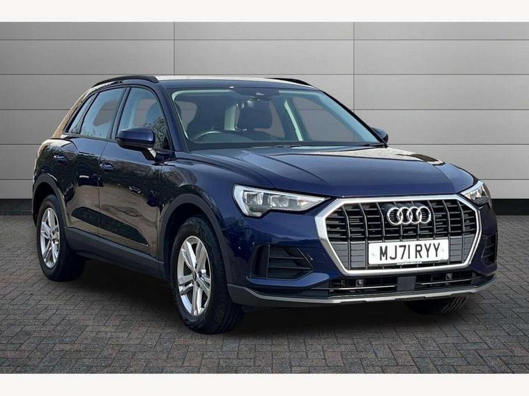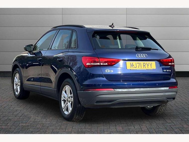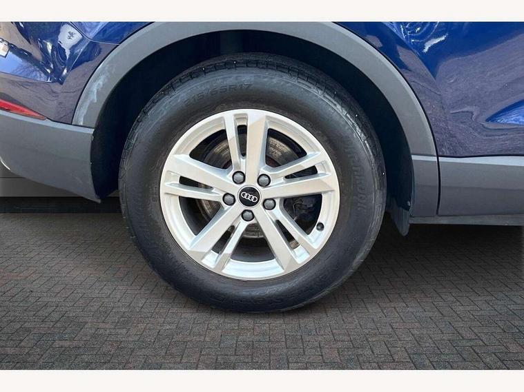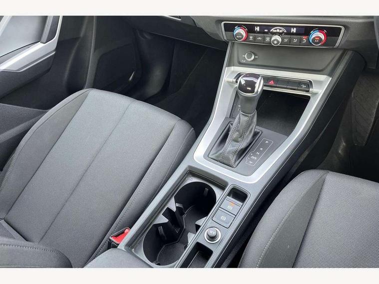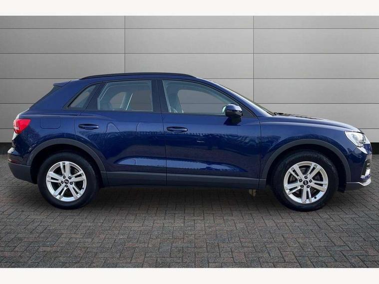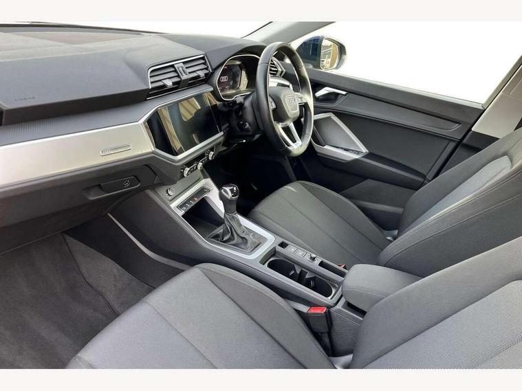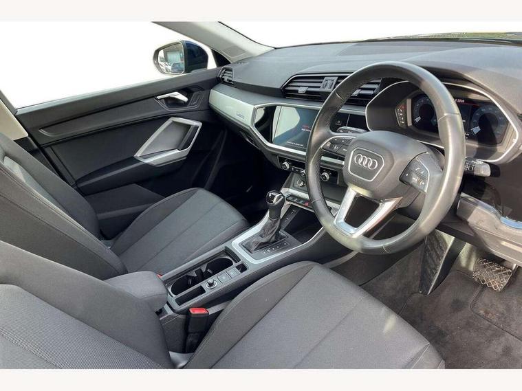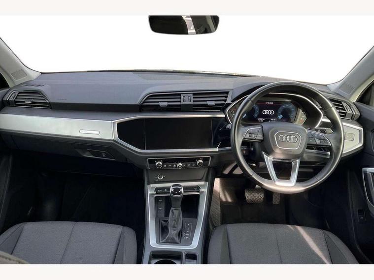 Amazon alexa Integration, Audi connect safety and service (e-call), Audi drive select, Audi lane departure warning, Audi Virtual Cockpit - 10.25" display, Bluetooth interface, Camera based traffic sign recognition, MMI Navigation Plus with high resolution 10.1 inch touchscreen colour display, Power operated tailgate, Progressive steering, Service interval indicator, Smartphone interface includes wireless Apple carplay/Android Auto, Start stop system with recuperation, Voice control system with natural language interaction, 48V Mild hybrid technology, Standard suspension, 2 USB-C ports with charge and data functions, 6 passive loudspeakers, DAB digital radio module, Acoustic windscreen, Auto dimming frameless rear view mirror, Black roof rails, Body colour door mirrors, Diffuser in grained anthracite, Electrically folding, adjustable and heated door mirrors with integrated LED side indicators and kerb view function for passenger side, Exterior bumper with wheel arch trims and side sill trims in grained black matt, Front and rear electric windows, Grained radiator protective grille, Halogen rear lights, LED headlights with LED daytime running lights, Rain and light sensors, 12V socket in rear centre console, 3 spoke multi-function leather steering wheel, 40:20:40 folding with manual adjustment for 60:40 forwards/backwards position and backrest angle, Dual zone electronic climate control, Front and rear floor mats, Front and rear headrests, Front and rear roof module including reading lights, Front centre armrest, Glove compartment lighting, Height and reach adjustable steering wheel, ISOFIX child seat mounting for front passenger with airbag deactivation and outer rear seat including top tether attachment point for outer rear seats, Luggage compartment light, Lunar silver cloth headlining, Manual front seats with height adjustment, Stainless steel luggage compartment sill finisher, Non smoking pack - Q3, 3x3 point rear seatbelts, 6 airbags - Driver, front passenger, curtain and side windows, Audi pre-sense front with pedestrain and cyclist recognition, Electrically operated child locks on rear doors, Electromechanical parking brake, Electronic stabilisation control including ABS, ASR and EDL, Hill descent control, Hill hold assist, Pre sense basic, Seatbelt monitoring, Tyre pressure warning, Warning triangle and first aid kit, Anti theft alarm, Anti theft wheel bolts, Remote central locking, Detail dashboard around MMI touch colour display in glass look, black with surround in aluminium look, Micrometallic silver inlay, 17" 5 twin spoke design alloy wheels, Tool kit, Tyre repair kit,