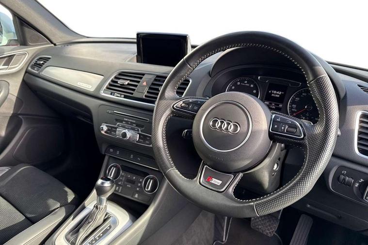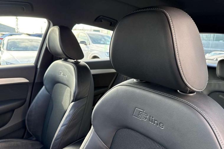 6.5" colour display screen, Audi drive select, Cruise control, Electro-mechanical PAS, Low washer fluid indicator, MMI - Multi Media Interface control system, On board computer, Remote electric boot opening/closing, Service interval indicator, Voice control system, Dynamic suspension, Audi music interface, DAB digital radio module, Acoustic windscreen, Aluminium window surround, Auto dimming rear view mirror, Body colour door mirrors, Body coloured bumpers, Chrome exhaust tailpipe, Coming home function, Door mirror integrated indicators, Front and rear electric windows, Front fog lights, Front lip spoiler, Heated windscreen washer jets, LED daytime running lights, LED headlights with headlight washers, LED rear lights, Light and rain sensor for auto activation of lights and windscreen wipers, Loading sill protector in stainless steel, Rear diffuser with platinum insert, Rear wiper, S Line body styling, Sunband for windscreen, 12V socket in rear centre console, 3 spoke multi-function Q design steering wheel with paddle shift, Aluminium door sill trims, Black cloth headlining, Door sill trim strips, Dual zone climate control, Electric front lumbar adjustment, Front and rear headrests, Front and rear velour floor mats, Front centre armrest with storage compartment and angle adjustment, Front sports seats, Height/reach adjust steering wheel, ISOFIX on front passenger and rear outer seats, Jack and tool kit, Perforated leather gearknob, Retractable luggage cover, Split fold rear seat, Storage compartment and 12V socket, Under floor storage in luggage area, 3x3 point rear seatbelts, ABS+Electronic Brake force Distribution, Curtain airbags, Driver and passenger airbags, Driver and passenger side airbags, EDL + ASR, Electrically operated child locks on rear doors, Electromechanical parking brake, ESP, First aid kit, Front passenger airbag deactivation, Head airbags, Seatbelt warning light, Tyre pressure monitoring system, Warning triangle, Locking wheel bolts, Remote central locking, Thatcham category 1 alarm + immobiliser, Matt brushed aluminium fascia and door trim inlays,