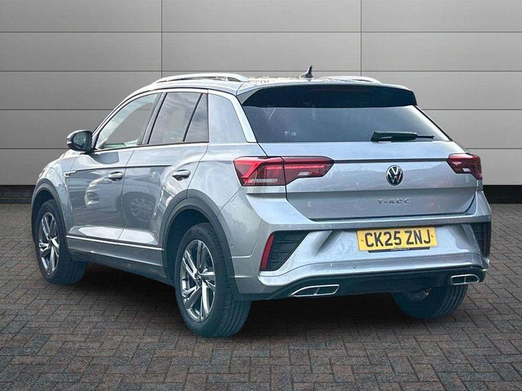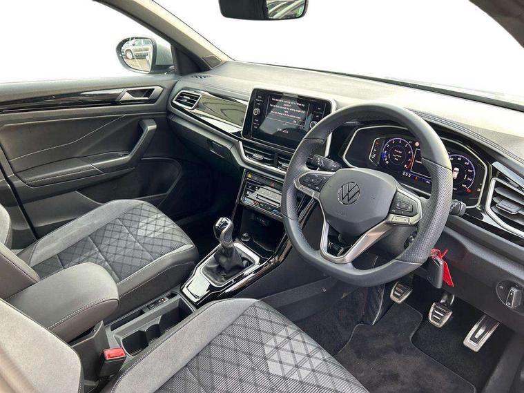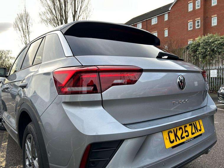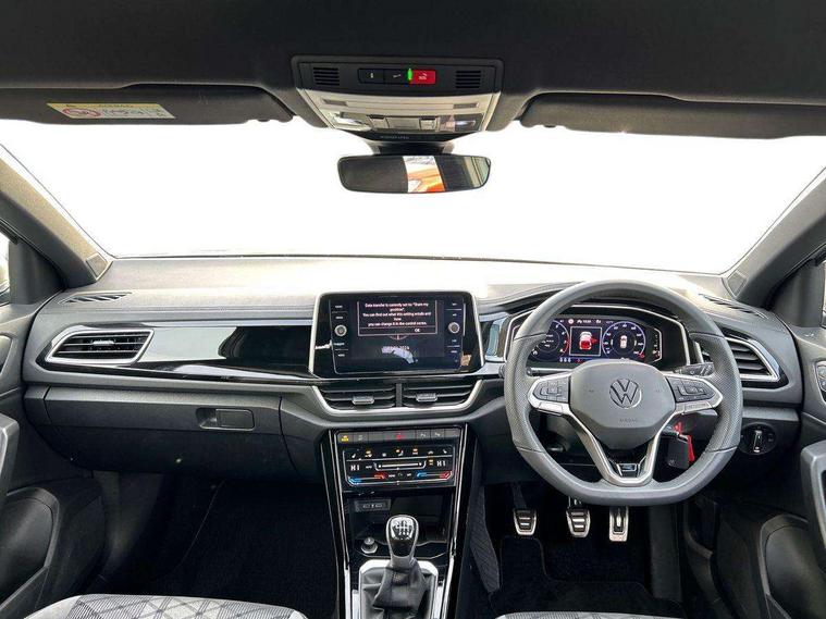 10.25" Digital cockpit pro, Advanced driver attention and drowsiness monitor, Emergency call service, Lane keeping system Lane Assist, Mobile phone interface, Modified key software - reduce switch off time for key status change to Long no motion, Online services, Park assist including front and rear parking sensors, Service interval indicator, Tailgate/trunk lid release from outside, Think blue trainer driver tips and journey analysis, Warning sound and light for front seatbelts unfastened, Wireless app connect, Battery regeneration during braking, Start/stop function with battery regeneration, DAB Digital radio, Diversity antenna for FM reception, Front and rear 6 speakers, Music playback - MP3, WMA and AAC files, Premium USB cable in choice of either Apple or Android smartphone compatibility, SD card slot, Simultaneous pairing of 2 compatible mobile devices, Title and cover art display, We Connect and We Connect Plus functionality, Auto dimming interior rear view mirror, Automatic hazard lights activation under emergency braking, Automatic headlight control with LED separate daytime running lights with coming/leaving home function, Body coloured exterior mirror housings and door handles, Electrically adjustable and heated door mirrors, Extended roof spoiler, Exterior mirrors aspherical on driver side, convex on front passenger side, External USB type C socket and charging sockets, Front windscreen wiper with intermittent wipe and 4 position delay, Heated rear window, LED 3rd brake light, LED rear combination lamps, LED rear number plate lights, Power windows with comfort operation and circuit breaker, Privacy glass for rear side windows and rear window, R-Line design body coloured bumpers, Rain sensor, Rear exhaust tailpipe, Rear fog light on one side and reversing lights on both sides, Rear side wing doors, Rear wash/wipe with intermittent wipe setting, Remote electrically foldable door mirrors, puddle lights and reverse activated passenger's door mirror, 12V power socket in centre console, 3 rear head restraints, 3 seat bench in 2nd row, 4 load lashing points in luggage compartment, Air care climatronic air conditoning system with active combination filter and 2-zone temperature control, Black roof lining, Chrome plated decorative trims, Chrome plated radiator grille inserts, air vent surrounds and light switch surrounds, Door and side trim panel with leatherette insert, Front + rear carpet mats, Front centre armrest, Front cupholders x 2, Front footwell illumination, Front reading light, Front scuff plates with R Line logo, Front seat back storage pockets, Glove compartment door with light, Instrument lighting, white adjustable panel illumination, Interior ambient lighting and surround lighting, Interior light delay, Isofix child seat preparation, Leather gearshift handle, Load-through provision with cup holder when folded down ('Unsplit rear seat bench, split folding backrest, with centre armrest), Luggage compartment lighting, Single front passenger seat, Stainless steel pedals, Storage compartment in left and right luggage area, Storage compartment in rear doors, Storage compartments in driver and front passenger doors, Sunvisors with illuminated vanity mirrors, Variable boot floor, height adjustable and removable, Driver assistance pack without proactive passenger protection - T-Roc, 3 point height adj front seatbelts + pretensioners, 3 point seatbelts in outer rear with ECE label, ABS, Child locks on rear doors, City emergency braking and pedestrian monitoring, Driver and front passenger airbag with front passenger airbag deactivation, Driver and front passenger safety-optimised head restraints, Drivers seatbelt reminder, Electronic parking brake, Electronic Stability Control (ESC) inc EDL (Electronic Differential Lock) and ASR (Traction Control), Front and rear passengers curtain airbag system including front side airbags, Hill start assist, Predictive pedestrian protection, Rear disc brakes, Two tone horn, Tyre pressure loss indicator, Volkswagen roadside assistance, Piano black decorative inserts in dashboard and front door trim panels, Trims for alloy wheels,
