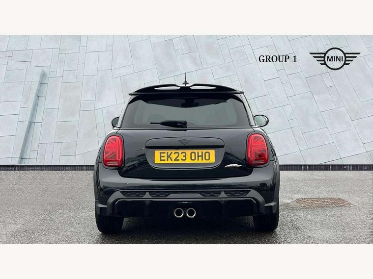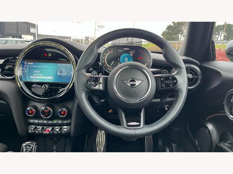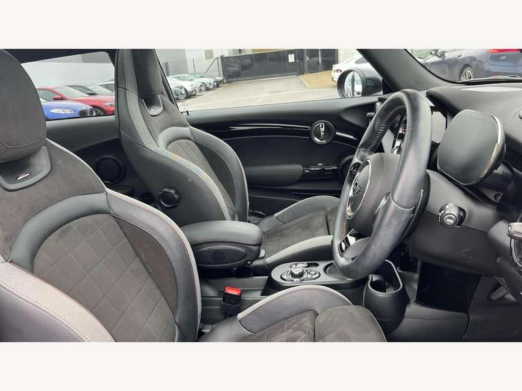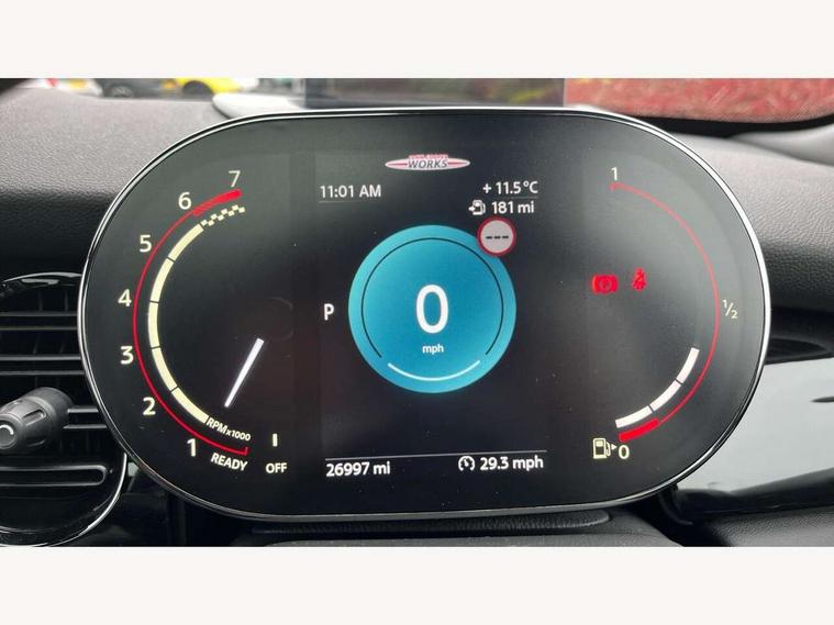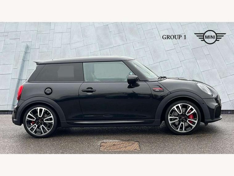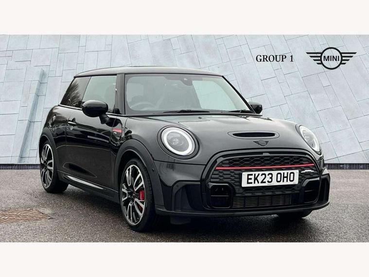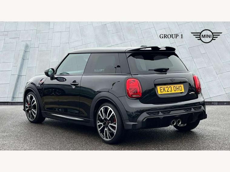 Apple CarPlay, Automatic start/stop function with brake energy recuperation, Compatible mobile phone bluetooth with audio streaming, Cruise control with brake assist, Electro-mechanical speed dependant steering assistance, Flexible car sharing preparation, Instrument cluster, MINI Driving Modes - centre toggle switch to control driving setting (sport, mid and green), Mini E-call, MINI TeleServices, On board computer, Rear park distance control, Service interval indicator, Double Vanos system, Eight speed steptronic sport transmission, with gearshift paddles, Fully variable valve control, High precision injection, Performance Control, 8.8" touchscreen with LED ring, FM tuner and DAB digital radio, 3rd brake light, Automatic headlight activation switch, Bonnet scoop, Dynamic brake lights, Electric front windows, Heated rear window, Heated windscreen washer jets, JCW Aerodynamic kit - Front and rear bumpers with sporty JCW styling and part-painted side sills with MINI John Cooper Works door sill finishers, John Cooper Works logo above an individual grille strut in Chilli Red, John Cooper Works rear spoiler, LED headlight with closed ring and daytime driving lights, Radiator grille piano black border with honeycomb structure in black matt, Rain sensor window wipers, Rear fog lights, Rear LED lights with union jack design, Rear window wiper, Side scuttle panel with integrated indicator, Side scuttle with MINI John Cooper Works logo in black high-gloss with red border, Sun/heat protection glass, Two central exhaust tailpipes with chrome finisher, White indicator lenses, 12V Accessory socket in centre console, 2 seat bench in 2nd row, 4 lashing eyes in luggage compartment, 60/40 split folding rear seat, Anthracite headliner including grab handles and clothes hooks, Carbon black colour line - Knee roll and door armrest, Chrome interior highlights, Cupholders, Front and rear isofix with front passenger airbag deactivation, Front floor mats in velour, Glove compartment, Height and length steering column adjustment, Interior lighting with 12 different colours across the dashboard, underneath door bezel with illuminated laser-engraved design on central display, JCW Sport seats with integrated headrests, adjustable thigh support and John Cooper Works logo, Leatherette gearshift lever and handbrake gaiters, LED reading lights, vanity mirror lights, front foot well light and spotlight on front seats, Manual air conditioning, Mechanical seat adjustment - forward/back & backrest for front seats and driver seat height adjust, Multifunction steering wheel, Passenger seat height adjuster, Rubberised stainless steel pedals, Single front passenger seat, Storage compartments in doors, Storage pocket on back of front seats, Sunvisors with vanity mirrors, Walknappa leather steering wheel with grey seam and John Cooper Works badge on Piano Black lower steering wheel spoke, Navigation pack without Apple Carplay - Mini Hatchback, Piano black exterior pack - JCW, 3 point seatbelts on all four seats, 4-piston fixed-calliper brakes front, 6 Airbags - front, side, head and seat belt tensioners, Anti-lock braking system (ABS), DSC - Dynamic Stability Control, Front and rear disc brakes, Red brake callipers with John Cooper Works logo, Single tone fanfare horn, Tyre pressure monitoring system, Alarm system with tilt sensor, monitoring doors, bonnet interior and tailgate, Electronic vehicle immobiliser, Start/stop toggle with keyless go, Tool kit,