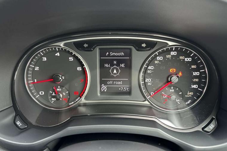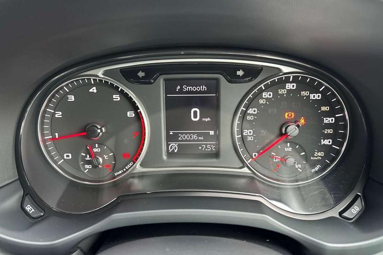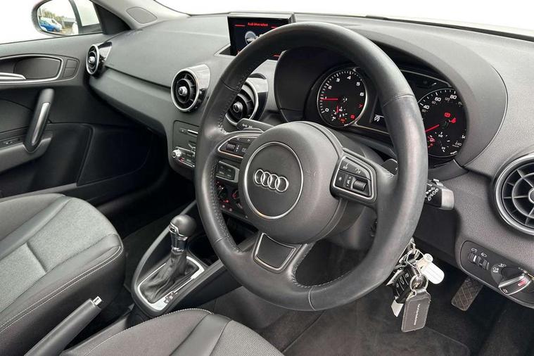 Audi drive select, Cruise control, Driver's information system, Electro-mechanical PAS, Low washer fluid indicator, Service interval indicator, Voice control system, Additional SD card reader, Audi music interface, Bluetooth audio streaming, DAB Digital radio, Adaptive brake lights, Body coloured bumpers, Body coloured door mirrors, Electric adjustable door mirrors, Electric front windows, Electric rear windows, Front fog lights, Heat insulating glass, Heated door mirrors, Heated rear windscreen, Polished stainless steel tailpipe, Rear wiper, 12V Accessory socket in centre console, 3 rear seats, 3 spoke leather multi-function sport steering wheel including paddle shift, Adjustable rear head restraints, Cupholders in centre console, Door sills trims with aluminium inlays, Front floor mats, Front head restraints, Front sports seats, Height adjustable front seats, Isofix attachments on outer rear seats, Jack and tool kit, Leather gear knob, Leather handbrake, Lumbar adjustment for front seats, Rake/reach adjustable steering wheel, Split folding rear seats, Titanium grey cloth headlining, 3x3 point rear seatbelts, ABS/EBD, Brake assist function, Driver and passenger side airbags, Driver/Front Passenger airbags, EDL, ESP with ASR, First aid kit, Front and rear seatbelt reminder, Front passenger airbag deactivation, Head airbags, Height adjustable front seatbelts, Tyre pressure monitor, Warning triangle, Locking wheel bolts, Remote central locking with 2 remote folding keys, Thatcham category 1 alarm + immobiliser, High gloss black air vent sleeves, Tyre repair kit,