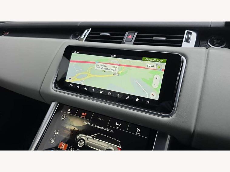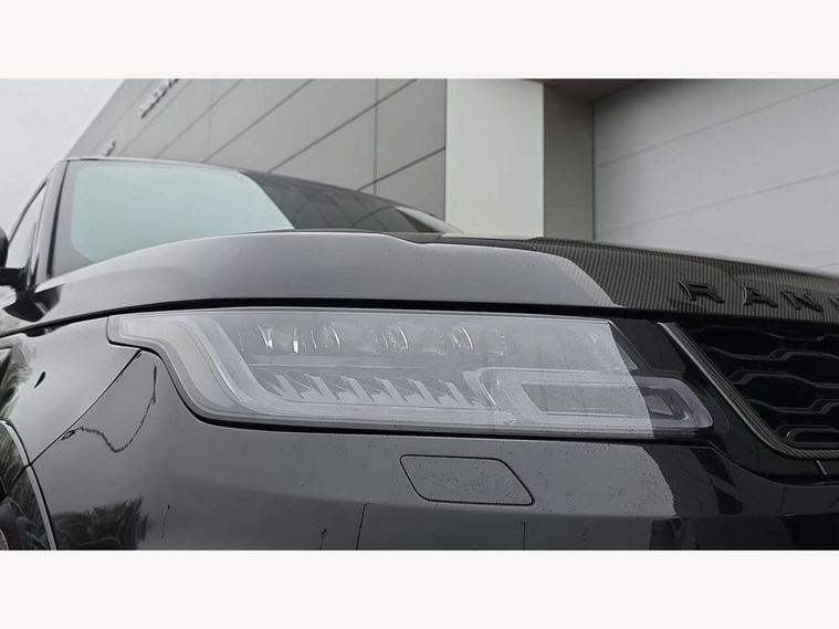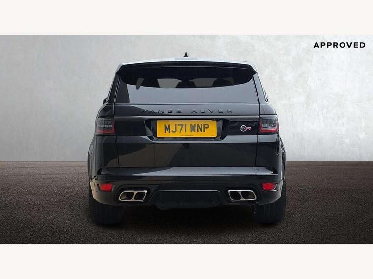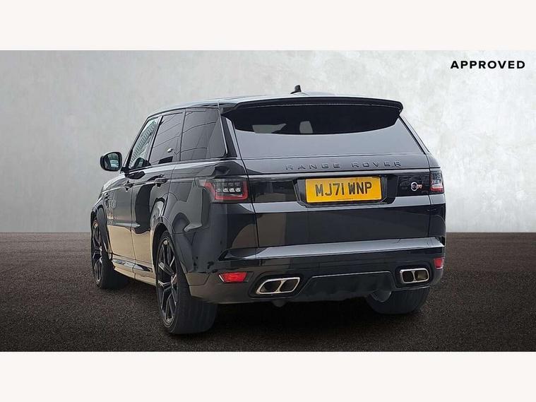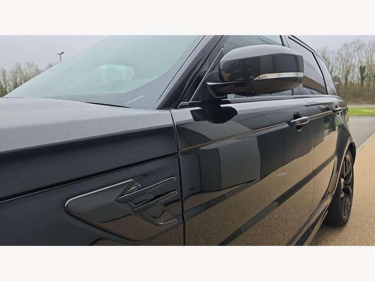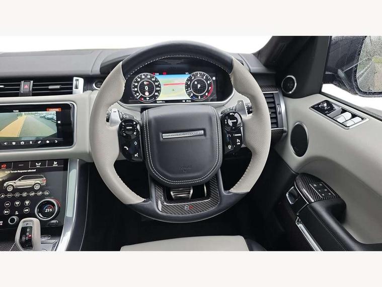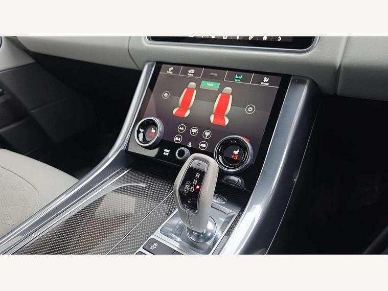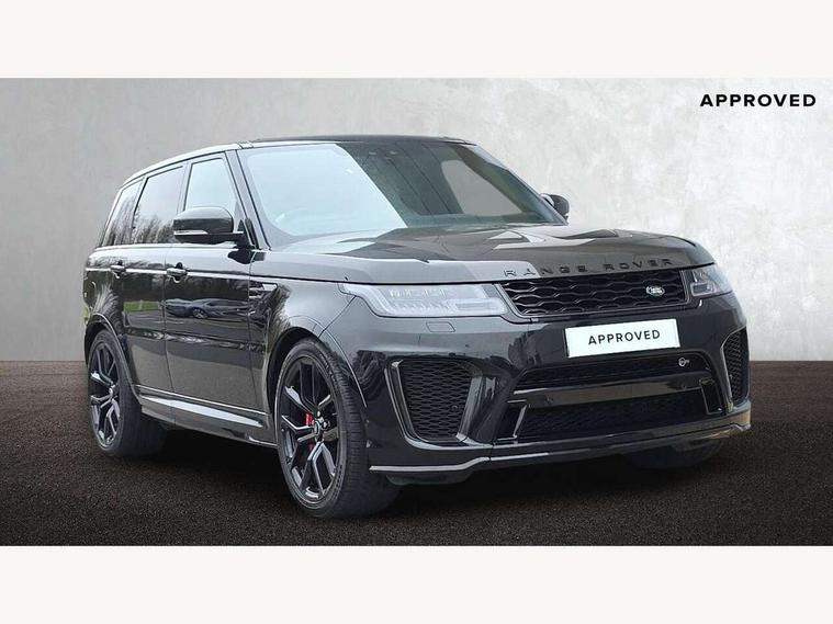 360 Parking aid, All Terrain Info Centre, Android Auto, Apple car play, Bluetooth connectivity, Clear exit monitor, Driver condition monitor, Electric power assisted steering (EPAS), Incontrol apps in vehicle touchscreen, Interactive Driver display instrument cluster, Mist sensor, Navigation pro system with 10" touch screen, app interface and media storage, Powered gesture tailgate/boot lid, Pro services and wifi hotspot, Push button start, Rear traffic monitor, Remote premium - Upgraded Incontrol remote app including remote climate control (engine dependent), remote lock + Unlock and remote beep + flash, Touch pro duo system, Traffic sign recognition with adaptive speed limiter, Trip computer, Adaptive dynamics, All terrain progress control, Carbon fibre engine covers with SVR logo, Configurable dynamics, Electronic active differential with brake torque vectoring, Gradient release control (GRC), SVR sports suspension with dynamic response (active roll control), Terrain Response 2 with dynamic program, Twin speed transfer box, Bluetooth audio streaming, DAB Radio (Digital Audio Broadcasting), Incontrol protect - SOS emergency call with automatic collision detection, optimised assistance call and Incontrol remote app essential, USB/aux input socket, Acoustic front and toughened rear side glass, Acoustic laminated front windows, Active exhaust system with integrated exhaust mounted quad tailpipes, Adaptive brake lights, Auto dimming interior rear view mirror, Automatic headlights, Body coloured side sills and bumpers corners, Centre high mounted stop light, Electric windows with one touch open/close and anti trap, Electrical towing preparation, Follow me home lighting, Front and rear recovery eyes, Headlight power wash, Heated rear window, Heated windscreen includes heated washer jets, Illuminated metal treadplates with brand name script, LED rear lamps, Power fold, auto-dimming, heated door mirrors with memory and approach lights, Rain sensing windscreen wipers, Rear fog lights, Rear side wing doors, Rear wash/wipe, Remote window closing, Side repeater indicators in mirror, SVR badge, SVR exterior styling, Switchable sports exhaust, Trailer stability assist, Unique light weight exhaust system, 16 way driver/passenger electrically adjustable SVR performance seats with memory, 2 way rear head restraints, 3 seat bench in 2nd row, 4 way lumbar support with memory function, 60/40 split folding rear seat, Aluminium gear shift paddles, Auto air recirculation, Bright metal foot pedals, Centre console with armrest, Climate control memory, Configurable Ambient interior lighting, Customer configurable single point entry, Driver's footrest, Extended leather upgrade includes door top rolls and leather instrument panel mid section, Front and rear cupholders, Front and rear premium carpet mats, Front door storage space, Front map lights, Front seat back map pockets, Front stowage pocket, Front/rear passenger grab handles, Heated steering wheel, Integrated front head restraints, Isofix child seat preparation, Loadspace light, Loadspace mounting provisions, Lockable glovebox, Multifunction steering wheel, Pollen filter, Power socket, Reach/rake electric adjustable steering column + entry/exit tilt away, Rear centre armrest, Rear ISOFIX, Roller blind loadspace cover, Single front passenger seat, Sports pedals, SVR leather steering wheel, SVR Performance seats, Three 12V accessory power outlets, Smartphone pack - Range Rover Sport, SVR Carbon fibre exterior pack with exposed carbon fibre bonnet - Range Rover Sport, 3 point seatbelts on all seats, Anti-lock braking system (ABS), Brake pre-fill technology, Cornering brake control (CBC), Curtain airbags, Customer configurable autolock, DSC - Dynamic Stability Control, Dual stage driver/passenger airbags, EBD - Electronic brakeforce distribution, Electric parking brake, Electronic traction control, Emergency braking includes city, urban AEB and pedestrian, Front seatbelt pretensioners, Gradient acceleration control, Height adjustable front seatbelts, High speed emergency braking, Hill descent control, Hill launch assist, Low traction launch, Passenger seat occupant detector with front airbags, Power operated child locks, Roll stability control, Seatbelt warning, TPMS (Tyre pressure monitoring system), Immobiliser, Intrusion sensor, Keyless entry, Locking wheel nuts, Perimetric and volumetric anti theft alarm, Remote locking, Extended carbon fibre trim finisher, 22" 5 split spoke forged gloss black finish alloy wheels - Style 5083,