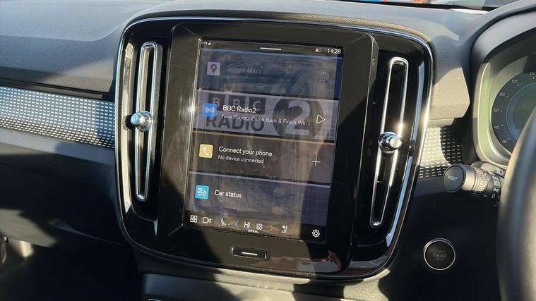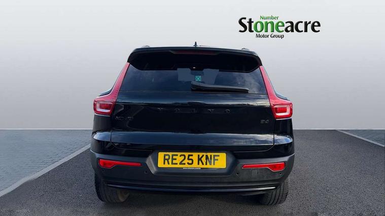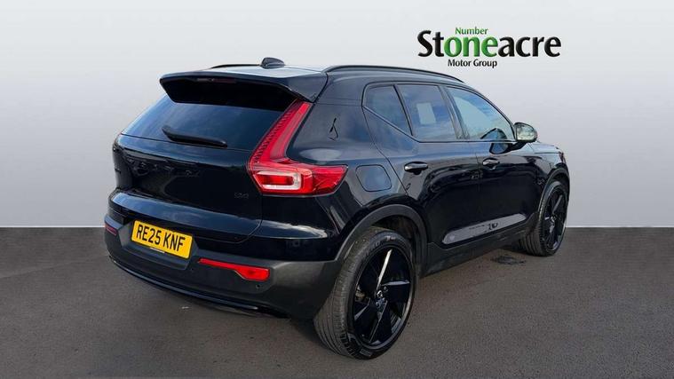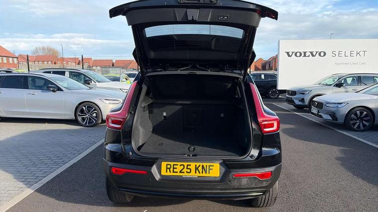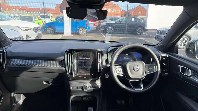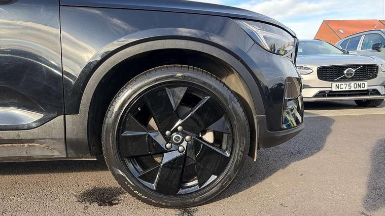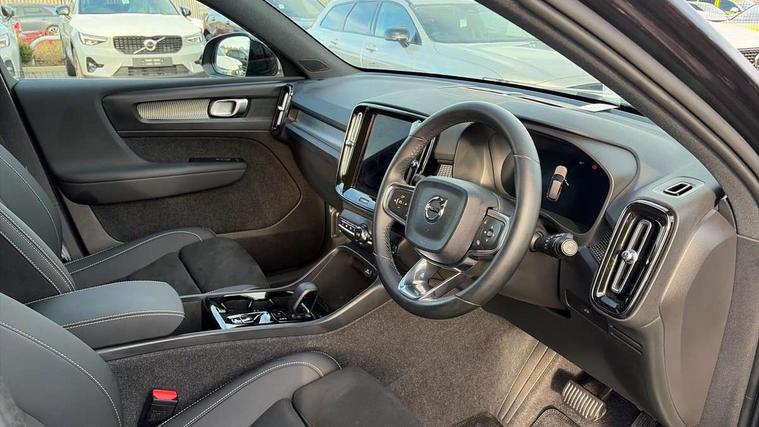 12.3" Progressive Driver Display, 9" centre console portrait touch screen, Adjustable steering wheel force, Android auto (Wired), Apple carplay (wired), Bluetooth handsfree system, Driver alert control, Driver assistance (pilot assist and adaptive cruise control), Driver awareness - Blind spot information system with steer assist, cross traffic alert with autobrake and rear collision warning and mitigation, E-call, Front park assist, Google automotive services - Enabled entertainment apps, navigation with google maps, voice recognition with google assistant, Hands free power tailgate, Intelligent speed assistance, Lane keeping aid, Oncoming Lane Mitigation, Rear park assist, Speed sensitive steering, Volvo cars services with app - Driving journal, emergency and breakdown call, engine remote start, remote door locking/unlocking and vehicle dashboard, Wireless/Inductive Mobile Phone Charging, Automatic transmission with start/stop and manual change functions, Dynamic chassis, DAB Digital radio, Steering wheel mounted remote controls, Adaptive brake lights with high level LED brake lights, Auto dimming feature for exterior door mirrors, Auto dimming interior mirror, Automatic headlamp levelling, Automatic LED Headlights + Active high beam incorporating daytime running lights, Colour coordinated auto folding and heated power door mirrors, Dark tinted windows - rear side windows and rear screen, Front aluminium tread plates, Front and rear electric windows, High gloss black front and rear skid plate, High gloss black front bumper deco, High gloss black front grille strikethrough and ironmark, High gloss black rear model, engine and volvo logo badges, High gloss black window trim, Home safe and approach lighting, Integrated roof rails in high gloss black, LED front fog lights, Puddle lights, Rain sensor with automatic windscreen wiper activation, Rear side wing doors, Rear wiper, Roof antenna, Roof spoiler, Visible VIN plate, 12V socket in front tunnel console and luggage compartment, 2-Zone electronic climate control with CleanZone air quality system and pollen filter, 3 seat bench in 2nd row, 3 Spoke tailored steering wheel with chrome trim, 60/40 versatile split folding rear seat, Centre console cupholders and storage, Charcoal headlining, Connect textile/microtech upholstery, Flexible load floor and grocery bag holder, Floor mats, Front cabin courtesy lights, Front door pocket, front cupholder, ambient front door, rear reading, rear courtesy, instrument panel and tailgate lighting, Front footwell illumination, Front headrests, Front reading lights, Front seat cushion extensions, Front side step illumination (under door), Glovebox bag hook, Heated front seats, Height adjustable passenger seat, Height/reach adjustable steering column, High gloss centre tunnel deco, Illuminated glovebox, Illuminated luggage compartment, Illuminated vanity mirrors + ticket holder, Integrated waste bin, Isofix attachments on outer rear seats, Load cover, Load protection net, Multi directional lumbar support for driver and passenger seat, Power driver seat with memory + exterior mirrors memory, Rear armrest with cupholders, Rear headrests, Single front passenger seat, Underfloor cargo storage, Climate pack without heated front seats - XC40, 3x3 point rear seatbelts, City safety with steering support with Pedestrian + cyclist + front collision warning with full auto brake and rear auto brake, Driver and passenger airbags, Drivers knee airbag, Electronic parking brake with auto hold, First aid kit, Front and outer rear seatbelt reminder and pretensioners, Front seats SIPS airbags, Hill descent control, Hill start assist, Inflatable curtain, Passenger airbag cut-off device, Power child locks on rear doors, Road sign information display, Run off Road Protection, SIPS (Side Impact Protection System), Slippery road and hazard light alert, Stability and Traction Control with Spin control, Engine Drag Control and Corner Traction Control, Tyre pressure monitoring system, Vehicle deceleration control with Anti-lock Brake System, Electronic Brake Distribution and Emergency Brake Assist, Warning triangle, WHIPS whiplash protection system - front, 2 x Key integrated remote control central locking including with deadlocking system and auto open/close windows, Anti-theft alarm including immobiliser/volume sensor + level sensor, Keyless drive includes keyless entry and keyless start, Locking wheel nuts, 20" 5 spoke high gloss black alloy wheels,