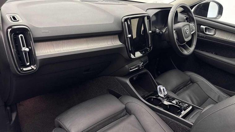 12.3" Progressive Driver Display, 360 degree surround view parking camera with side proximity sensors, 9" centre console portrait touch screen, Adjustable steering wheel force, Android auto (Wired), Apple carplay (wired), Bluetooth handsfree system, Driver alert control, Driver assistance (pilot assist and adaptive cruise control), Driver awareness - Blind spot information system with steer assist, cross traffic alert with autobrake and rear collision warning and mitigation, E-call, Front park assist, Google automotive services - Enabled entertainment apps, navigation with google maps, voice recognition with google assistant, Hands free power tailgate, Intelligent speed assistance, Lane keeping aid, Oncoming Lane Mitigation, Rear park assist, Speed sensitive steering, Volvo cars services with app - Driving journal, emergency and breakdown call, engine remote start, remote door locking/unlocking and vehicle dashboard, Wireless/Inductive Mobile Phone Charging, Automatic transmission with start/stop and manual change functions, Dynamic chassis, DAB Digital radio, Premium Sound by Harman Kardon, Dolby Pro Logic II Surround Sound, Dirac Unison, 12 speakers/600W and subwoofer, Steering wheel mounted remote controls, Active bending pixel LED headlights with adaptive shadow technology, Active high beam incorporating daytime running lights, Adaptive brake lights with high level LED brake lights, Auto dimming feature for exterior door mirrors, Auto dimming interior mirror, Automatic headlamp levelling, Dark tinted windows - rear side windows and rear screen, Front aluminium tread plates, Front and rear electric windows, Headlight cleaning system, High gloss black front and rear skid plate, High gloss black front bumper deco, High gloss black mesh front grille with high gloss black surround, High gloss black window trim, Home safe and approach lighting, Integrated roof rails in high gloss black, LED front fog lights with cornering function, Power glass tilt and slide panoramic sunroof with sun curtain, Puddle lights, Rain sensor with automatic windscreen wiper activation, Rear side wing doors, Rear wiper, Roof antenna, Roof spoiler, Visible VIN plate, 12V socket in front tunnel console and luggage compartment, 2-Zone electronic climate control with CleanZone air quality system and pollen filter, 3 seat bench in 2nd row, 3 Spoke tailored steering wheel with chrome trim, 60/40 versatile split folding rear seat, Centre console cupholders and storage, Flexible load floor and grocery bag holder, Floor mats, Front cabin courtesy lights, Front door pocket, front cupholder, ambient front door, rear reading, rear courtesy, instrument panel and tailgate lighting, Front footwell illumination, Front headrests, Front reading lights, Front seat cushion extensions, Front side step illumination (under door), Glovebox bag hook, Heated front seats, Height/reach adjustable steering column, High gloss centre tunnel deco, Illuminated glovebox, Illuminated luggage compartment, Illuminated vanity mirrors + ticket holder, Integrated waste bin, Isofix attachments on outer rear seats, Load cover, Load protection net, Multi directional lumbar support for driver and passenger seat, Power driver seat with memory + exterior mirrors memory, Power folding rear headrests, Power passenger seat, Rear armrest with cupholders, Single front passenger seat, Underfloor cargo storage, Climate pack without heated front seats - XC40, 3x3 point rear seatbelts, City safety with steering support with Pedestrian + cyclist + front collision warning with full auto brake and rear auto brake, Driver and passenger airbags, Drivers knee airbag, Electronic parking brake with auto hold, First aid kit, Front and outer rear seatbelt reminder and pretensioners, Front seats SIPS airbags, Hill descent control, Hill start assist, Inflatable curtain, Passenger airbag cut-off device, Power child locks on rear doors, Road sign information display, Run off Road Protection, SIPS (Side Impact Protection System), Slippery road and hazard light alert, Stability and Traction Control with Spin control, Engine Drag Control and Corner Traction Control, Tyre pressure monitoring system, Vehicle deceleration control with Anti-lock Brake System, Electronic Brake Distribution and Emergency Brake Assist, Warning triangle, WHIPS whiplash protection system - front, 2 x Key integrated remote control central locking including with deadlocking system and auto open/close windows and sunroof, Anti-theft alarm including immobiliser/volume sensor + level sensor, Keyless drive includes keyless entry and keyless start, Locking wheel nuts,