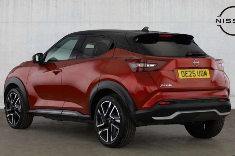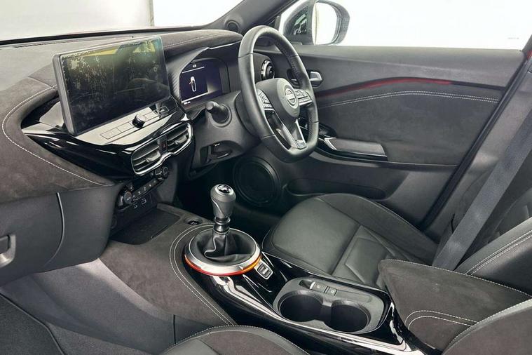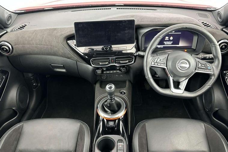 12.3" full colour TFT screen combimeter, Drive modes select (Eco, normal and sport), Emergency and breakdown call, Front parking sensor, Idle start/stop system, Intelligent driver alert system, Intelligent lane intervention, Lane departure warning system, Nissan connect 12.3" touch screen entertainment system, Nissan connect nav with TomTom traffic, Nissan connect services, Outside temperature sensor, Power Steering, Rear parking sensor, Stop/start button, Traffic sign recognition, Trip computer, Voice recognition, WiFi connectivity, Wireless Apple CarPlay and Google Android auto, Wireless Smartphone charger, 10 Bose speakers 6 speakers and 2 headrest speakers for driver/passenger seats, 2 X Rear console USB port, Bluetooth system, USB, Aux-in and 12V socket, Bose personal sound stage control, DAB Digital radio, Auto dimming frameless rear view mirror, Automatic hazard signal with emergency stop signal, Body colour door handles, Electrically adjustable door mirrors with integrated indicators, Follow me home headlights, Front and rear electric window with one touch driver window, Heated and auto folding door mirrors, High beam assist, LED 3rd brake light, LED daytime running lights, LED front fog lights, LED headlamps, LED rear fog lamp, LED rear lamps, One touch passenger window, Rain sensor windscreen wipers, Rear privacy glass, Rear side wing doors, Rear wiper, Roof spoiler, Shark fin roof antenna in solid Black, Three blink turn signal, 3 height adjustable rear headrests, 3 seat bench in 2nd row, 60/40 split folding rear seat, Automatic climate control, Card holder on driver sunvisor, Door ambient lighting, Driver seat back pocket, Driver side rear coat hanger, Driver/passenger sunvisors and vanity mirrors, Front and rear cabin lights, Front armrest, Front door pockets with bottle holders, Front head restraints, Front/rear passenger grab handles, Gear console ambient circle lighting, Height adjustable driver's seat, Internal chrome door handles, Leather gearshift knob, Luggage board, Luggage space lighting, Monoform sporty seats, Multifunction steering wheel, Passenger seat back pocket, Rear door bottle holders, Single front passenger seat, Smooth synthetic leather steering wheel, Synthetic leather kneepad, Telescopic steering wheel adjustment, Two cupholders in front centre console, Two rear isofix child seat anchorage points with top tether, Welcome light and console tray ambient lighting, Advanced safety shield pack - Juke Manual, Heat pack with height adjustable passenger seats - Juke, Interior personalisation pack - Juke, Satin grey exterior personalisation pack - Juke, ABS with EBD and brake assist, Active ride control, Active Trace Control, Driver and passenger airbags, Driver and passenger side airbags, Electric handbrake with auto hold function, Electronic Stability Programme (ESP), Front and rear curtain airbags, Height adjustable seatbelts, Hill start assist, Intelligent emergency braking with pedestrian and cyclist recognition, Rear door child safety locks, Seatbelt reminder for driver/front passenger and rear seats, Three 3 point rear seatbelts, Traction control, Tyre pressure monitoring system, VDC Dynamic Vehicle Control, Alarm, Immobiliser, Intelligent key and start push button with walk away lock and approach unlock functions, Remote central locking, 19" Alloy wheels with deep 3D effect, Tyre puncture repair kit,
