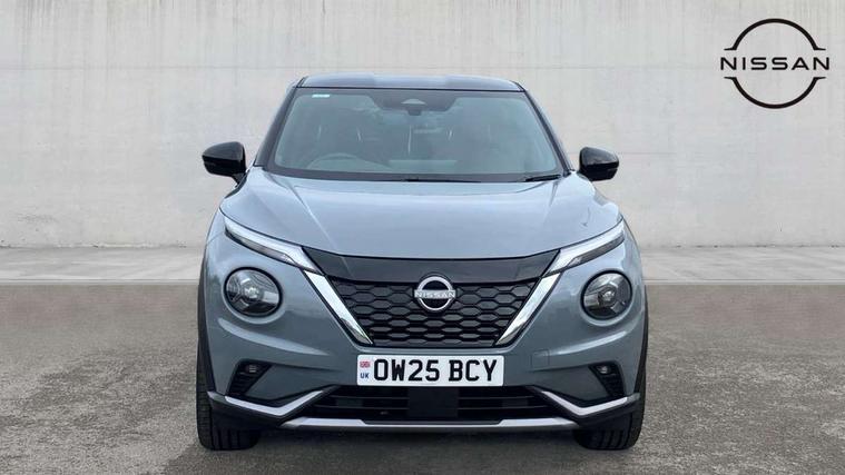 12.3" full colour TFT screen combimeter, Drive modes select (Eco, normal and sport), e-Pedal step, Emergency and breakdown call, EV mode switch, Front parking sensor, Intelligent driver alert system, Intelligent lane intervention, Lane departure warning system, Nissan connect 12.3" touch screen entertainment system, Nissan connect nav with TomTom traffic, Nissan connect services, Outside temperature sensor, Power Steering, Rear parking sensor, Stop/start button, Traffic sign recognition, Trip computer, Voice recognition, WiFi connectivity, Wireless Apple CarPlay and Google Android auto, Wireless Smartphone charger, 10 Bose speakers 6 speakers and 2 headrest speakers for driver/passenger seats, 2 X Rear console USB port, Bluetooth system, USB, Aux-in and 12V socket, Bose personal sound stage control, DAB Digital radio, Auto dimming frameless rear view mirror, Automatic hazard signal with emergency stop signal, Body colour door handles, Electrically adjustable door mirrors with integrated indicators, Follow me home headlights, Front and rear electric window with one touch driver window, Heated and auto folding door mirrors, High beam assist, LED 3rd brake light, LED daytime running lights, LED front fog lights, LED headlamps, LED rear fog lamp, LED rear lamps, One touch passenger window, Rain sensor windscreen wipers, Rear privacy glass, Rear side wing doors, Rear wiper, Roof spoiler, Shark fin roof antenna in solid Black, Three blink turn signal, 3 height adjustable rear headrests, 3 seat bench in 2nd row, 60/40 split folding rear seat, Automatic climate control, Card holder on driver sunvisor, Door ambient lighting, Driver seat back pocket, Driver side rear coat hanger, Driver/passenger sunvisors and vanity mirrors, Front and rear cabin lights, Front armrest, Front door pockets with bottle holders, Front head restraints, Front/rear passenger grab handles, Gear console ambient circle lighting, Height adjustable driver's seat, Internal chrome door handles, Leather gearshift knob, Luggage board, Luggage space lighting, Monoform sporty seats, Multifunction steering wheel, Passenger seat back pocket, Rear door bottle holders, Single front passenger seat, Smooth synthetic leather steering wheel, Synthetic leather kneepad, Telescopic steering wheel adjustment, Two cupholders in front centre console, Two rear isofix child seat anchorage points with top tether, Welcome light and console tray ambient lighting, Heat pack with height adjustable passenger seats - Juke, Interior personalisation pack - Juke, ProPilot pack - Juke Auto, Satin grey exterior personalisation pack - Juke, ABS with EBD and brake assist, Active ride control, Active Trace Control, Driver and passenger airbags, Driver and passenger side airbags, Electric handbrake with auto hold function, Electronic Stability Programme (ESP), Front and rear curtain airbags, Height adjustable seatbelts, Hill start assist, Intelligent emergency braking with pedestrian and cyclist recognition, Rear door child safety locks, Seatbelt reminder for driver/front passenger and rear seats, Three 3 point rear seatbelts, Traction control, Tyre pressure monitoring system, VDC Dynamic Vehicle Control, Alarm, Immobiliser, Intelligent key and start push button with walk away lock and approach unlock functions, Remote central locking, 19" Aero alloy wheels, Tyre puncture repair kit,