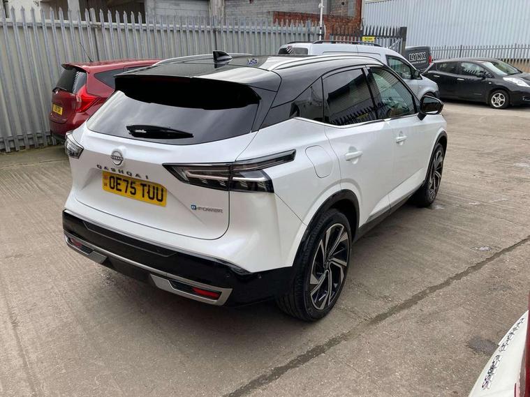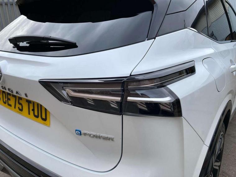2 front USB-C ports, 2 rear USB-C ports, 360 degree Intelligent around view monitor with moving object detection, Advanced windscreen head up display, Blind spot warning, Drive assist custom mode, Drive modes (sport, normal, eco), Driver drowsiness and attention warning, e-Pedal step, Electric speed sensitive power steering, Emergency and breakdown call, Emergency lane keep assist, Emergency Stop Signal (ESS), Engine start/stop button, EV mode switch, Event data recorder, Front and rear parking sensors, Full Digital 12.3" TFT Digital Combimeter, Google virtual personal assistance, Hands free power tailgate, Idle stop/start system, In-car WIFI hotspot, Intelligent Cruise control (ICC), Intelligent driver alert system, Intelligent forward collision warning, Intelligent lane intervention, Intelligent speed assist, Lane departure warning system, Nissan connect 12.3 inch touchscreen infotainment system, Nissan connect navigation with google maps, Nissan connect services 2.0 (Google Automotive System), Outside temperature sensor, Propilot assist with Navi-Link, ProPilot park, Rear cross traffic alert, Remote control services - door locks, lights, horn and car locator, Reversing detection, Traffic jam pilot, Traffic sign recognition with legal speed adjustment, Trip computer, Wireless Apple CarPlay/Android Auto, Wireless charging pad, Limited slip differential, Multi link suspension, 10 Bose speakers - 2 tweeters, 6 high and medium frequency door speakers and 2 in subwoofer, AM/FM audio system with DAB, Bluetooth audio streaming, Bose acoustimass bass box, Digital amplifier, Auto dimming frameless rear view mirror, Auto rear wiper when reversing, Body colour mirror caps, Body coloured bumpers, Body coloured door handles, Bodyside mouldings, Chrome side window finisher, e-POWER badging, Electric auto folding door mirrors, Electrically adjustable and heated door mirrors with LED turn indicator, Follow me home headlights, Glossy black bumper inserts and fenders, High beam assist, Intelligent auto headlights, LED 3rd brake light, LED daytime running lights, LED headlights with adaptive driving beam, LED rear lights, LED sequential turn lights, One touch front and rear electric windows with remote opening and closing, One touch passenger window, Rain sensing wipers, Rear privacy glass, Rear roof spoiler, Rear side wing doors, Rear styling plate, Reverse tilting door mirrors, Shark fin antenna, Silver roof rails, Splash free rain sensing wipers, Super RED rear LED lights, Super UV and infrared cut glass, Thermaclear heated windscreen, 12v power socket in dashboard and luggage, 3 bench rear seats in 2nd row, 3 rear headrests, 60/40 split folding rear seat bench, Chrome interior door handles, Dark headlining, Driver and passenger sunvisors with illuminated vanity mirrors, Driver seat back pocket, Dual zone automatic climate control with pollen filter, e-POWER shifter, Electric 4-way lumbar support for front seats, Electrically adjustable driver seat with massage and memory functions, Fixed Glass roof with electric sunshade, Front centre console and armrest, Front cupholders, Front door with bottle holders, Heated front seats, Heated steering wheel, Height adjustable front headrests, Height adjustable passenger seat, Luggage board system, Luggage space lighting, Multifunction steering wheel, Passenger seat back pocket, Quilted premium leather upholstery, Rear door bottle holders, Rear seat armrest with 2 cupholders, RGB ambient light (Full area coverage), Single front passenger seat, Smooth leather steering wheel, Tilt/telescopic adjustable steering wheel, Two rear isofix child seat anchorage points with top tether, 3x3 point rear seatbelt pretensioners + load limiters, ABS with EBD and brake assist, Autonomous emergency braking, Child locks on rear doors, Curtain and front side, far side airbags, Driver and passenger airbags, Driver, passenger and 2nd row rear seat belt reminder, Electric handbrake with auto hold function, Front seatbelt pretensioners + load limiters, Height adjustable front seatbelts, Hill start assist, Intelligent blind spot intervention, intelligent front emergency braking, Intelligent rear automatic braking, Tyre pressure monitoring system, Vehicle dynamic control, Advance intelligent key with driver memory storage (seats, mirrors, audio), Engine immobiliser, Remote central door locking with deadlocking, Thatcham alarm, 20" Diamond cut alloy wheels, Tyre puncture repair kit,