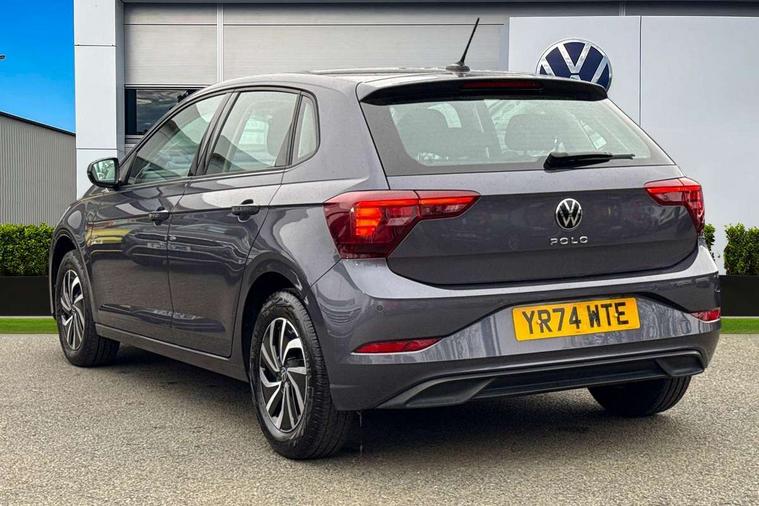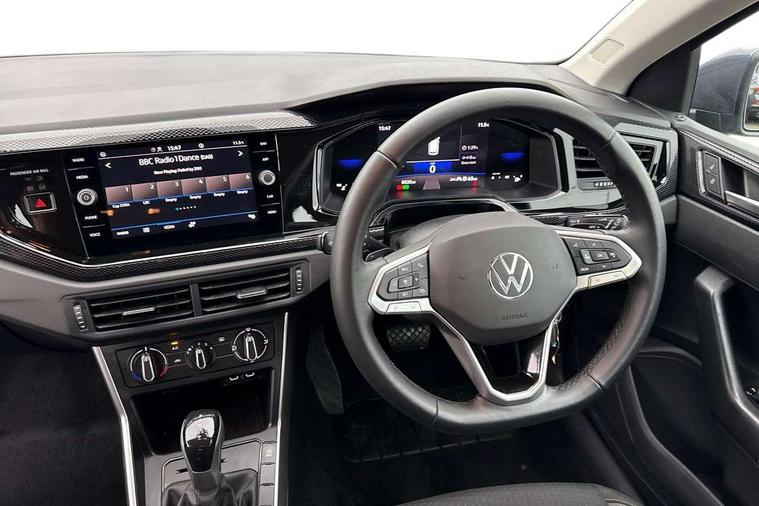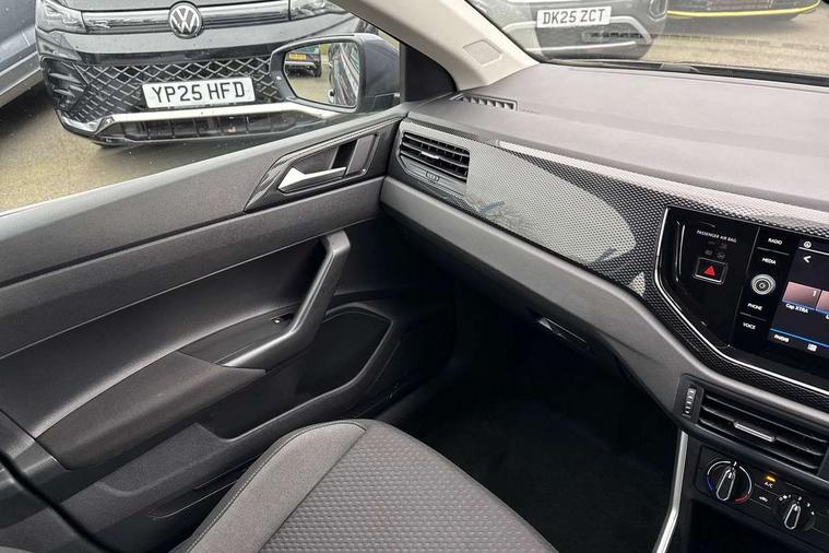 Adaptive cruise control with follow-to-stop and speed limiter, Advanced driver attention and drowsiness monitor, Bluetooth mobile phone interface, Dynamic road sign display, Emergency call service, Multifunction camera, Power assisted speed sensitive steering, Preparation for navigation system with media and internet package, Preparation for We connect and We connect plus, Speedo and rev counter, electronic odometer, trip, service interval display and exterior temperature gauge, Standard rear axle, Travel Assist - Lane keeping system and traffic jam assist, Travel assist including emergency assist, Trip computer, Warning signal and warning light for front and rear seatbelts not fastened, Washer fluid level indicator, Wireless app connect, Front wheel drive, Rear shock absorpion, Start-stop system with battery regeneration (recuperation - energy recovery during braking), DAB Digital radio, Diversity antenna for FM reception, Front and rear 6 speakers, Automatic dimming interior rear view mirror, Automatic headlight control with LED separate daytime running lights with coming/leaving home function, Body colour bumpers with chrome inserts, Body colour door handles, Body colour door mirrors, Electric front windows, Engine badge deletion, Headlight range adjustment, Heat insulating and laminated safety glass windshield, Heat insulating darkened glass in side and rear windows, LED Headlights, LED rear combination lamps, Power folding adjustable/heated exterior mirrors and front passenger exterior mirror lowering function, Rain sensor, Rear electric windows, Rear fog light, Rear side wing doors, Rear windscreen washer and wiper with interval delay, Third brake light, 12V power socket in centre console, 2 front and 2 rear reading lights with switch off delay and dimmer, 2 USB-C ports in the front, 2 USB-C charging sockets on the center console in the rear, 3 rear head restraints, 60/40 split folding rear seat and rear seat bench not split, Ceramique roof lining, Chrome plated radiator grille inserts, air vent surrounds and light switch surrounds, Door and side trim panel, Driver and front passenger seat height adjustment, Driver/passenger sunvisors with illuminated vanity mirrors, Front centre armrest, Front seat backrest storage pockets, Front standard seats, Handbrake lever handle in leather, Hartley/Thomas cloth upholstery, Headliner in recycled material, Isofix child seat preparation easy-fit (for two outer rear seats, and front passenger seat) compatible with I-size, Leather trimmed gear knob, Luggage compartment cover, Luggage compartment lighting, Removable luggage compartment floor, Single front passenger seat, Standard climatic zones, Standard pedal cluster, Three spoke leather wrapped multifunction steering wheel with shifting paddles, Light and vision pack - Polo, 3 point height adj front seatbelts + pretensioners, 3x3 point rear seatbelts, ABS, Driver and front passenger airbag with front passenger airbag deactivation, Drivers and front passengers safety optimised head restraints, ESC (Electronic stability control) + EDL (Electronic Differntial lock) and ASR (Traction control), Extended and predictive pedestrian/ cyclist protection, Front assist with autonomous emergency braking (for Adaptive Cruise Control ACC up to 130 mph), Front curtain and side airbags with center airbag, Front disc brakes, Hill hold control, Manual child lock in rear doors, Rear drum brakes, Single tone horn, Tyre pressure loss indicator, Alarm with interior protection, Anti-theft alarm system with interior monitoring, backup horn, and towing protection, Anti-theft wheel bolts, Electronic engine immobiliser, Lava stone black gloss/matt decorative inserts in dash and front door panels, Low rolling resistance tyres,