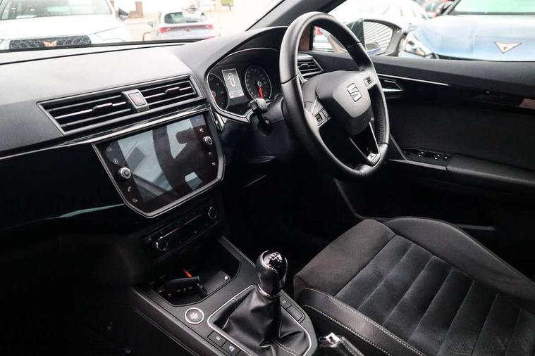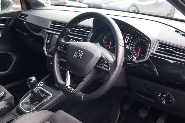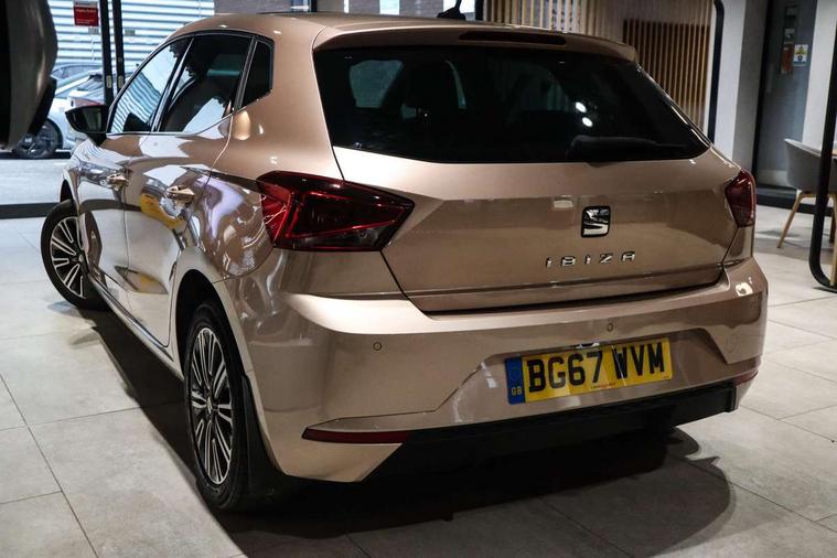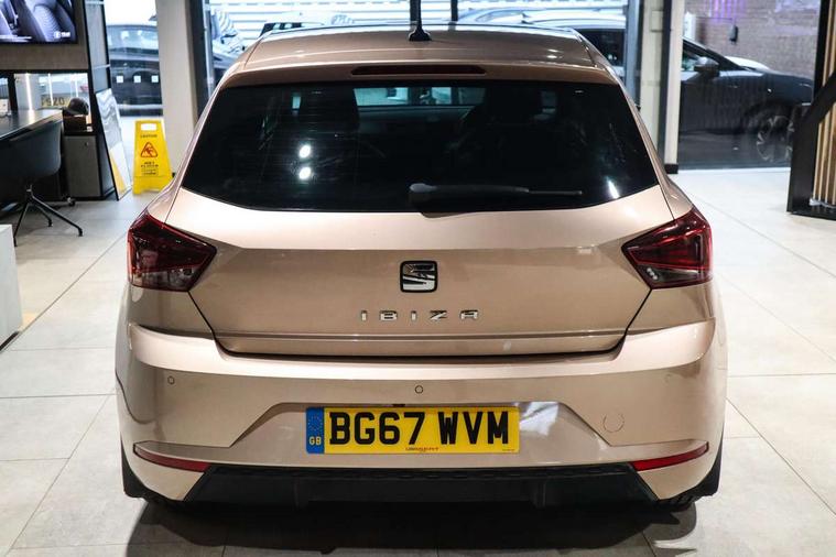 'Lights On' Reminder warning buzzer, Bluetooth Handsfree Phone Connection, Digital clock, Front parking sensors, Low fuel warning light, Outside temperature gauge, Rear parking sensor, Rear view camera, Satellite navigation system with 3D mapping, SEAT Drive profile, SEAT logo boot release, Speed sensitive power steering, Trip computer, Comfort suspension, Auxiliary input socket, Digital Audio Broadcast (DAB) Tuner, Radio/MP3 player, SD card slot, Steering wheel mounted controls, USB port, Atom grey door mirrors, Auto dimming rear view mirror, Automatic headlights, Automatic rain sensing wipers, Body colour bumpers, Body colour door handles, Chrome grille, Chrome window surround, Coming home headlight function, Cornering front fog lights, Dark tinted rear windows, Electric folding door mirrors, Electric front/rear windows with one touch/auto up/down, Electric headlight adjustment, Electrically adjustable and heated door mirrors, LED daytime running lights, LED tail lights, 3 rear headrests, 60/40 split folding rear seat, Alcantara/Simil leather upholstery, Climate control, Driver's sunvisor with ticket holder/vanity mirror, Dust/pollen filter, Front centre armrest, Front courtesy lights, Front cupholders x 2, Front reading lights, Front seat and rear pockets, Glovebox, Height adjustable driver's seat, Height adjustable front/rear head restraints, Height adjustable passenger seat, Height/reach adjust steering wheel, Illuminated boot, Instrument lighting with brightness control, Leather handbrake, Leather steering wheel and gear knob, Passenger sunvisors with vanity mirrors and ticket holder, Rear top tether child seat ISOFIX attachment, Full link media system pack with apple Carplay - Ibiza, Media system plus pack with 8.0" colour touchscreen - Ibiza, 3 point seatbelts on all 3 rear seats, ABS, Active front headrests, Child locks on rear doors, Curtain airbags, Driver/Front Passenger airbags, ESP+EBA, Front passenger airbag deactivation, Front side airbags, Hill hold control, Multi-Collision braking, Seatbelt warning, Tiredness recognition system, Tyre pressure monitoring system, 2 folding remote keys with window open/close function, Electronic engine immobiliser, Keyless entry, Locking wheel bolts, Remote central locking + deadlocks, Volumetric alarm with back up horn,