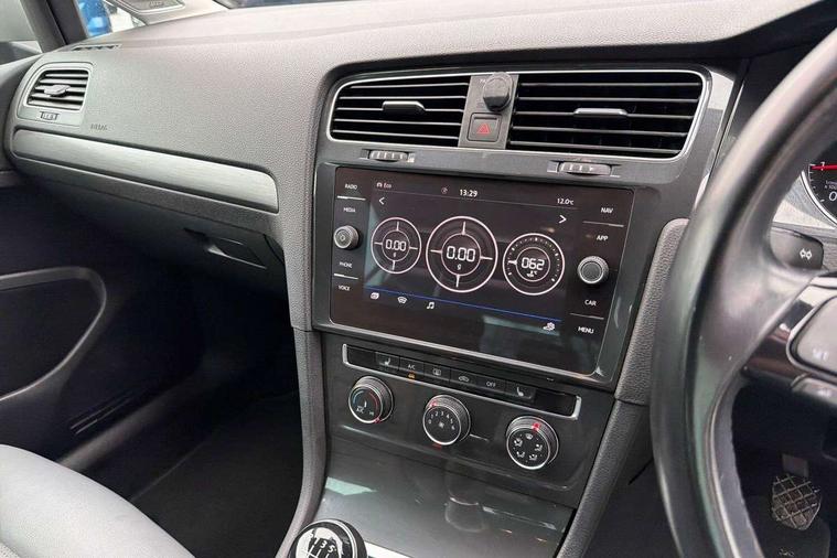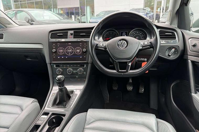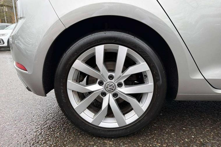 'Lights On' Reminder warning buzzer, ACC - Adaptive cruise control with front assist, forward collision warning, distance monitoring, city emergency brake and speed limiter, Bluetooth telephone and audio connection for compatible devices, Brake pad wear indicator warning light, Driver alert system, Driver profile selection, Driving Mode Selection with four preset modes - Eco, normal, sport or individual modes, Instrument cluster in white, Multifunction computer with visual gear change recommendation for fuel consumption, Power assisted speed sensitive electro-mechanical steering, Push tank flap, Speed limit display, Speedo, rev counter, electronic odometer, trip, service interval display, exterior temperature and fuel gauge, Stop/start system, Warning buzzer and light for front seatbelts unfastened, Battery regeneration during braking, XDS electronic differential lock, Composition media system, DAB Digital radio receiver, Driver Personalisation profile selection, MP3/WMA compatability, Multi device interface (MDI) with USB connection, Personalisation 1.1 profile for media, Premium USB cable in choice of either Apple or Android smartphone compatibility, SD card slot, SMS Functionality, USB and SD card connectivity, Black front air intake and radiator grille with chrome insert, Black rear diffuser, Body colour bumpers, Body colour door handles, Body colour door mirrors with integrated indicators, Dusk sensor + automatic driving lights, Electric front windows, Electric rear windows, Electrically adjustable and heated door mirrors, Fully galvanised body, Heated rear windscreen, Hidden exhaust pipe, High level 3rd brake light incorporating LED Technology, LED daytime running lights, LED front fog lights with static cornering light function, Rear fog lamp, Rear tinted glass 65% light absorbing from B pillar backwards, Rear window aerial, Rear window wash/wipe with intermittent wipe, Reflectors in all doors, Tailgate with integrated rear roof spoiler, Windscreen wipers/ intermittent wipe + 4 position delay, 12V socket in luggage compartment, 3 rear headrests, 4 load lashing points in luggage compartment, 60/40 split folding rear seat backrest, Auto fold down lever in rear seat backrest, Bag hook in luggage compartment x 2, Cooled glovebox, Cupholder cover, Dust/pollen filter, Front and rear reading lights incorporating LED technology, Front centre armrest with storage compartment and two rear air vents, Front seat back storage pockets, Grab handles front x 2, rear x 2 with integrated coat hooks, Height and reach adjustable steering wheel, Illuminated vanity mirrors, Instrument lighting white adjustable panel illumination, Interior light delay, Isofix preparation for 2 rear child seats, Load through provision with rear centre armrest and cupholders x2, Luggage compartment lighting, Overhead storage box, Passenger underseat drawer, Pearl grey headlining, Storage box in luggage compartment, Storage compartment in roof console with cover, Storage compartments in centre console, Storage compartments in front doors, Storage compartments in rear doors, Stowable luggage compartment cover, Sun visors, Variable boot floor, height adjustable and removable, Convenience Pack - Golf, Light and Sight pack - Golf, Mirror pack - Golf, 3 rear three point seatbelts, Airbags - Driver's and front passenger's, curtain airbag, Driver's knee, front side impact and passenger's airbag deactivation switch, Anti-lock Braking System (ABS) with Hydraulic Brake Assist (HBA), Automatic post collision braking system, Child locks on rear doors, Driver/Passenger optimised head restraints, Electronic parking brake with auto hold, Electronic stability control (ESC) including Electronic differential lock (EDL) and ASR (Traction control) with deactivation via infotainment system, Front ventilated disc brakes and rear disc brakes, Pre crash preventive occupant protection, Three point height adjustable front seatbelts with tensioners, Tyre pressure loss indicator, Alarm with interior protection and deactivation via infotainment system, Electronic engine immobiliser, Remote central locking with 2 remote folding keys, Brushed dark silver decorative inserts in dash and door panels, Chrome plated air vent surround, Chrome plated electric mirror adjustment light switch surround, Polar night black centre console, Steel space saver spare wheel,