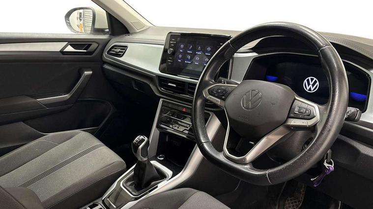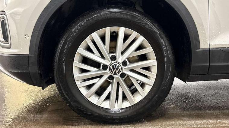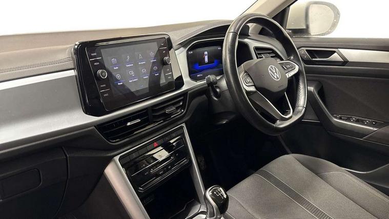 Bluetooth mobile phone interface, Driver alert system with fatigue detection, Driver tips and journey analysis, Emergency call service, Lane keeping system Lane Assist, Modified key software - reduce switch off time for key status change to Long no motion, Online services, Park assist including front and rear parking sensors, Power assisted speed sensitive steering, Service interval indicator, Tailgate/trunk lid release from outside, Think blue trainer driver tips and journey analysis, Warning sound and light for front seatbelts unfastened, Wireless app connect, Battery regeneration during braking, Front shock absorption, Rear shock absorption chassis with increased ride height, Start/stop function with battery regeneration, DAB Digital radio, Diversity antenna for FM reception, Front and rear 6 speakers, Music playback - MP3, WMA and AAC files, Premium USB cable in choice of either Apple or Android smartphone compatibility, SD card slot, Simultaneous pairing of 2 compatible mobile devices, Title and cover art display, We Connect and We Connect Plus functionality, 3rd brake light, Auto dimming interior rear view mirror, Automatic hazard lights activation under emergency braking, Automatic headlight control with LED separate daytime running lights with coming/leaving home function, Black roof rails, Body coloured bumpers and radiator grille with chrome trim and front fog lamps with chrome bezel, Body coloured exterior mirror housings and door handles, Extended roof spoiler, Exterior mirrors aspherical on driver side, convex on front passenger side, External USB type C socket and charging sockets, Front windscreen wiper with intermittent wipe and 4 position delay, Heated rear window, LED Headlights, LED rear combination lamps, LED rear number plate lights, LED tail lamp rear comination lamps, Power windows with comfort operation and circuit breaker, Rain sensor, Rear exhaust tailpipe, Rear fog light on one side and reversing lights on both sides, Rear side wing doors, Rear wash/wipe with intermittent wipe setting, Remote electrically foldable door mirrors, puddle lights and reverse activated passenger's door mirror, 12V power socket in centre console, 3 rear head restraints, 3 seat bench in 2nd row, 4 load lashing points in luggage compartment, Air care climatronic air conditoning system with active combination filter and 2-zone temperature control, Ambient lighting with mirror logo projection, Cloth upholstery, Door and side trim panel in cloth, Drawer under drivers seat, Driver/front passenger seat height adjustment, Front centre armrest, Front comfort sports seats, Front cupholders x 2, Front reading light, Instrument lighting, white adjustable panel illumination, Interior light delay, Isofix child seat preparation, Leather gearshift handle, Load-through provision with cup holder when folded down ('Unsplit rear seat bench, split folding backrest, with centre armrest), Luggage compartment lighting, Lumbar support for driver's and front passengers seat, Non-folding front passenger seat backrest, Single front passenger seat, Storage compartment in left and right luggage area, Storage compartment in rear doors, Storage compartments in driver and front passenger doors, Sunvisors with illuminated vanity mirrors, Variable boot floor, height adjustable and removable, Driver assistance pack without proactive passenger protection - T-Roc, 3 point height adj front seatbelts + pretensioners, 3 point seatbelts in outer rear with ECE label, ABS, Child locks on rear doors, Driver and front passenger airbag with front passenger airbag deactivation, Driver and front passenger safety-optimised head restraints, Drivers seatbelt reminder, Electronic parking brake, Electronic Stability Control (ESC) inc EDL (Electronic Differential Lock) and ASR (Traction Control), Front and rear passengers curtain airbag system including front side airbags, Front assist with city emergency braking and pedestrian monitoring, Front disc brakes, Front seat side impact airbags, Hill start assist, Predictive pedestrian protection, Rear disc brakes, Single tone horn, Tyre pressure loss indicator, Volkswagen roadside assistance, Alarm with interior protection, Anti-theft alarm system with interior monitoring, backup horn, and towing protection, Remote central locking with SAFELOCK, radio remote control with 2 remote control folding keys, Pewter matt decorative inserts for intrument panel, centre console and door panels at the front, Trims for alloy wheels,