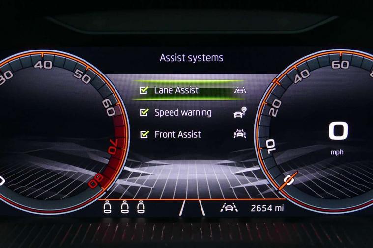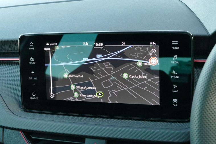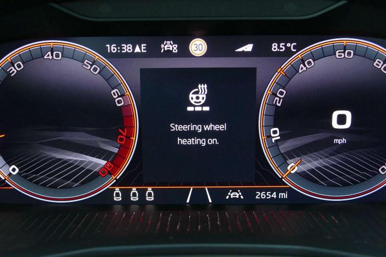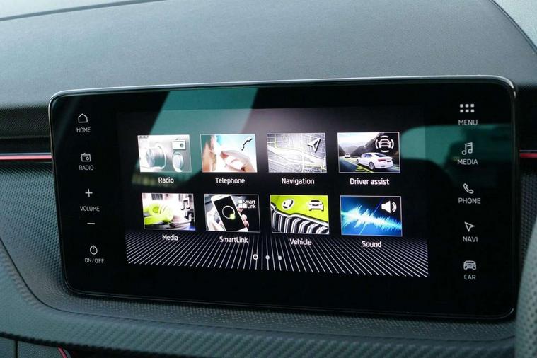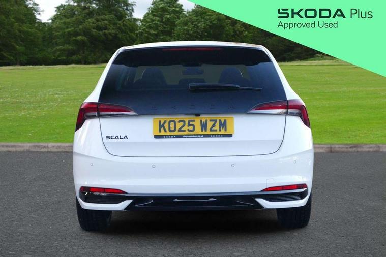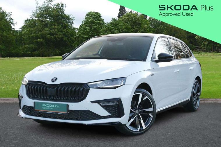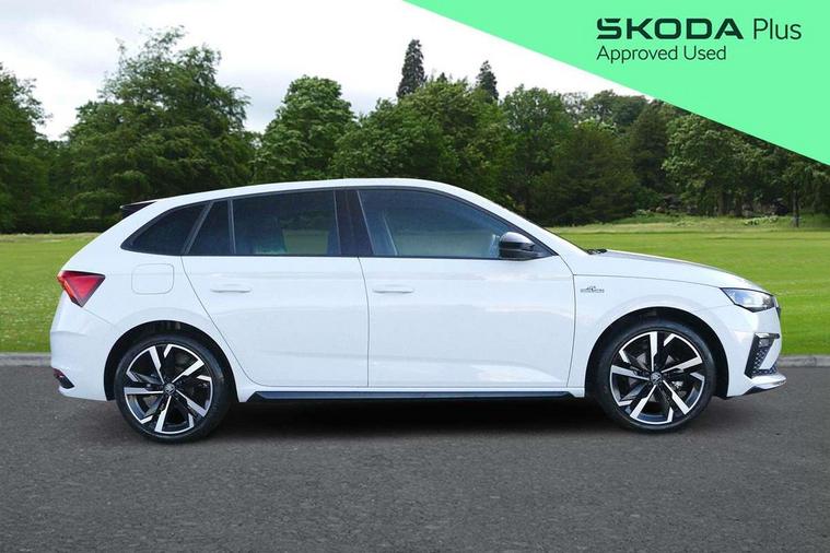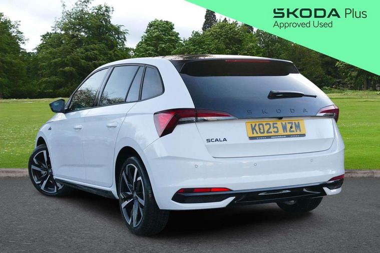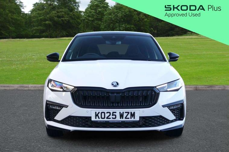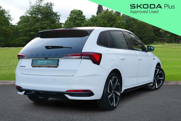 Advanced driver attention and drowsiness monitor, Bluetooth, e-Call (emergency call), Front assist system, PAS, Rear parking sensors, Rear view camera, Speed limiter, Tailgate, Traffic sign recognition, Virtual Cockpit - 10.25" digital display, Voice control system, Wireless smartlink, Drive mode select with Sport Chassis Control and ECO mode, 4 USB C ports, 8 Speakers, 9.2" Skoda navigation display, DAB radio, Auto dimming rear view mirror, Automatic headlight control with manual coming and leaving home feature, Automatic intermittent wipers, Black door mirrors, Black lettering on boot lid, Black radiator grille, Black rear diffuser, Black roof spoiler, Black window frames, Body colour bumpers, Body colour door handles, Extended tailgate glass, Front and rear electric windows, Heated rear window, LED 3rd brake light, LED daytime running lights, LED high beam, LED low beam, Light sensors, Monte carlo plaque, Panoramic glass roof, Privacy glass, Rear LED fog light, Rear side wing doors, Rear wiper, Tinted windows, Unique dark chrome design logo on alloy wheels, 12V socket in luggage compartment, 3 seat bench in 2nd row, Aluminium pedals, Ambient lighting in white/red, Black / White armrest stitching, Black roof headlining, Cargo elements, Chrome inner door handles, Door inserts in art.leather carbon, Driver and passenger sun visors with vanity mirror, Dual zone climate control, Front and rear roof lights, Front centre armrest, Front head restraints, Height adjustable driver seat, Height adjustable passenger seat, Ice scraper, Illuminated glove compartment, Inner circulation control with pollen filter, ISOFIX for front passenger seat, Isofix preparation for back seats, Leather gearknob and handbrake lever, Luggage net under rear parcel shelf, Manual lumbar support for front seats, Monte Carlo cloth upholstery, Net package and top tether hooks in boot space, Pocket on the back of both front seats, incl. mobile phone pockets, Rear centre armrest, Red hotstamping, Single front passenger seat, Skoda lettering on steering wheel, Sport seats, Textile floor mats, Third rear headrest, Ticket holder, Top tether for front passenger seat, Umbrella in driver's door, Light and view plus pack - Scala, 3x3 point rear seatbelts, ABS, Child locks, Curtain airbags and front side airbags, Disc brakes, Driver and front passenger airbags, ESP, Hill hold control, Manual leather parking brake, One tone horn, Passenger airbag switch off function, Seatbelt reminder for driver and front passenger, Tyre pressure monitoring system, Anti theft alarm system with interior monitoring, backup horn and towing protection, Anti-theft wheel bolts, Remote central locking with 2 remote folding keys, SAFE function for remote central locking, Carbon effect decorative inserts, 18" Ursa black diamond cut alloy wheels,